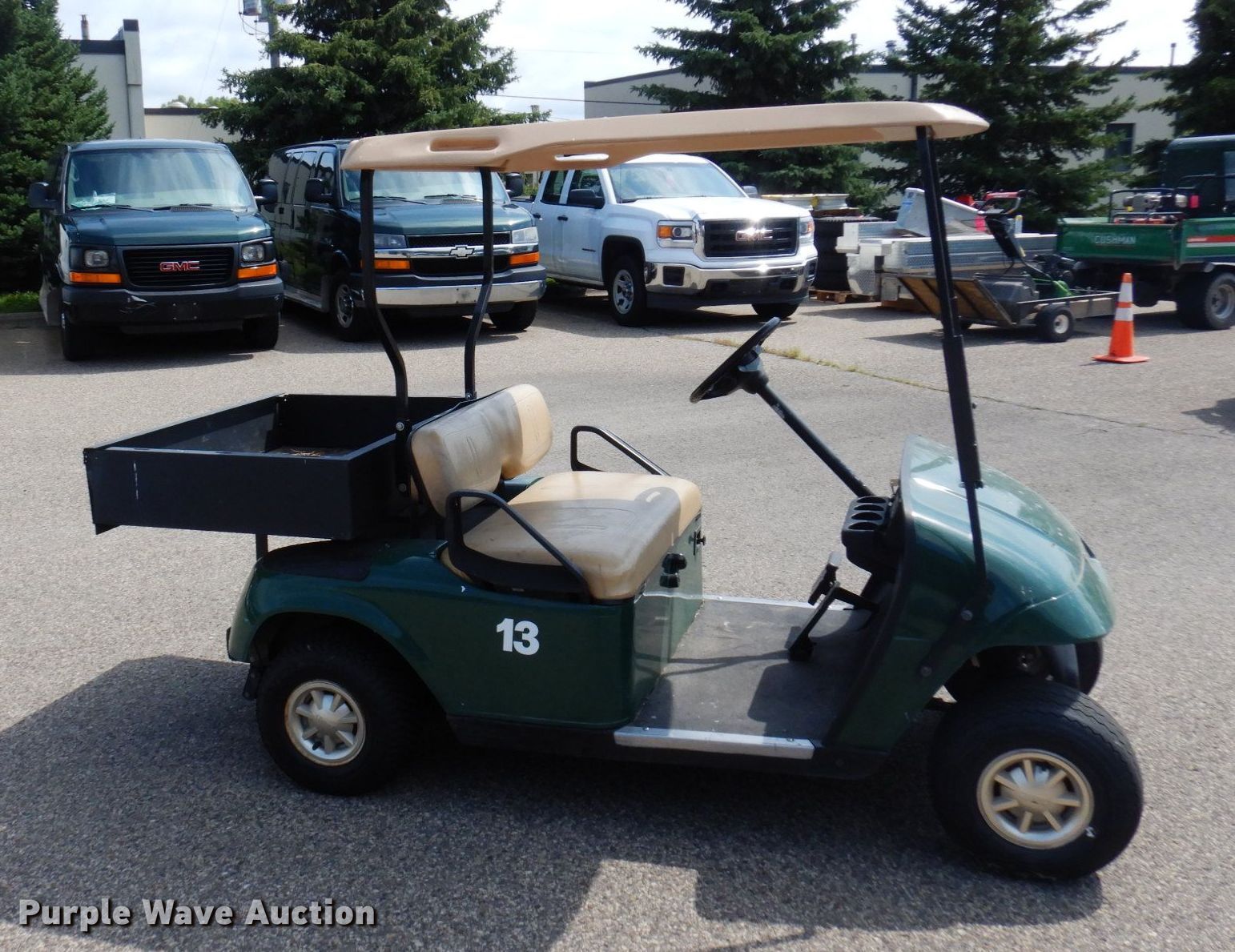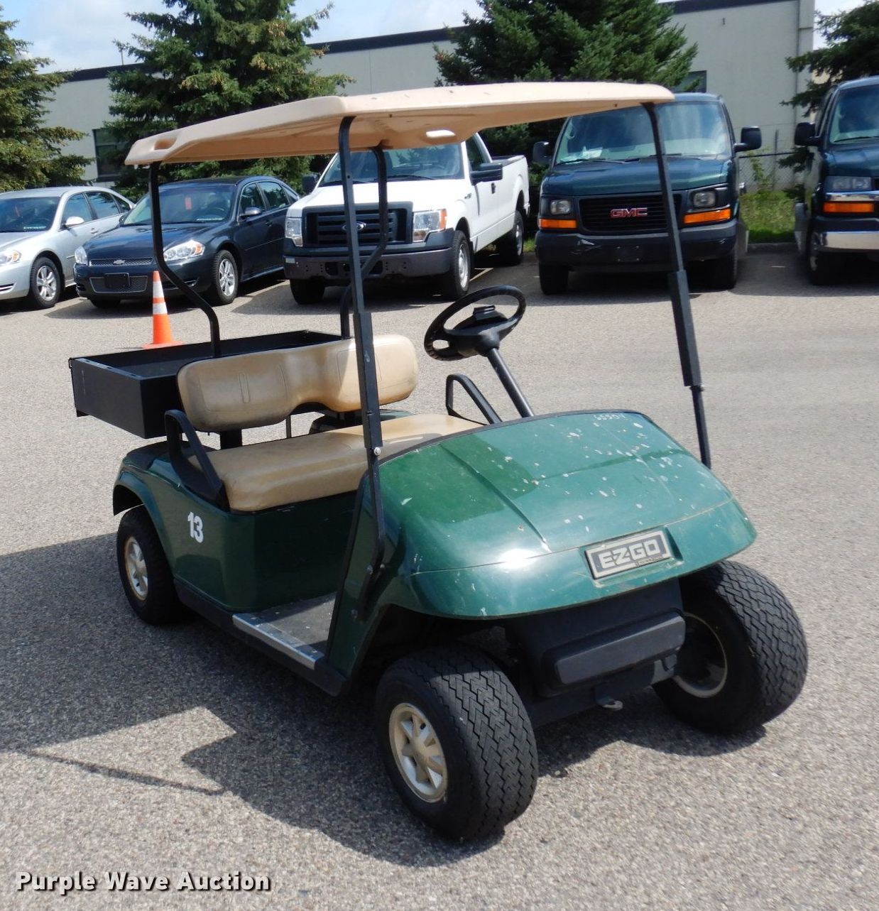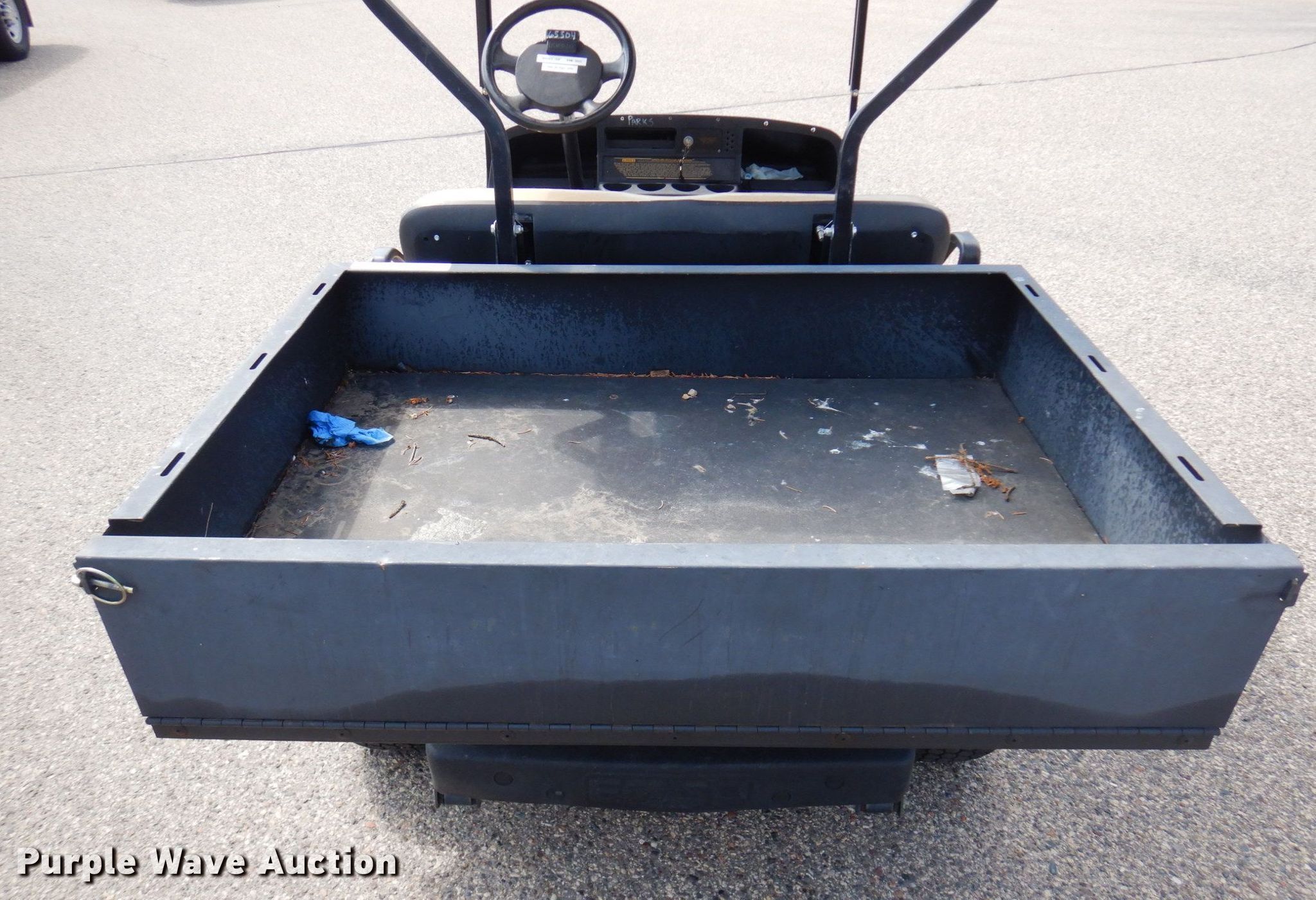 Ez-go L301 golf cart. Serial: 1436373. Engine Cylinders: 2, Fuel type: Gas, Electric start. Transmission CVT. Operators station Canopy, Passengers: 2. Features Box bed 31" L x 42" W. Tires Size: 18x8.5-8. Ramsey County, MN. 1425 Paul Kirkwold Dr. Arden Hills, MN 55112