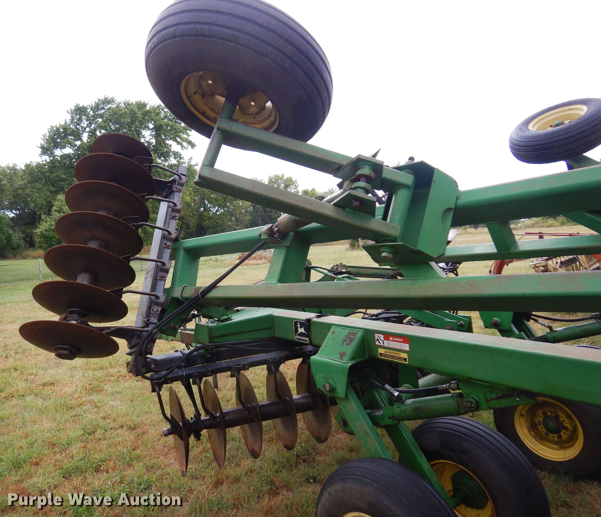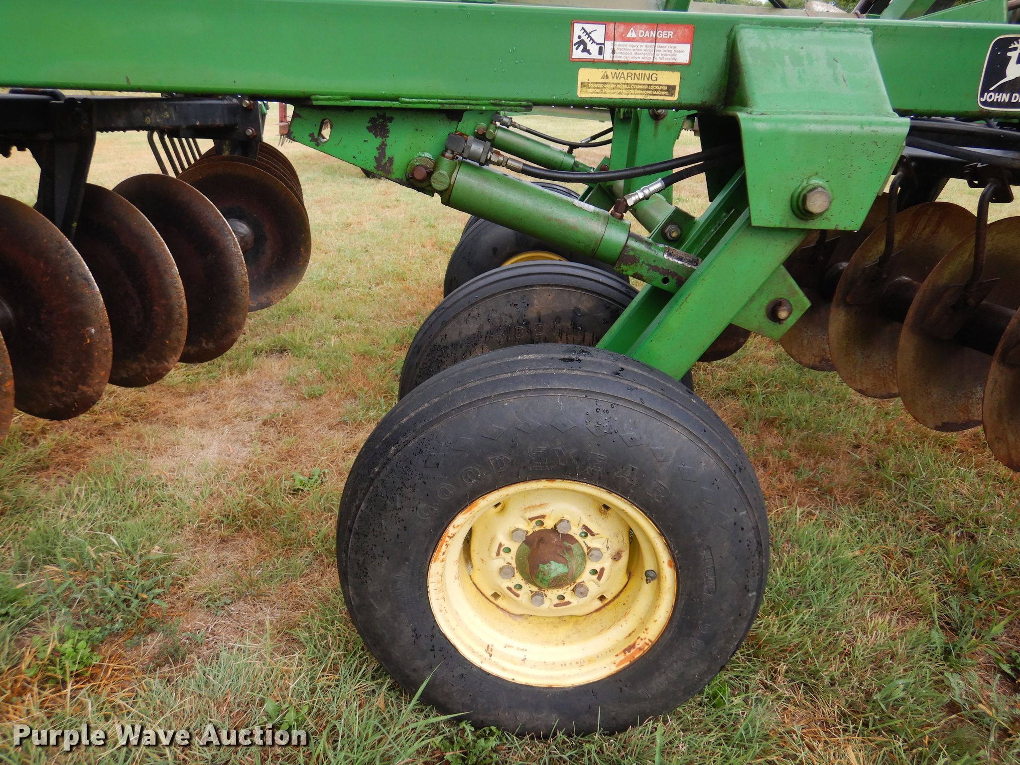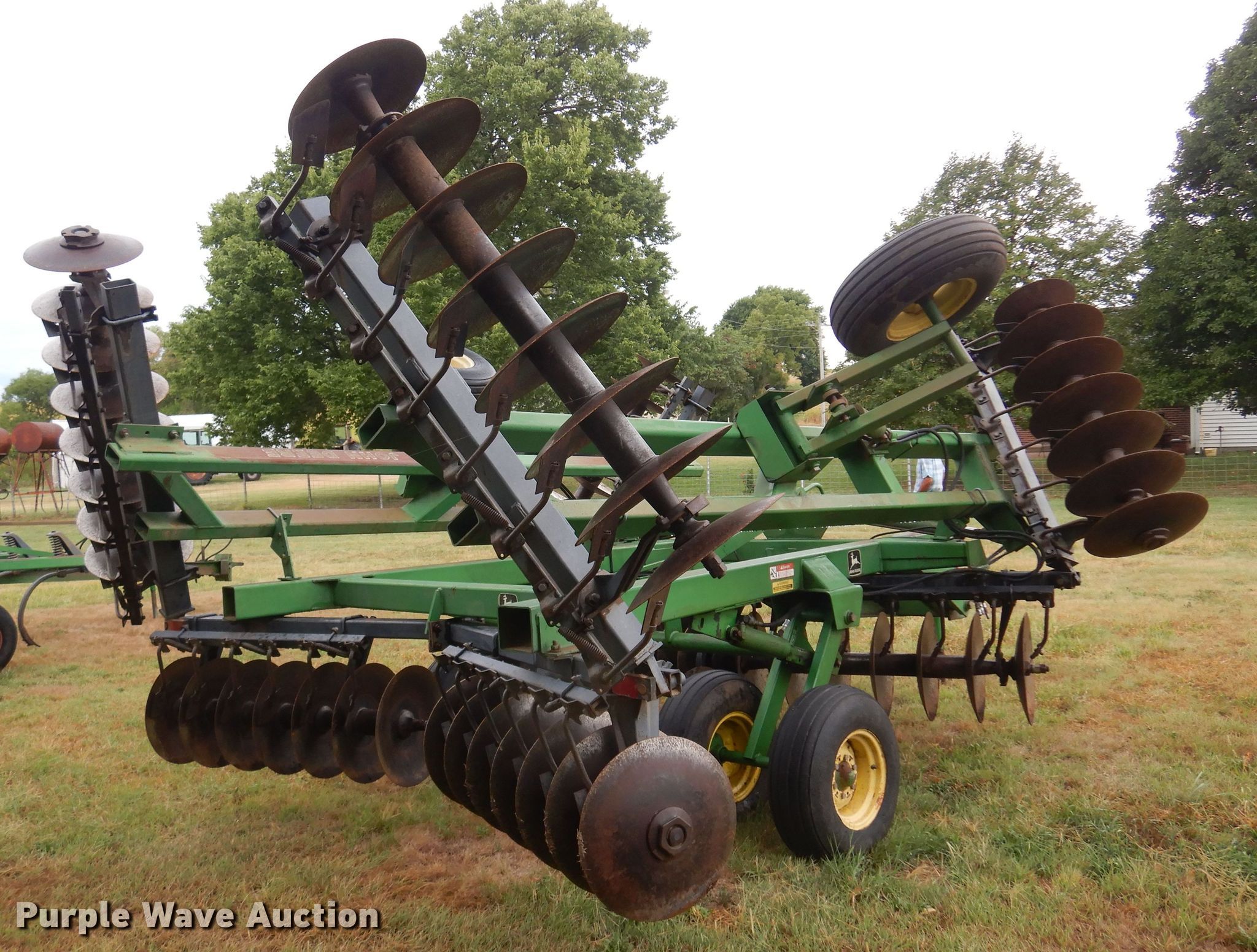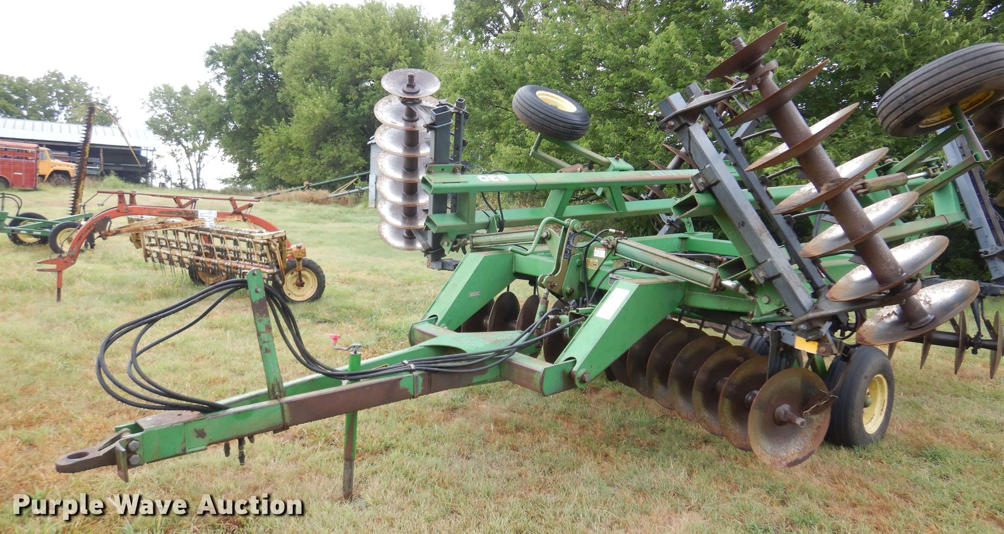 Purple Wave is selling a used Disk in Kansas. This item is a John Deere 630 tandem disk with the following: Overall width: 20', Serial: N00630X009419