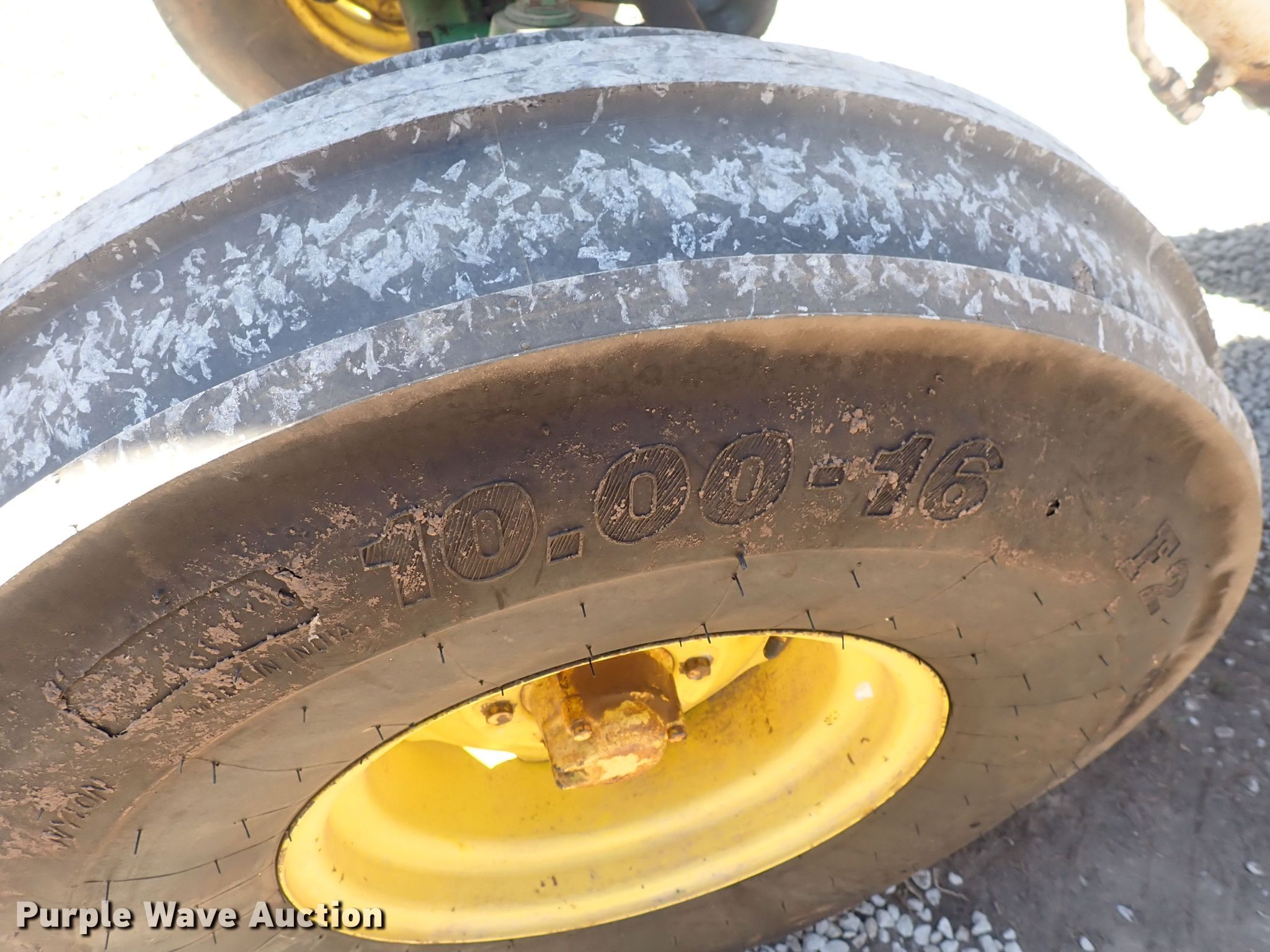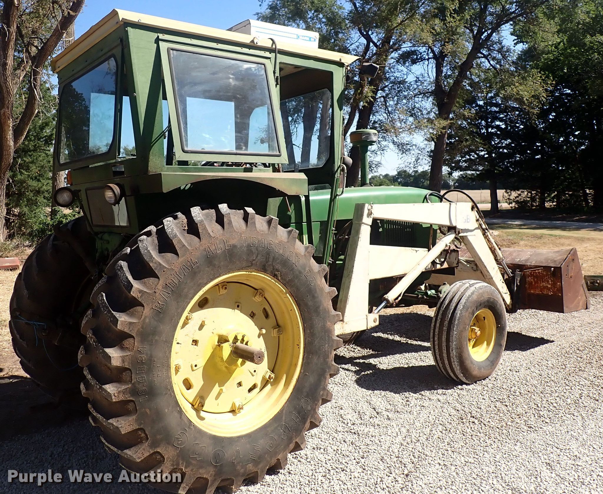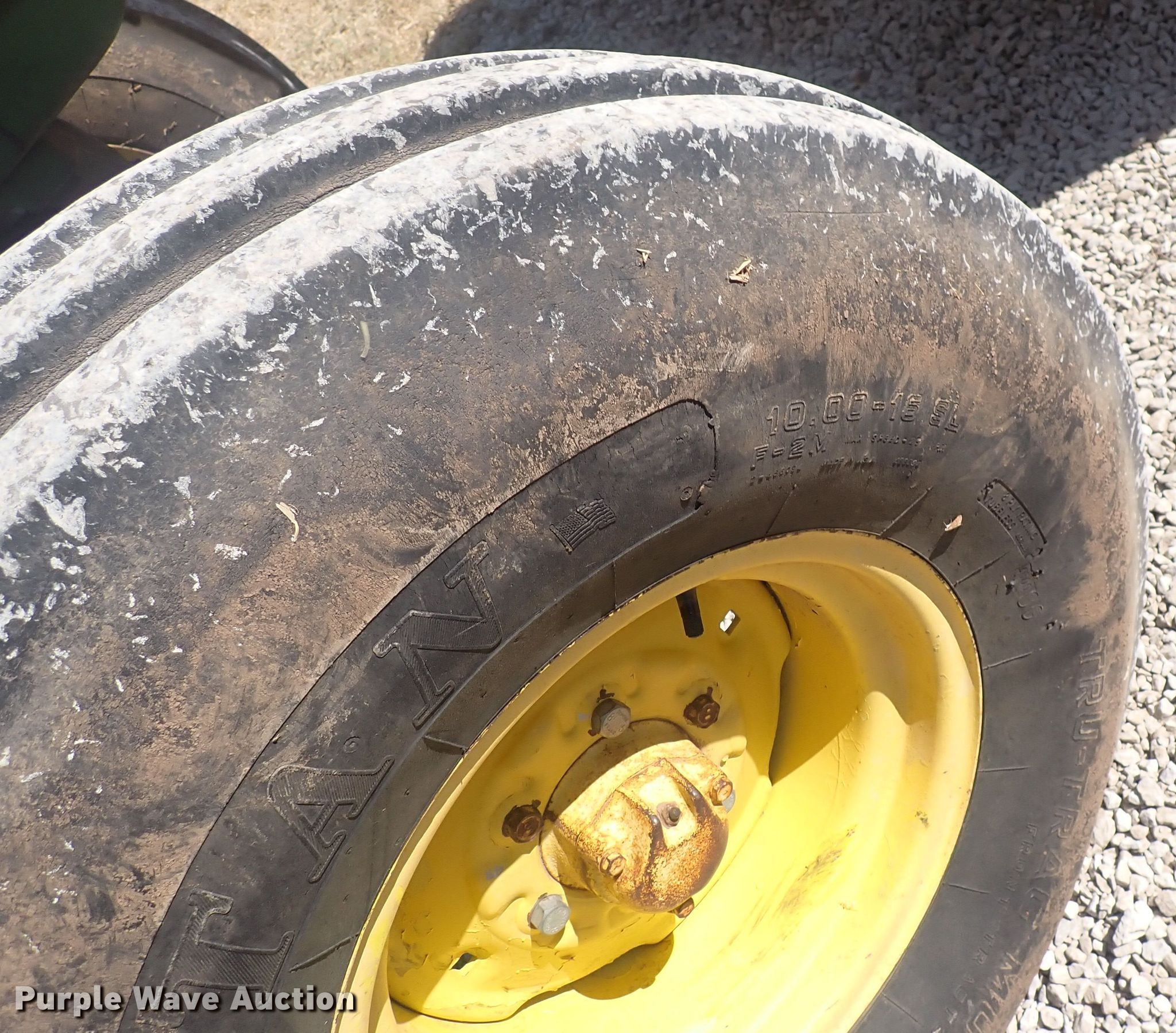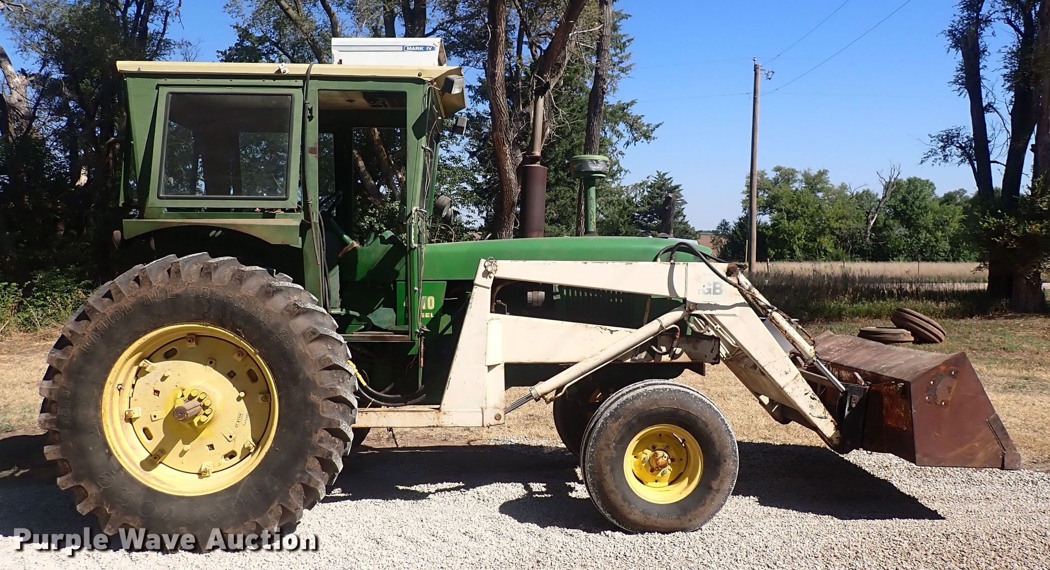 1962 John Deere 4010 tractor. Hours: 43 on meter, Serial: 22T20679. Engine Cylinders: 6, Fuel type: Diesel. Transmission Synchro, 8F - 2R. Operators station AC, Heat. Features PTO: 540, Three point Top link, Hydraulic remote sets Rear: 3, Loader Great Bend, Controls: Two lever, Bucket Width: 72".. Tires Front: 10.00-16, Rear: 18.4R34. Notes Unknown operating condition of AC. Inman, KS 67546