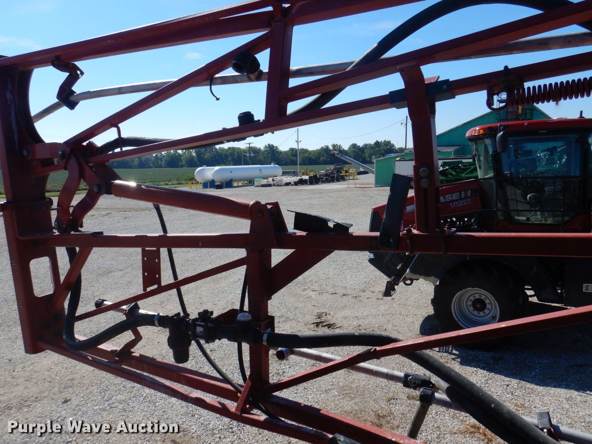2013 Case IH Patriot 3330 sprayer. Engine hours: 4,536 on meter, Serial: YCT033317. Engine Case, Cylinders: 6, Fuel type: Diesel. Transmission Hydrostatic. Chassis Hydraulic axle width adjust. Operators station AC, Heat. Features Hydraulic ladder, Solution tank Capacity: 1,000 gallons, Type: Stainless Steel, Rinse tank Capacity: 55 gallons, Clean water tank, Boom Width: 100', Sections: 6, Boom breakaway, Hydraulic boom fold, Hydraulic height control, Automatic height control, Nozzle Spacing: 20", Electronics Ground radar. Tires Size: 380/90R46, Row crop tires. Notes Windshield chipped or cracked, Wreck damage, Glass missing, No nozzles. MFA Inc... 6040 U.S. 24. Hannibal, MO 63401