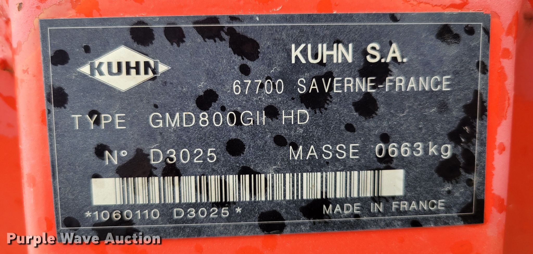 Purple Wave is selling a used Disc or Sickle Mower in Iowa. This item is a Kuhn GMD800-GII HD disc mower with the following: Serial: D3025