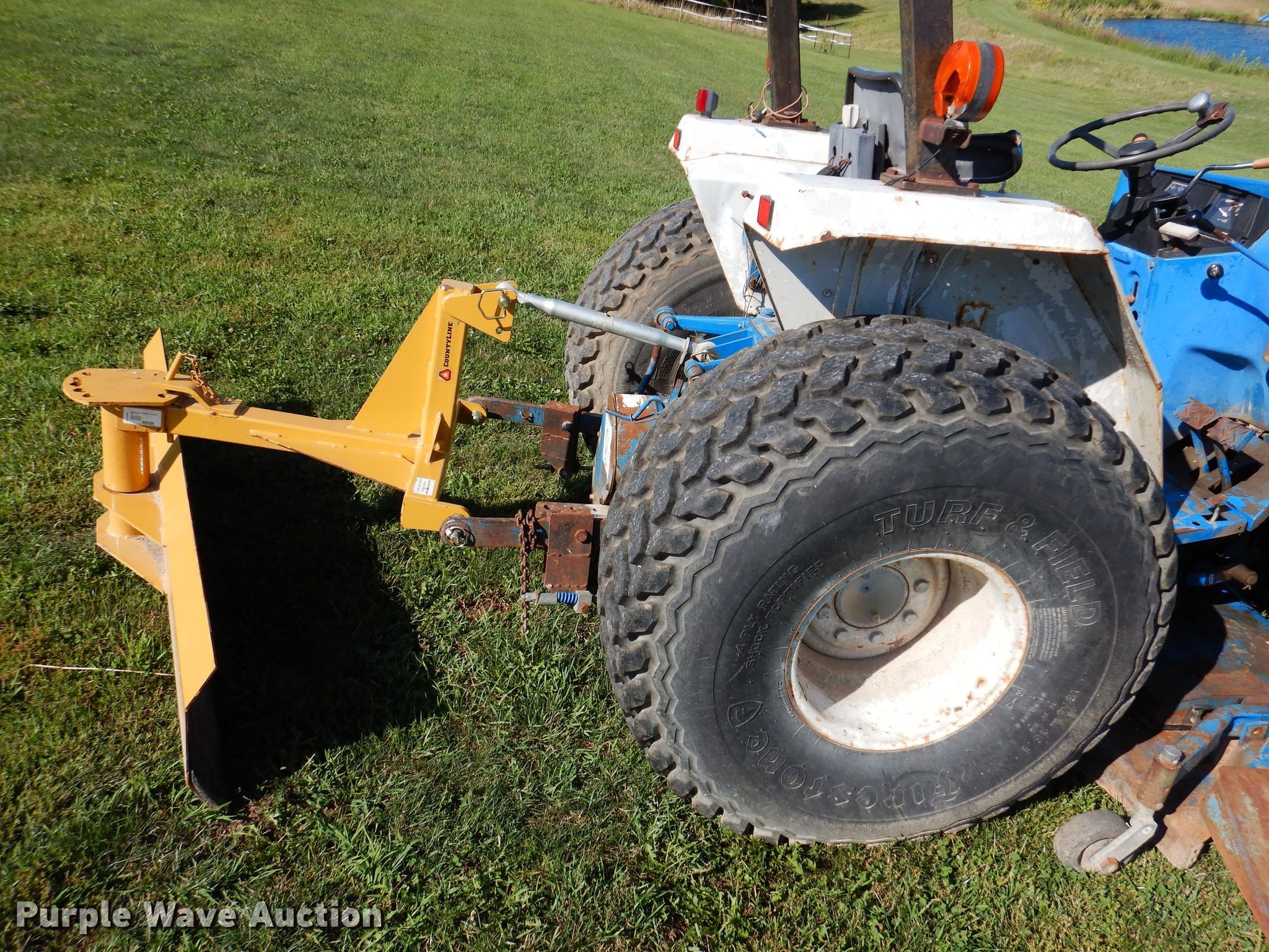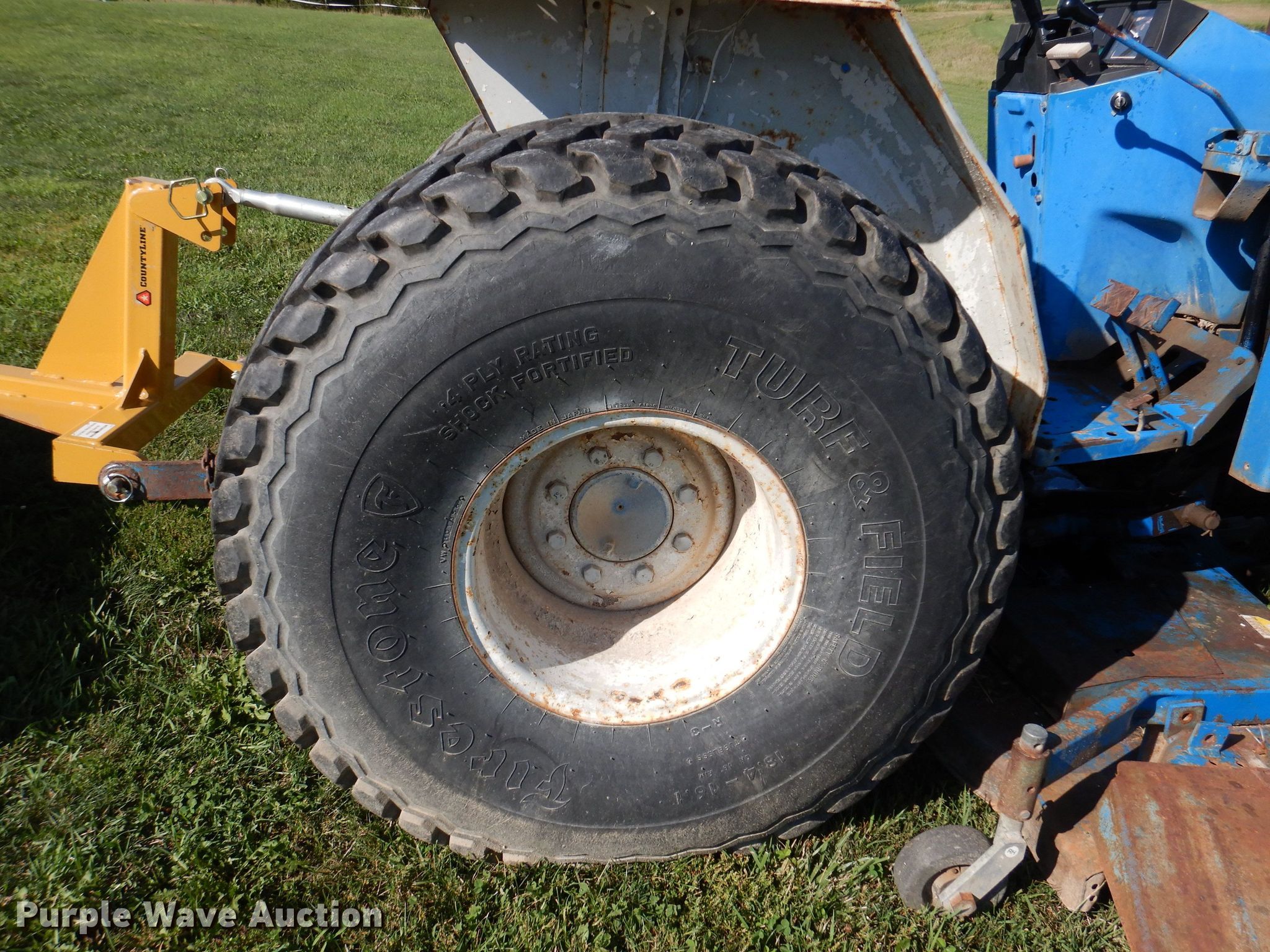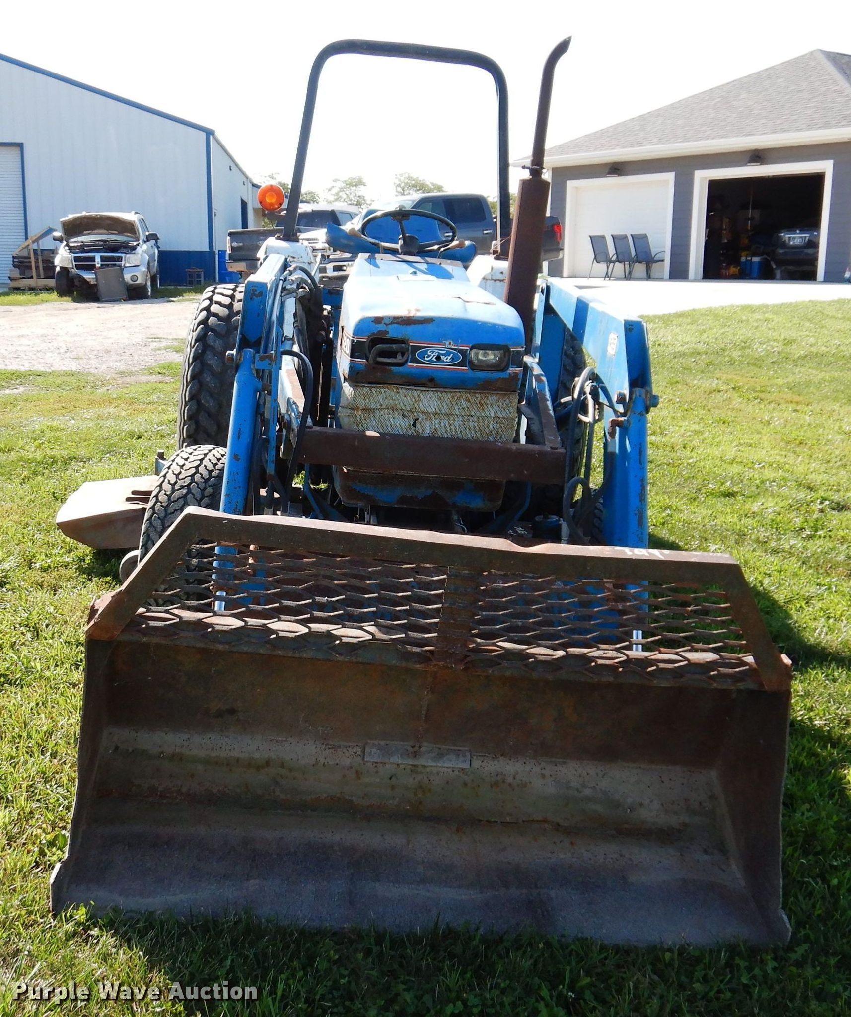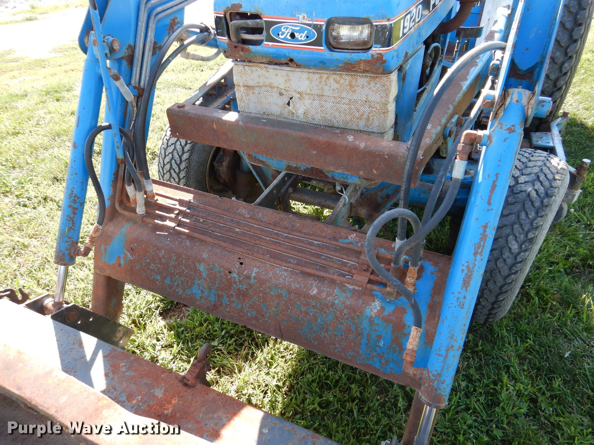 Ford 1920 MFWD tractor. Hours: 3,173 on meter. Engine Cylinders: 4, Fuel type: Diesel. Transmission Manual, 12F - 12R, Left-hand reverser, Differential lock. Features PTO: 540, Three point Top link, Loader Ford 7108, Controls: Joystick, Bucket Width: 61", Blade Country Line , Width: 6', Mower deck Ford 914, Cutting width: 68". Tires Front: 27x8.5-15NHS, Rear: 18.4-16.1. Notes Mower deck belt missing. 7750 155th Avenue. Indianola, IA 50125