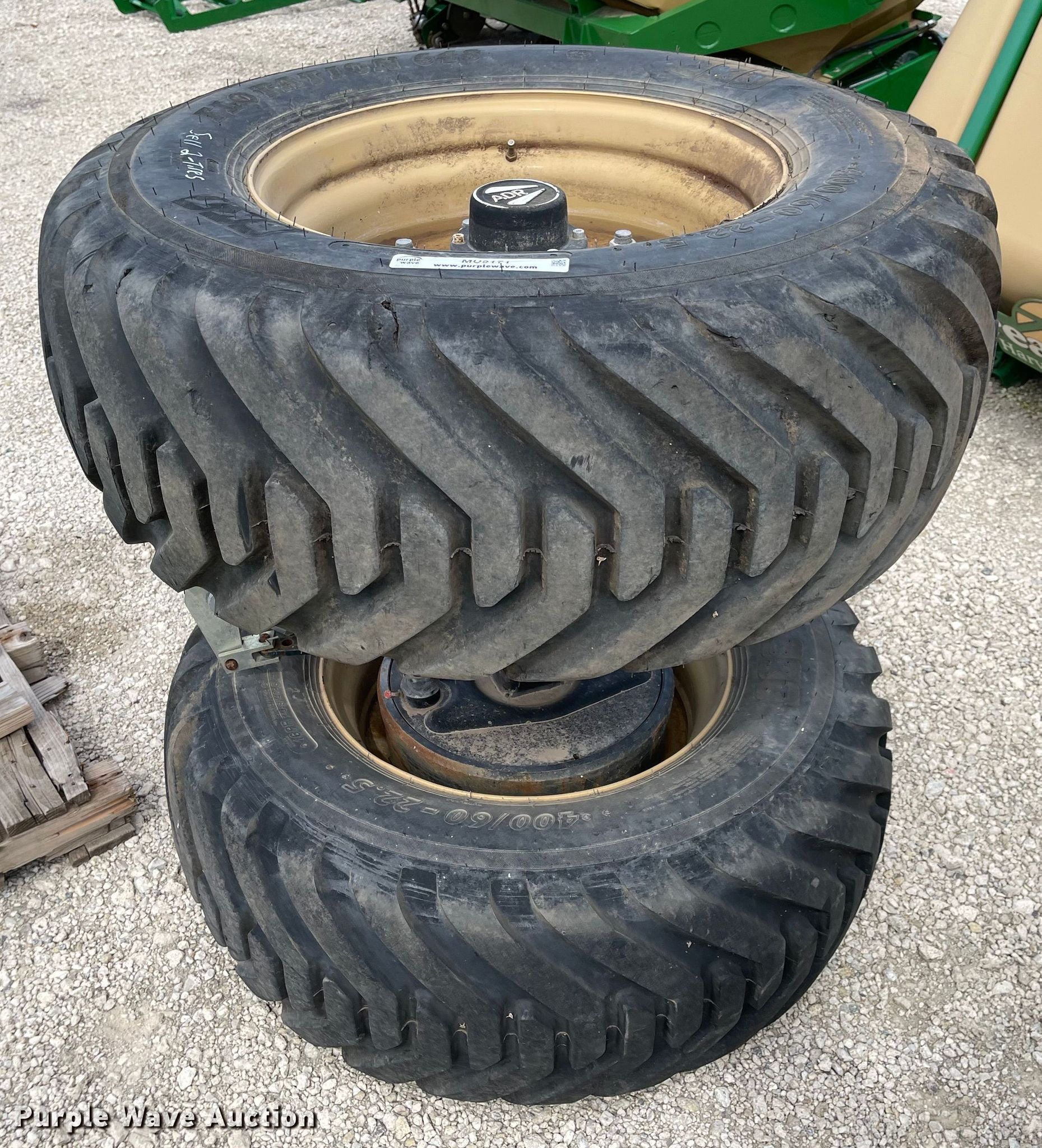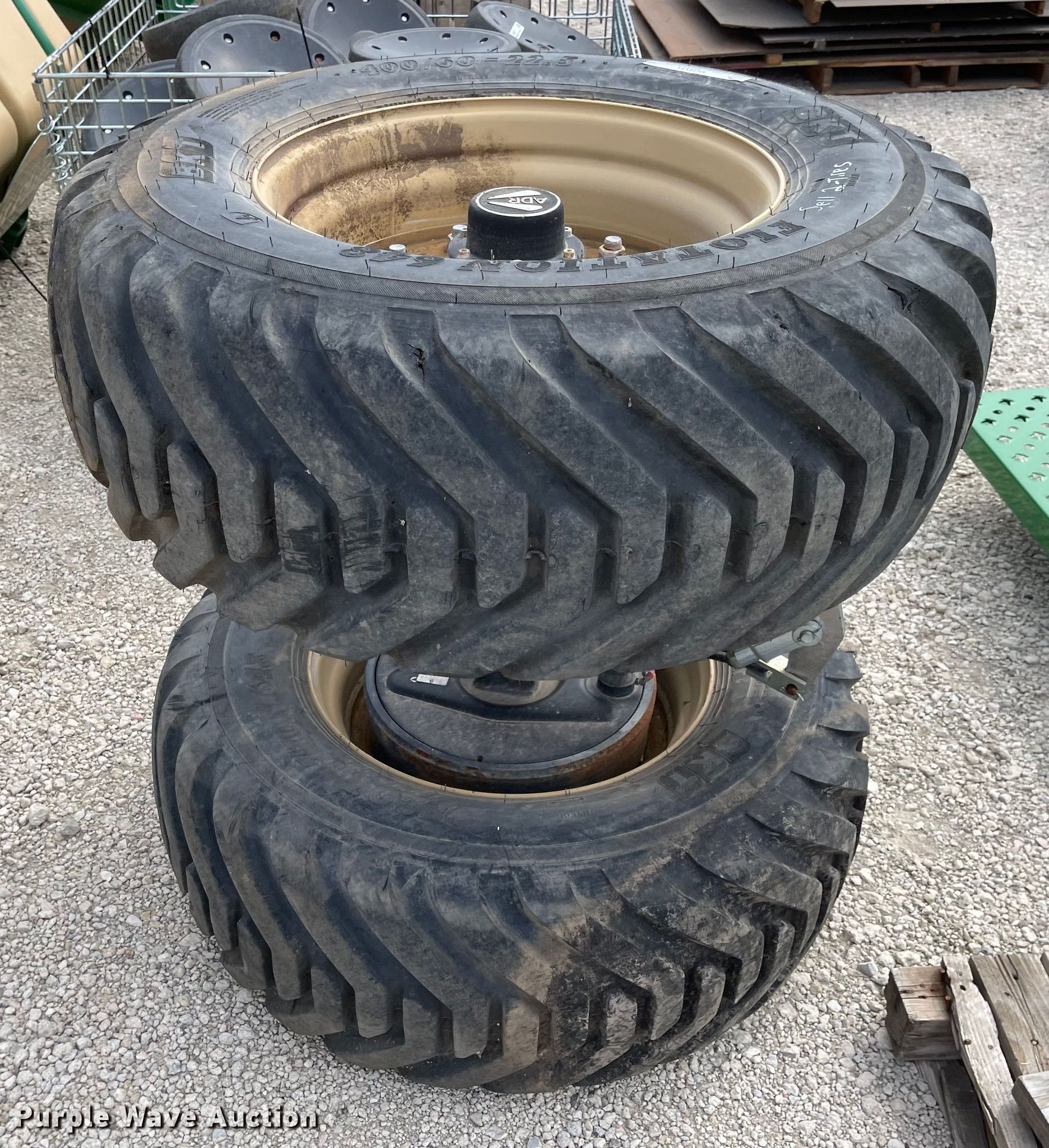 Purple Wave is selling a used Industrial Tires or Tracks in Kansas. This item is a (2) 400/60-22.5 tires and wheels with the following: Axle