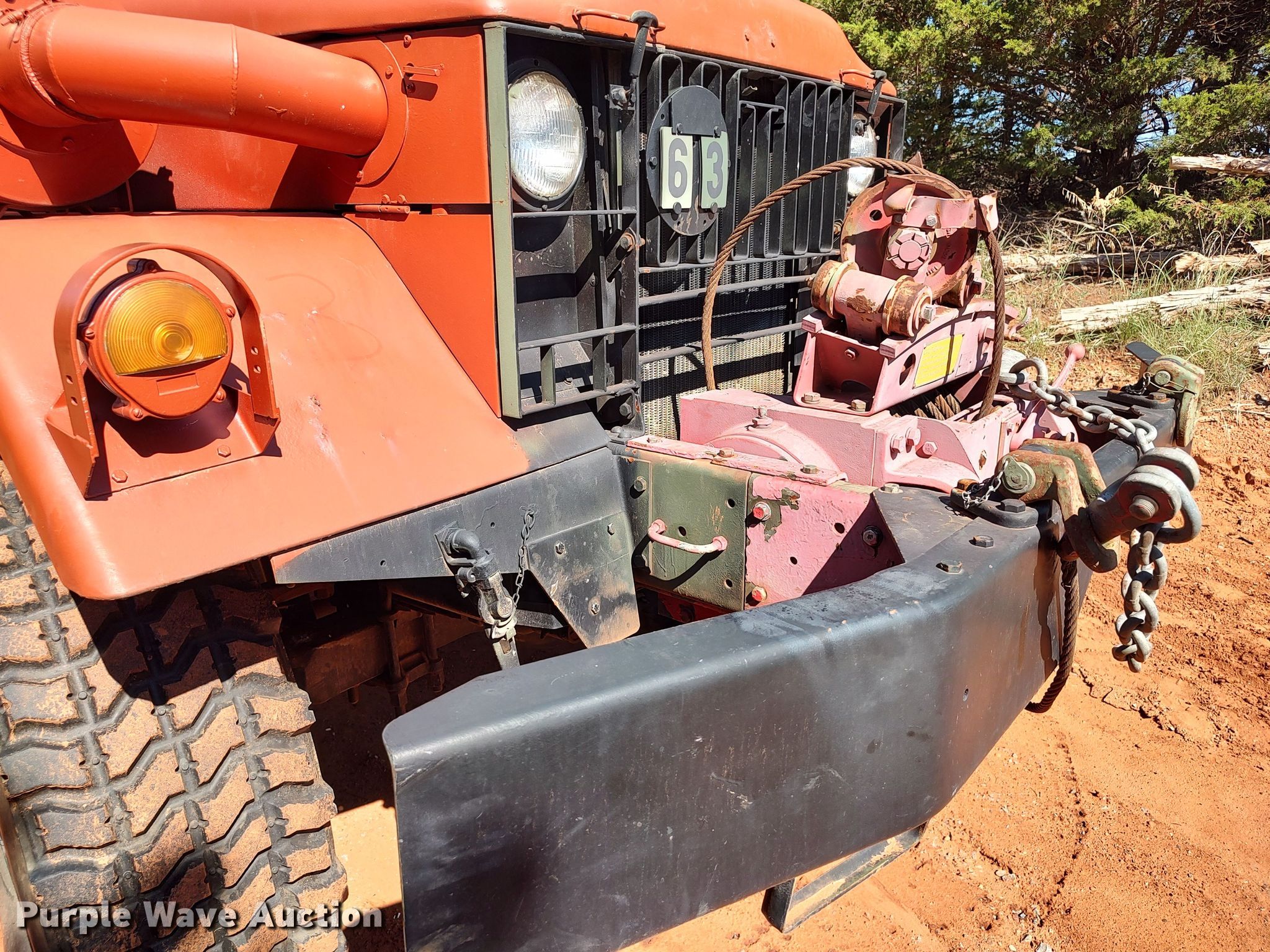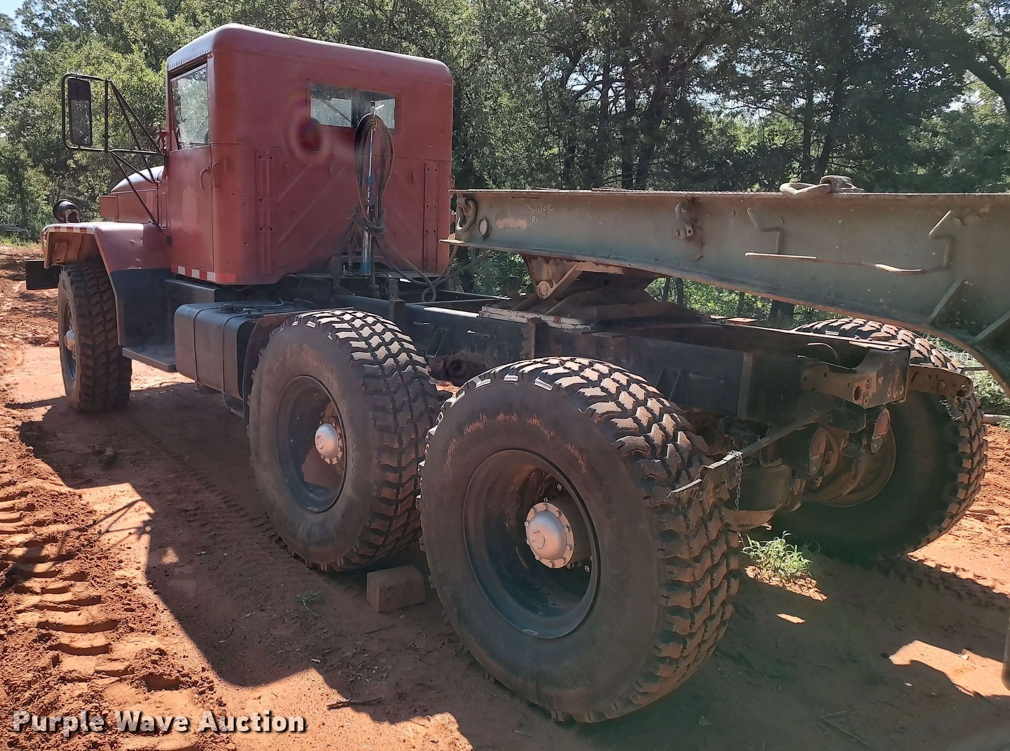 1967 Kaiser M52A2 semi truck. Miles: 24,141 on odometer, Hours: 643 on meter, VIN: 962411494. Engine Cylinders: 6, Fuel type: Diesel. Transmission Manual, Speed: 10. Chassis Axles: Tandem, Suspension: Spring, Brakes: Hydraulic. Features Winch R.M. IND 7411122, Fifth wheel type: Fixed, Fuel tank: Single. Tires Size: 395/85R20. Oklahoma classic title. Title distribution may be delayed up to 30 days from verification of funds. Davis Forestry Services Retirement Auction. Fay, OK 73646