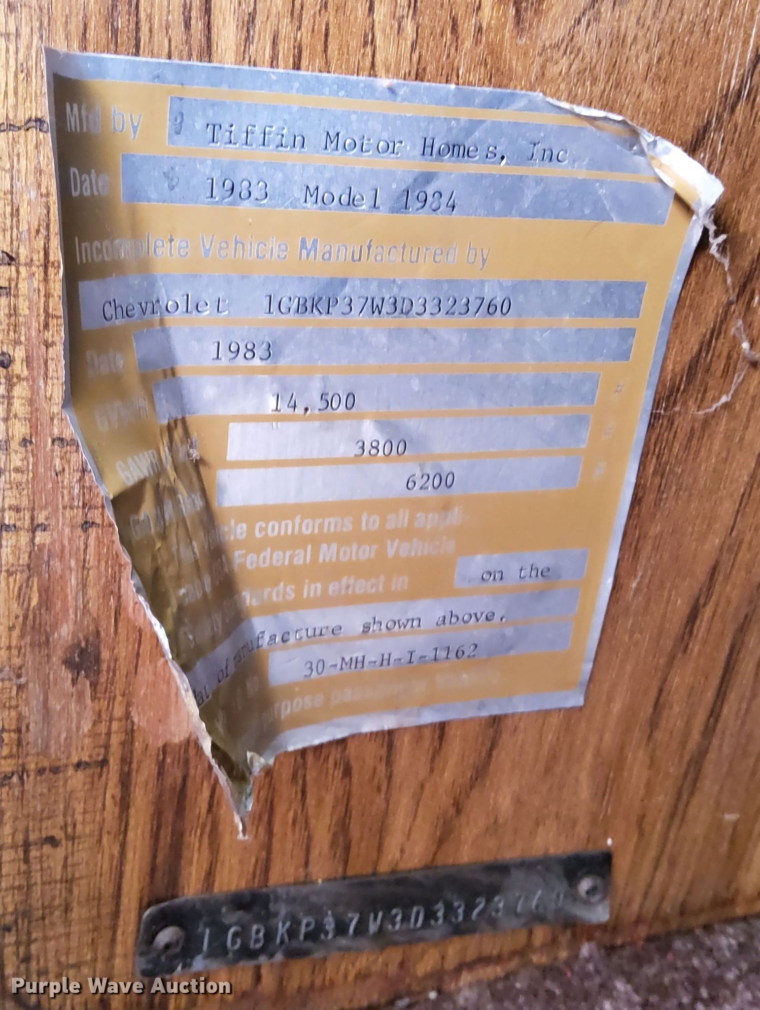Purple Wave is selling a used RV or Camper in Kansas. This item is a 1984 Allegro RV with the following: Miles: 57,849 on odometer, Camper length: 34', VIN: 1GBKP37W3D3323760