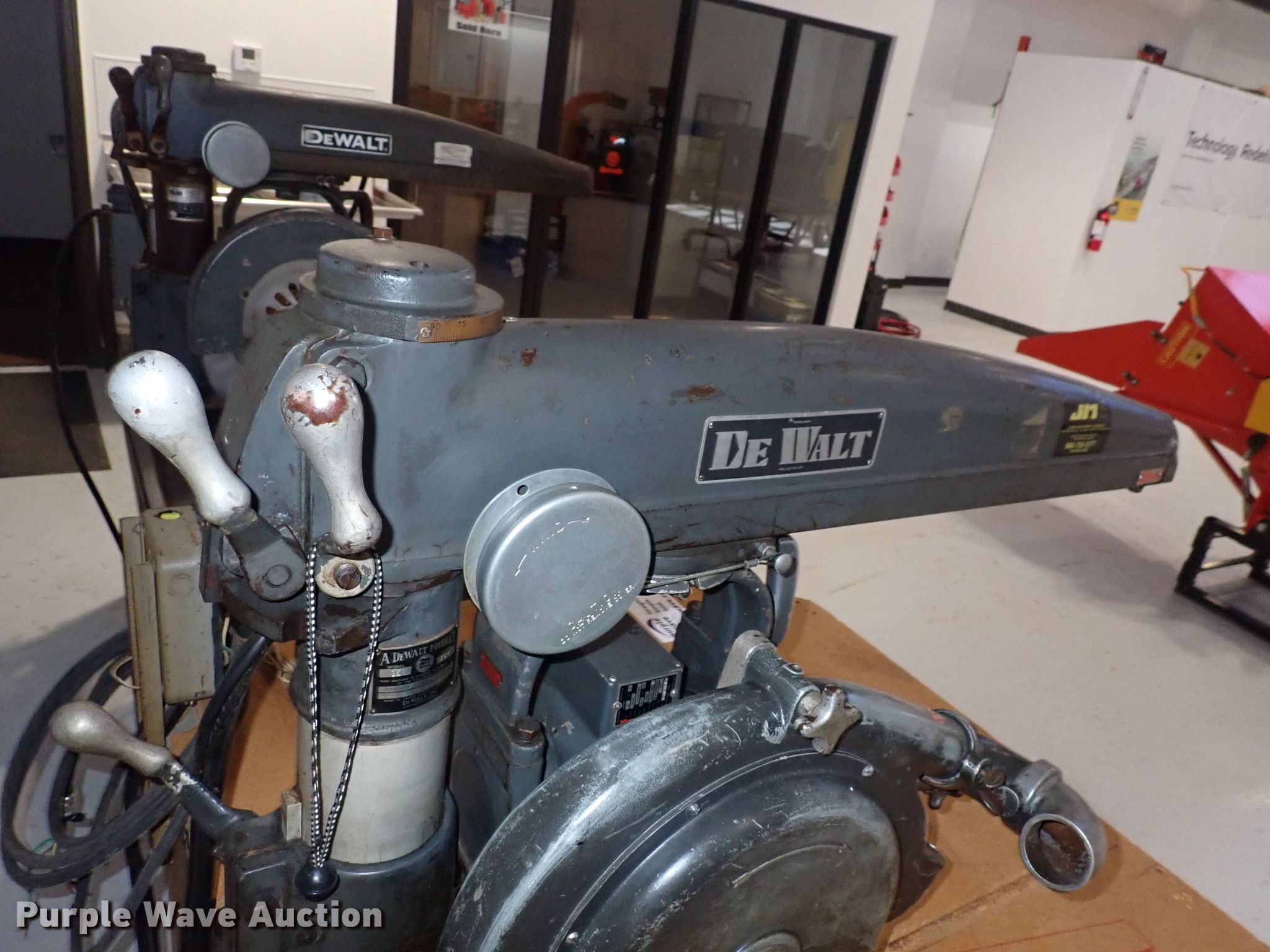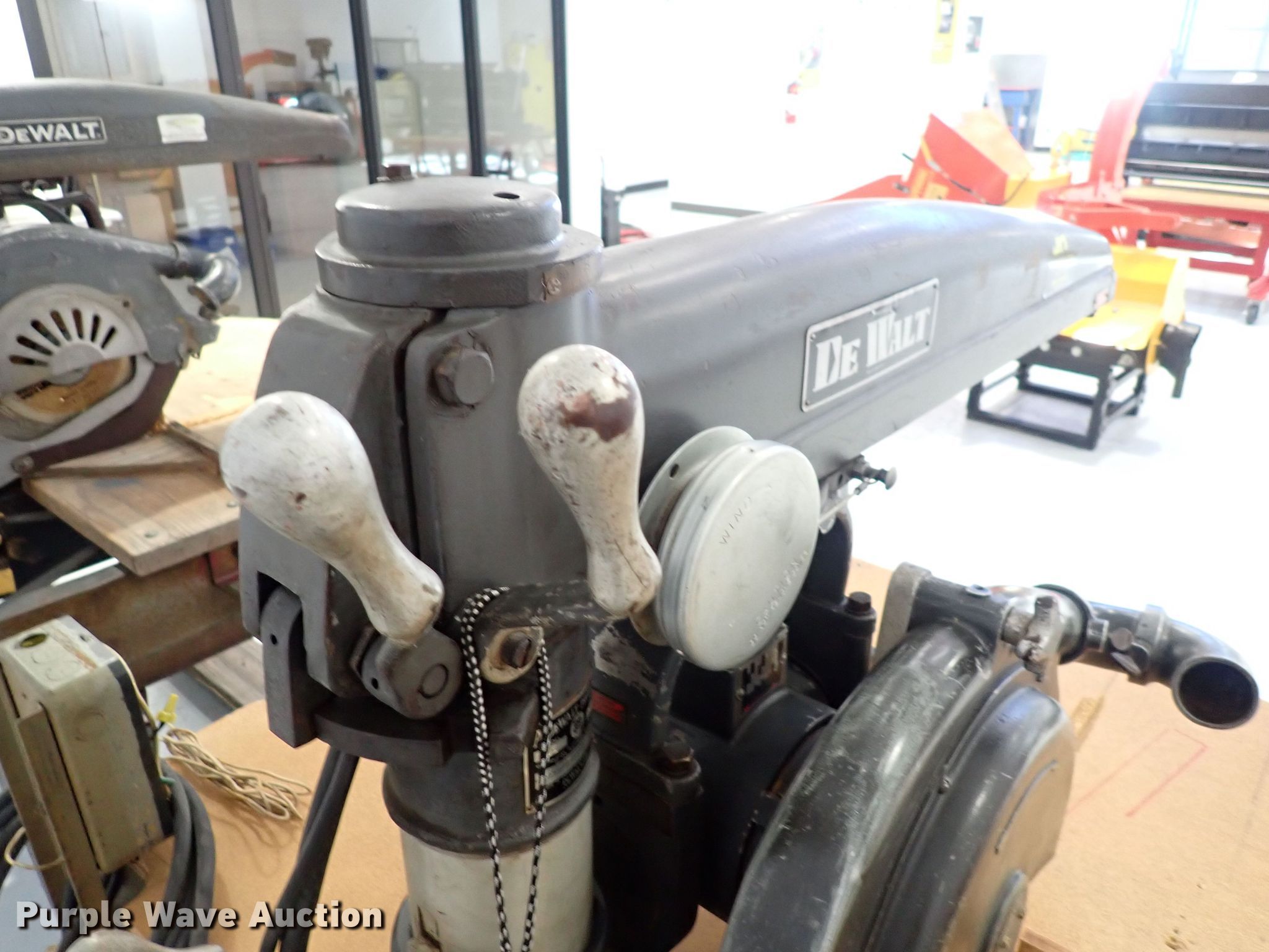 Purple Wave is selling a used Tools in Kansas. This item is a DeWalt GE radial arm saw with the following: Serial: 76413, Electric motor, Volts: 220/440, Phase: Three, 5 HP, Blade width: 16"