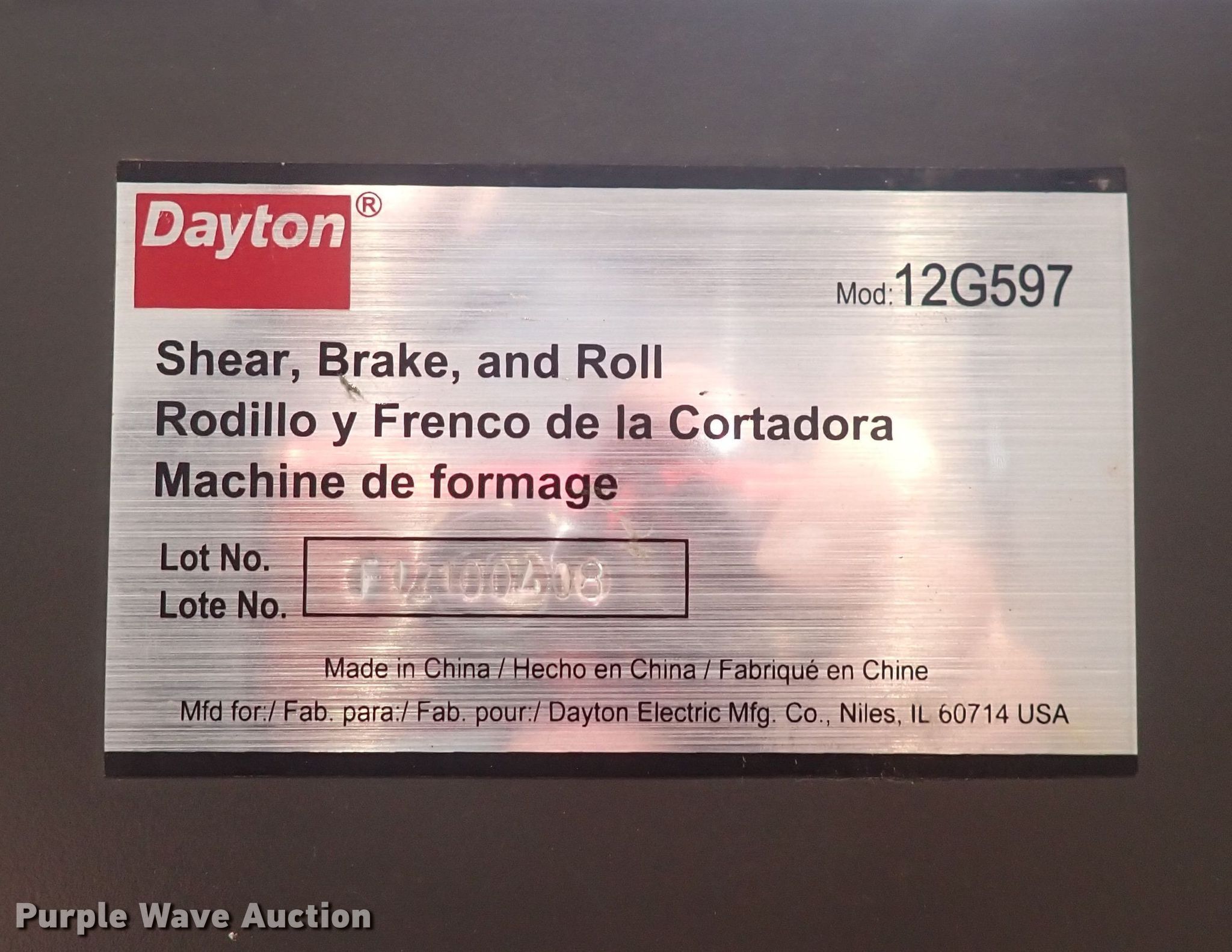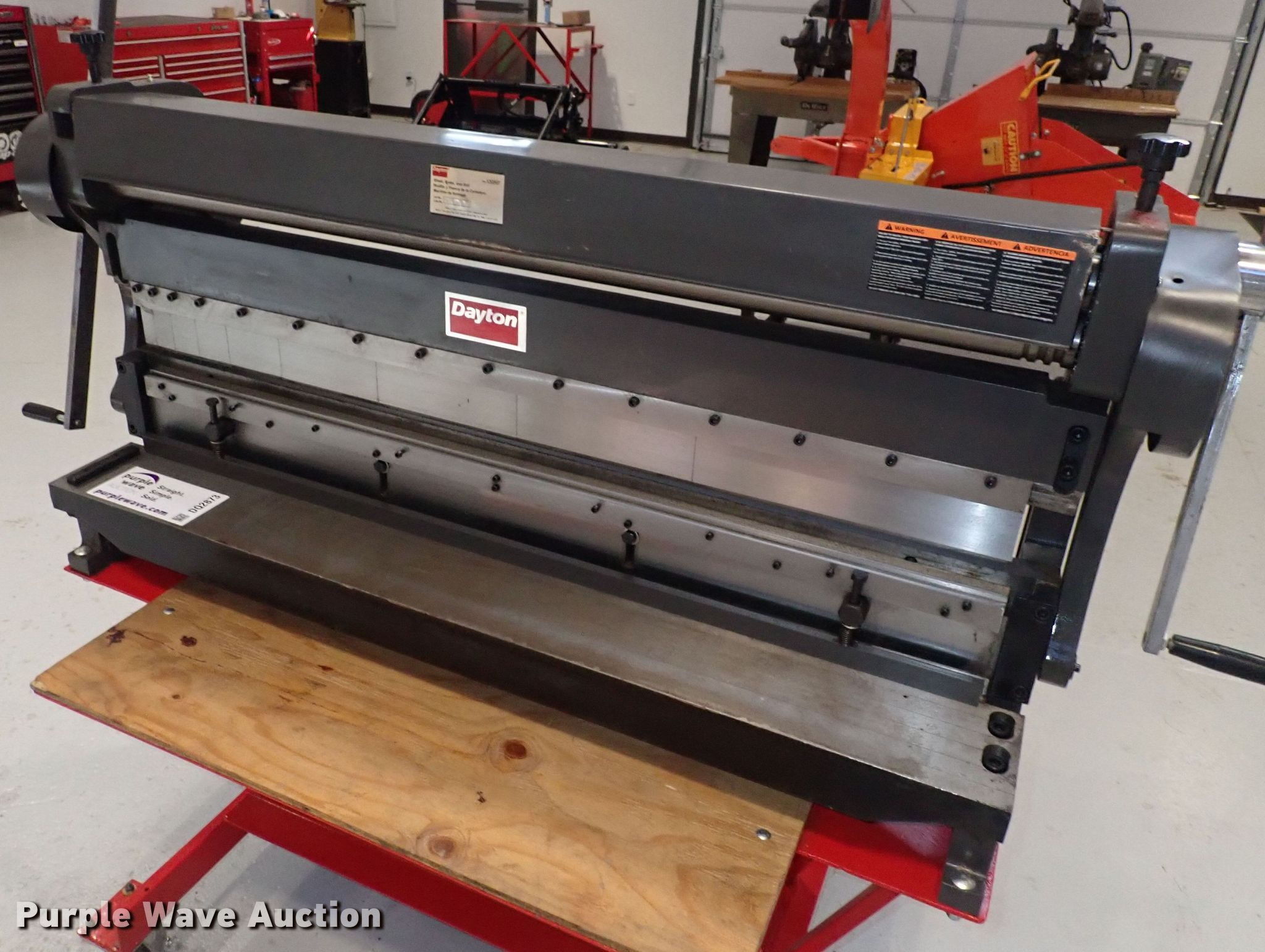 Purple Wave is selling a used Tools in Kansas. This item is a Dayton 12G597 combination machine with the following: Capabilities: Shear, brake, roll, Working width: Approx. 52", Bench