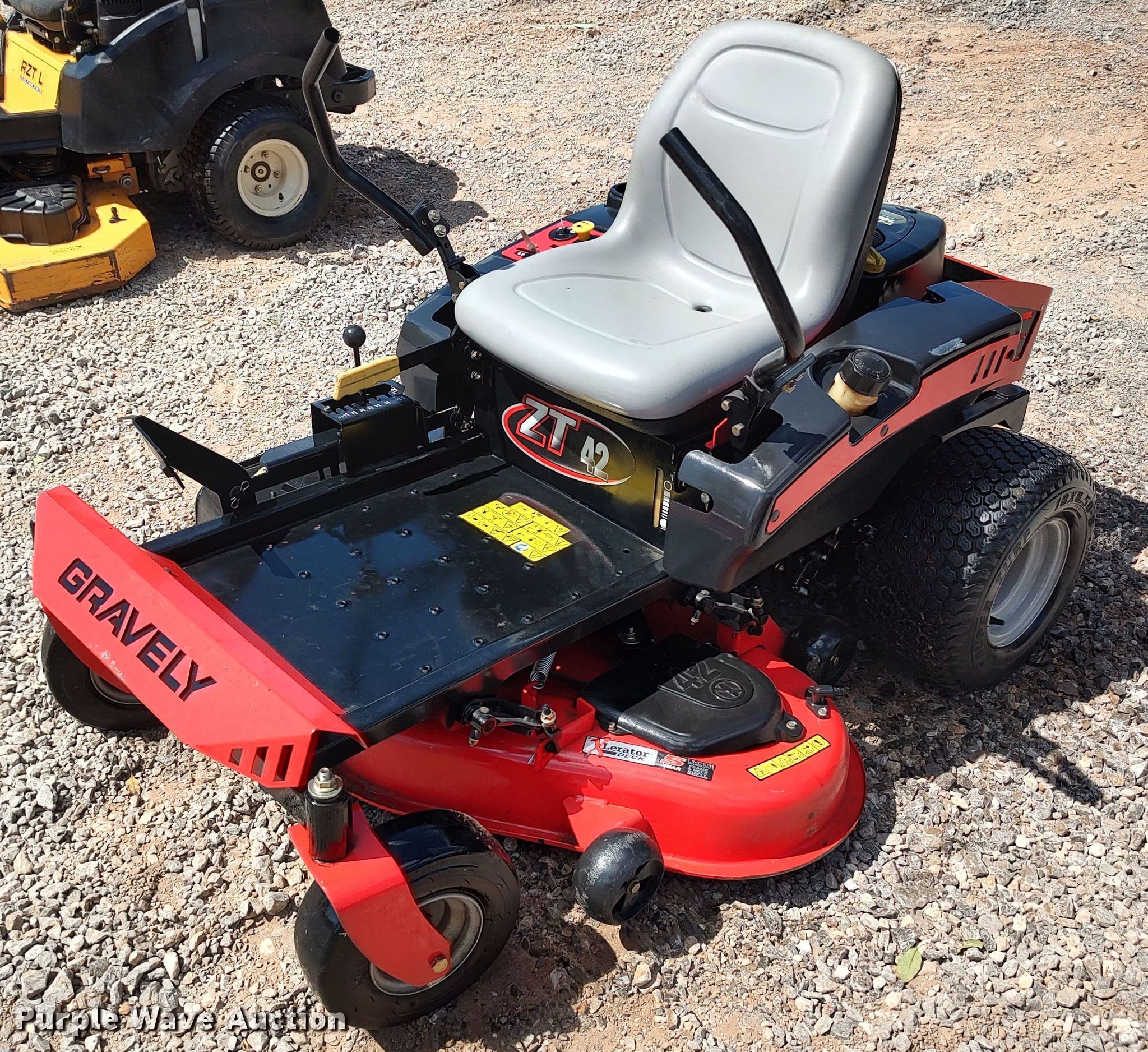 Purple Wave is selling a used Lawn Mower in Oklahoma. This item is a Gravely ZT42 ZTR lawn mower with the following: Cutting width: 42"