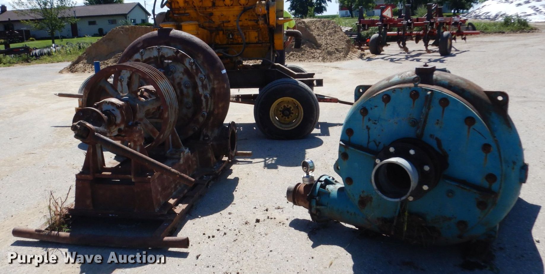Purple Wave is selling a used Pump in Wisconsin. This item is a (2) centrifugal sand dredging pumps with the following: Heatherington & Berner, Approx. 6' x 3' x 4'H, 8" diameter outlet, Belt driven, One unknown, 7' x 7'x 4'H, 8" diameter outlet, Shaft driven