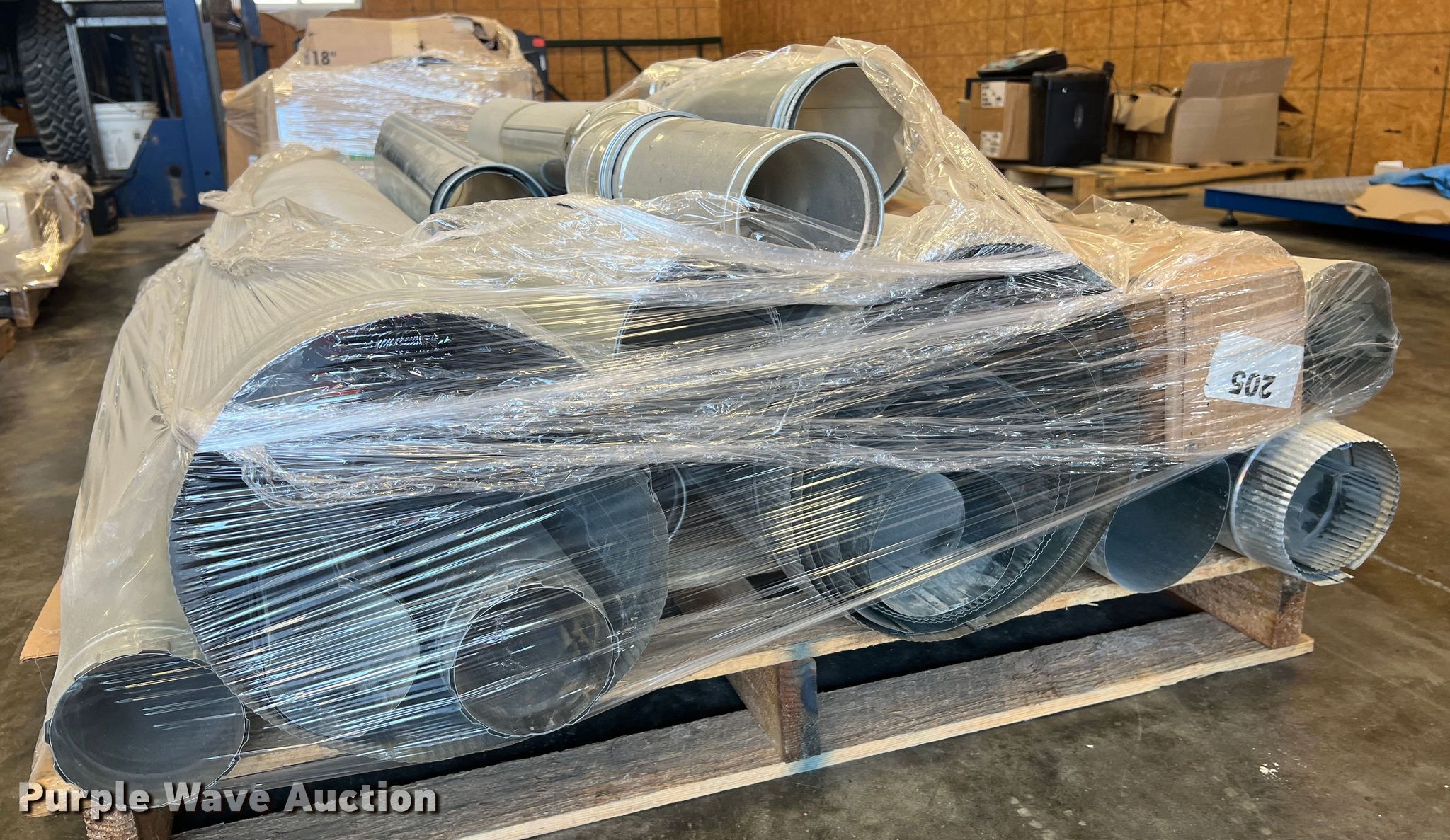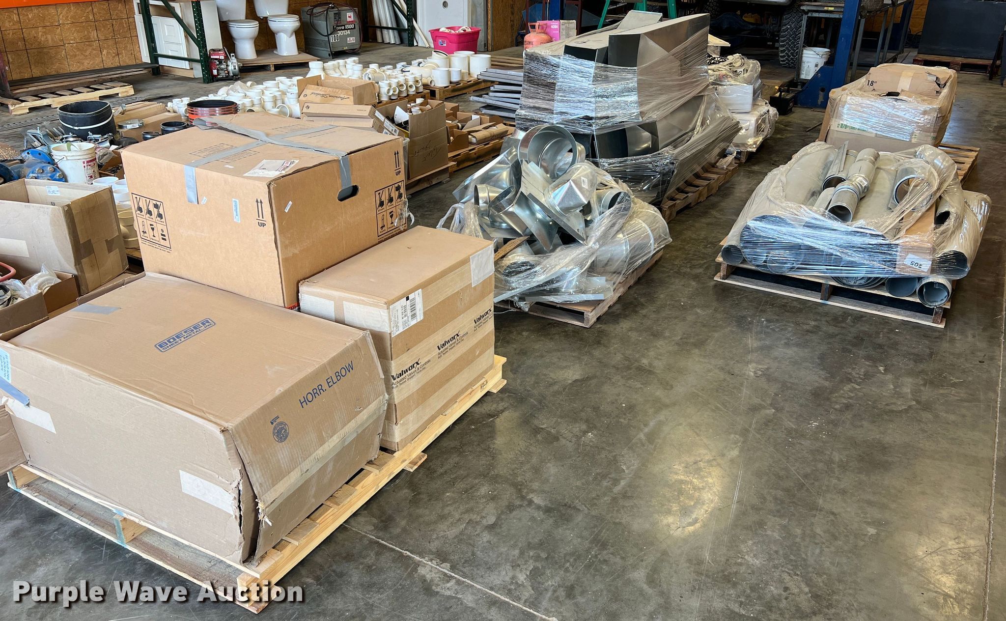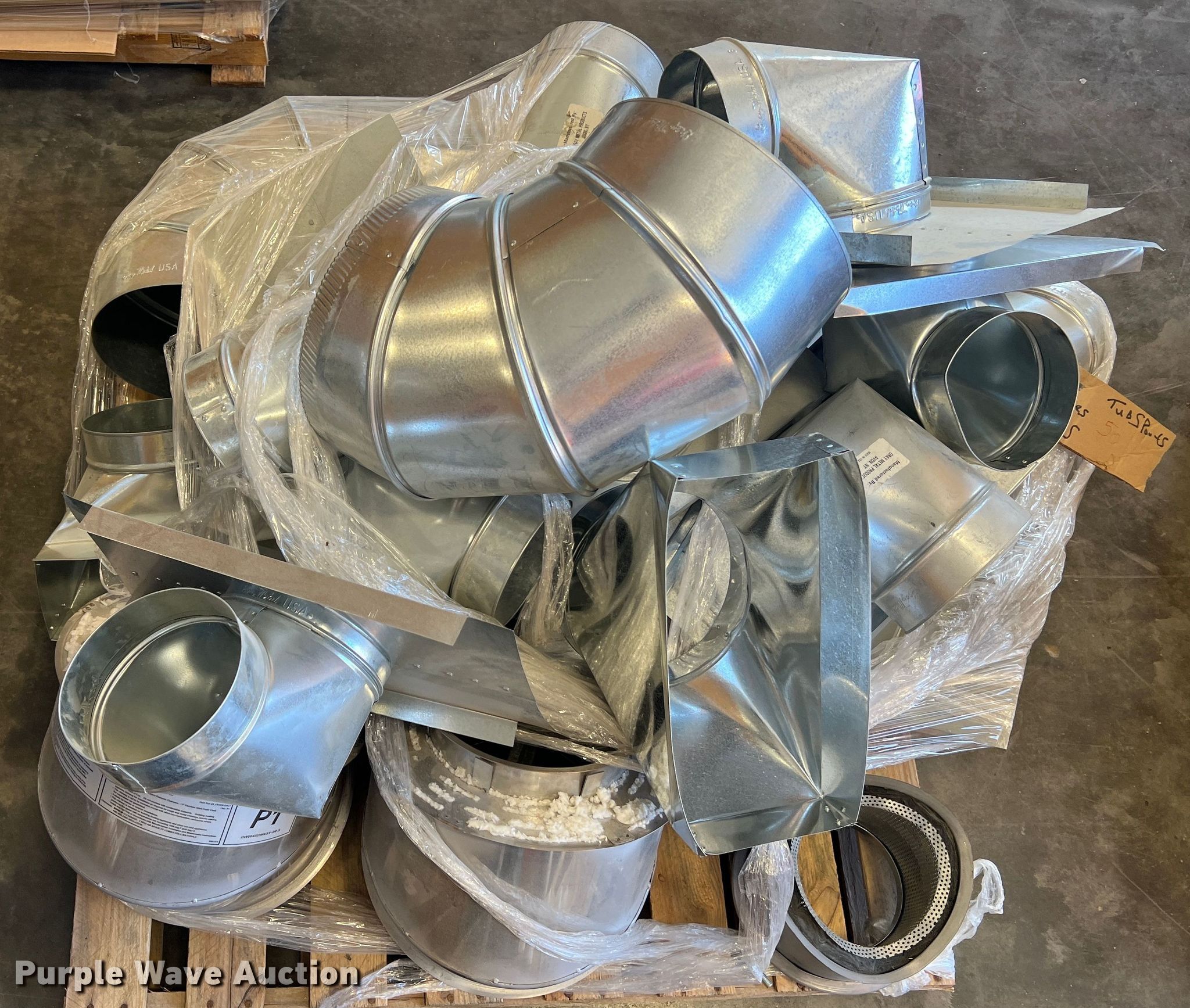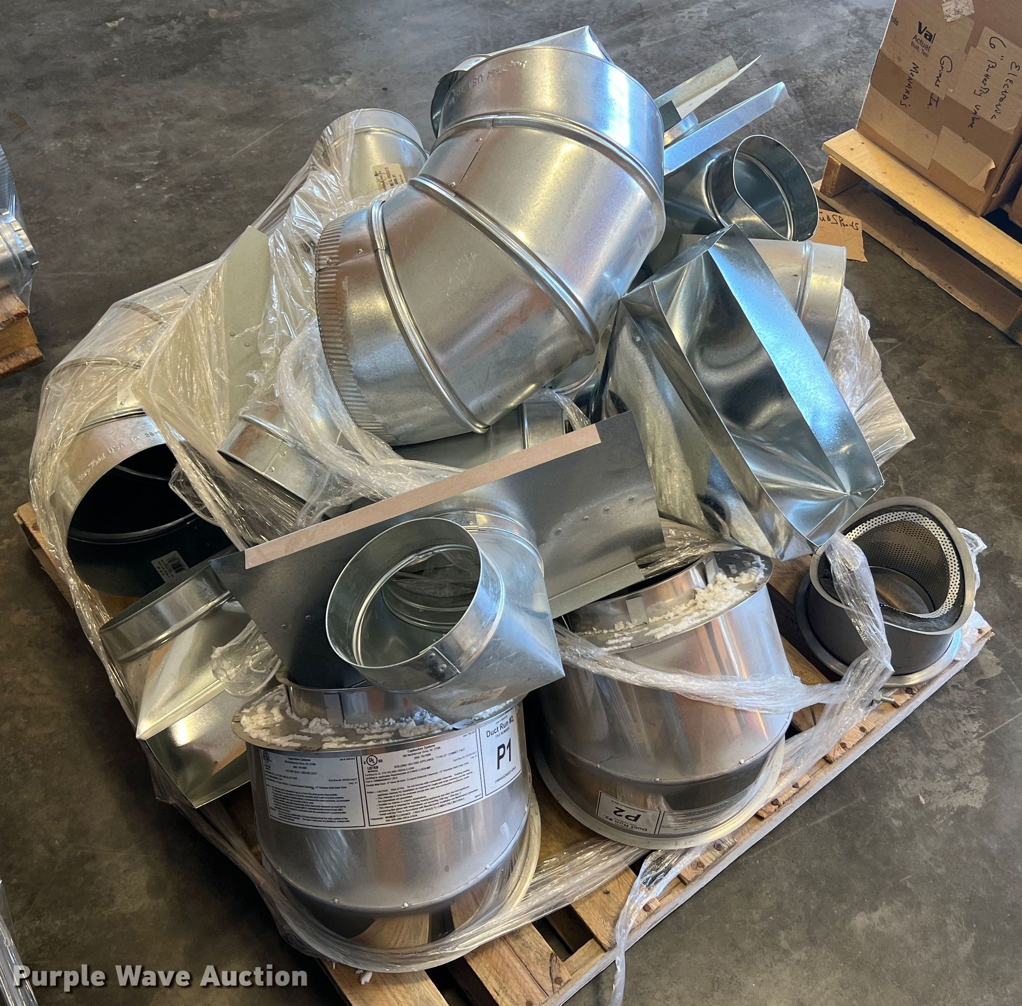 Purple Wave is selling a used Appliances in Missouri. This item is a (6) pallets of HVAC parts with the following: Ductwork, Drip trays, Flexible duct