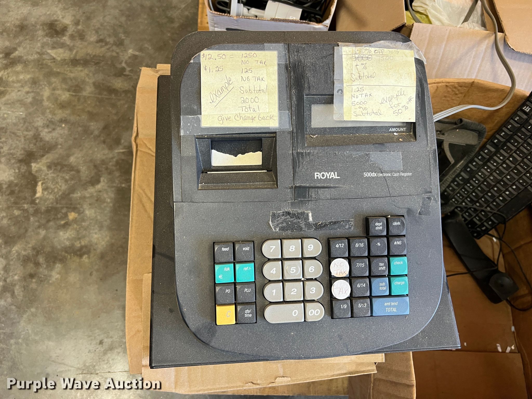 Purple Wave is selling a used Office Supplies and Equip. in Missouri. This item is a Office equipment with the following: HP Design Jet T520 printer, Cash register, Security cameras, Monitor, Keyboard, Phone