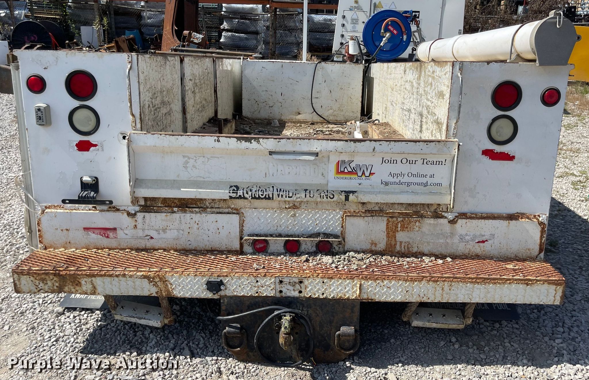 Knapheide utility bed. 11' 6" L x 94" W, Fuel tank, Hose reel. K&W Underground, Inc... 15608 S Keeler Terr. Olathe, KS 66062