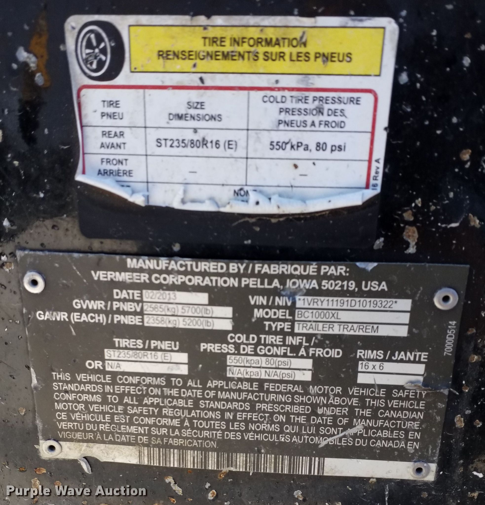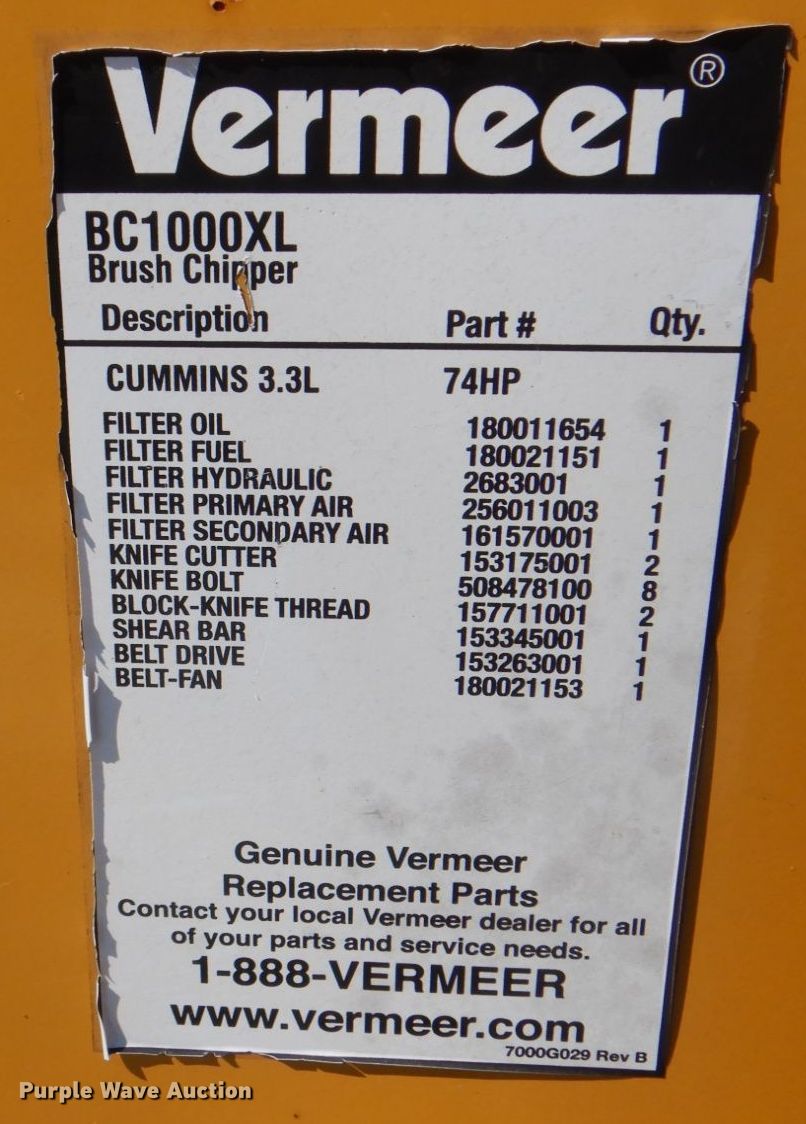 Purple Wave is selling a used Wood Chipper or Stump Grinder in Texas. This item is a 2013 Vermeer BC1000XL wood chipper with the following: Hours: 2,013 on meter, VIN: 1VRY11191D1019322