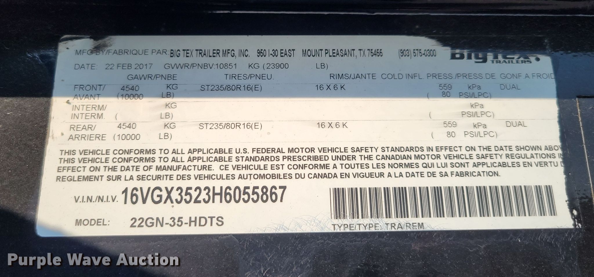 2017 Big Tex 22GN-35-HDTS equipment trailer