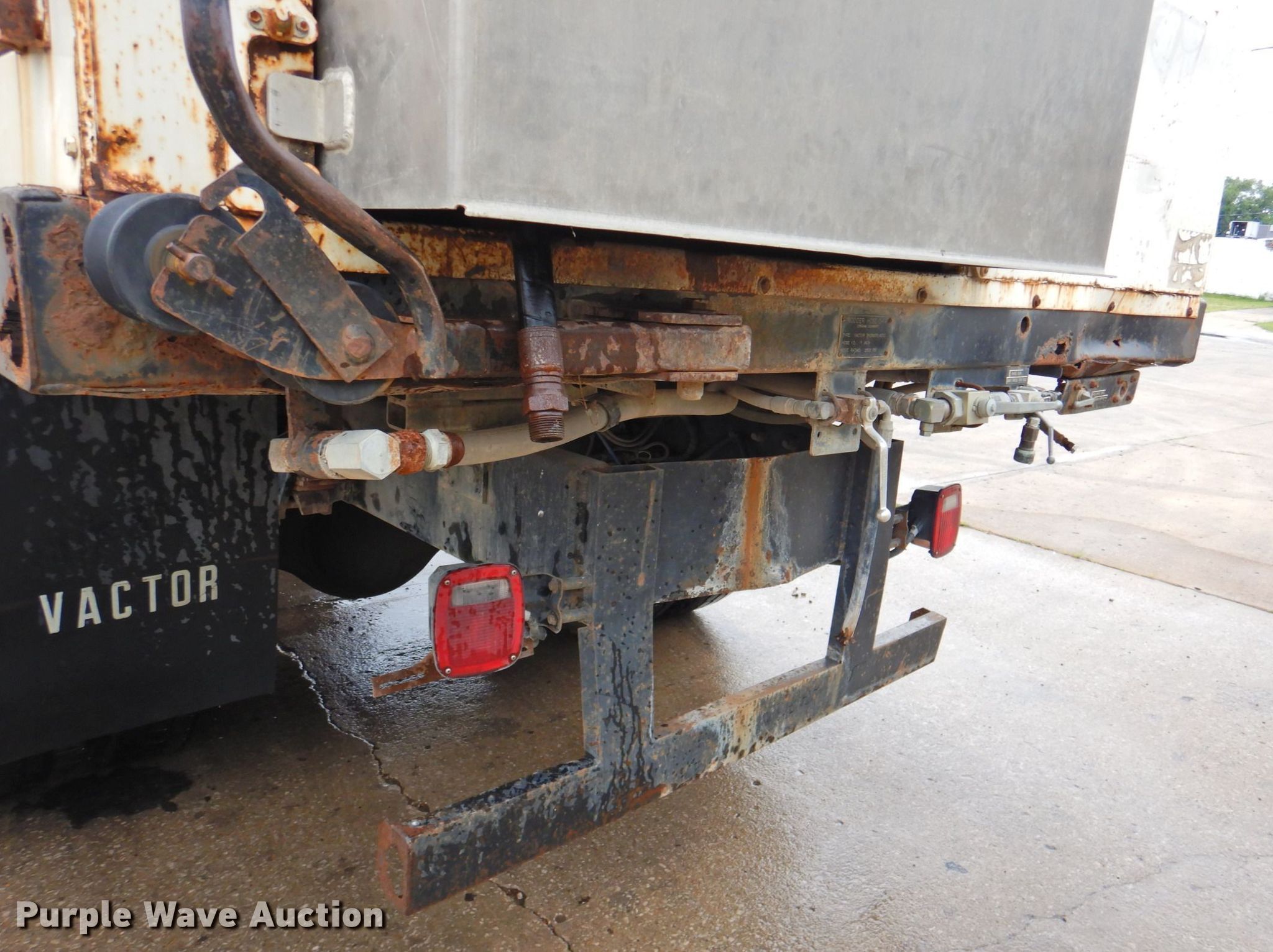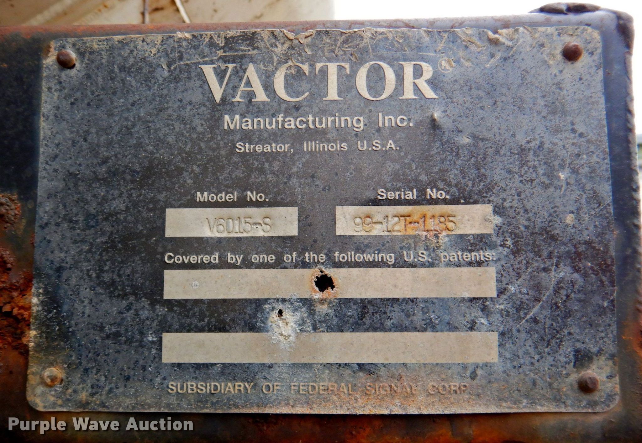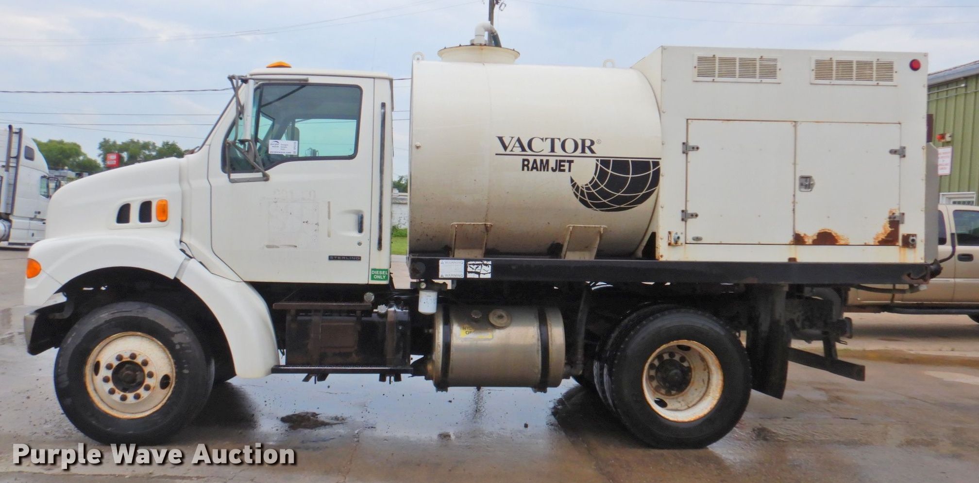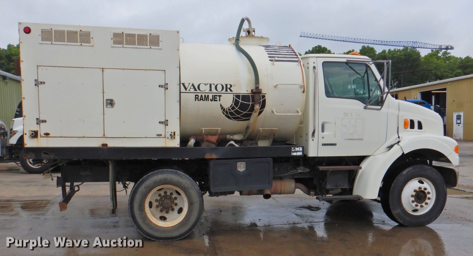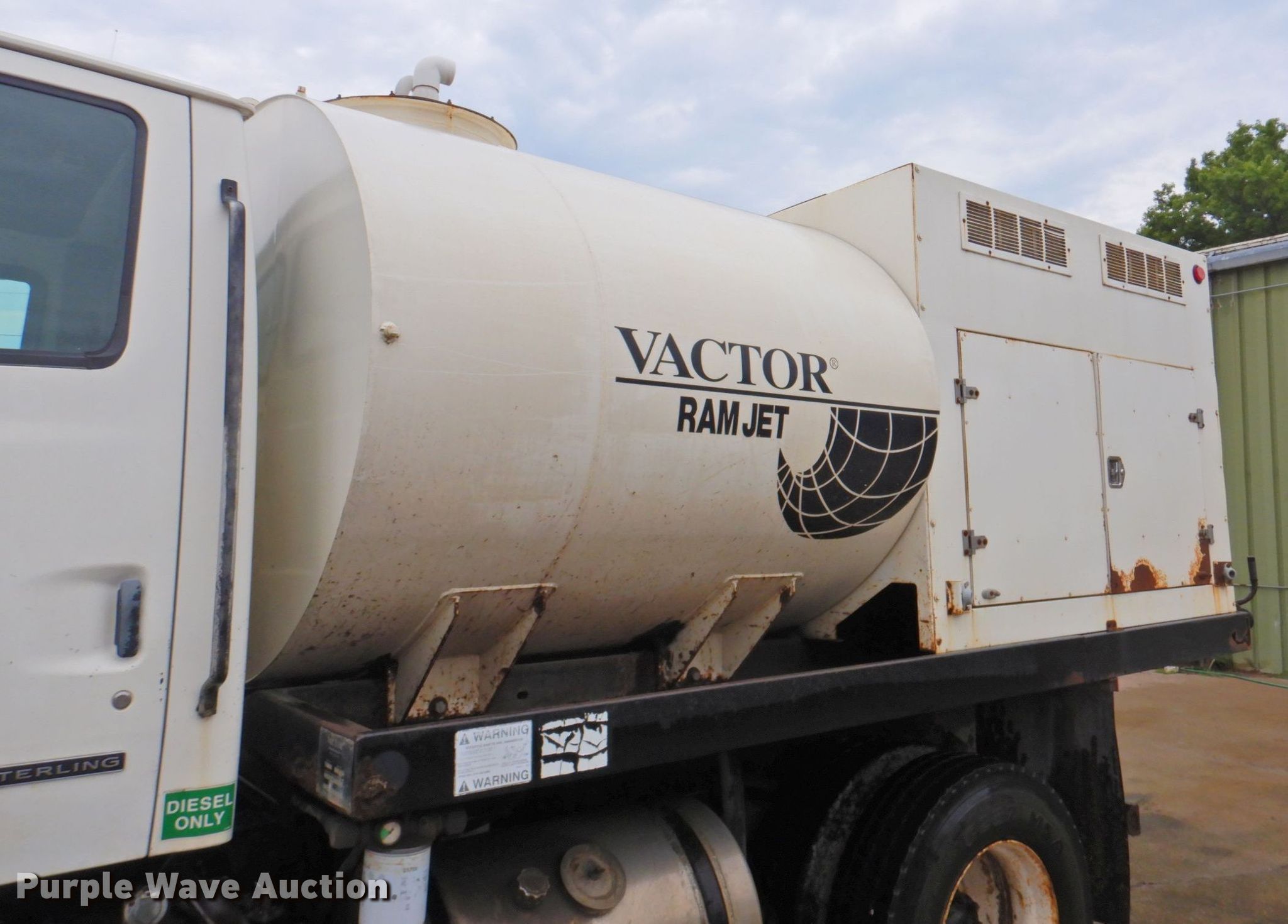 1999 Sterling L7501 sewer jetter truck. Miles: 98,294 on odometer, Hours: 15,107 on meter, VIN: 2FZHRJAA3XAA73356. Engine Caterpillar 3126, Serial: 7AS49937, Displacement: 7.2L, Cylinders: 6, Fuel type: Diesel. Transmission Allison, Automatic. Chassis Axles: Single, Suspension: Spring, Brakes: Air, PTO, GVWR: 33,000 lbs. Interior AC, Cruise control. Features Tank bed Vactor V6015-S, Serial: 99-12T-1185, Capacity: 1,000 gallons, Water pump Vactor, PSI: 2000, GPM: 80, Hose reel Rear, Hydraulic, Diameter: 1", Length: 500'. Tires Size: 11R22.5. Missouri title. Title distribution may be delayed up to 30 days from verification of funds. Key Equipment & Supply. 6716 Berger Avenue. Kansas City, KS 66111