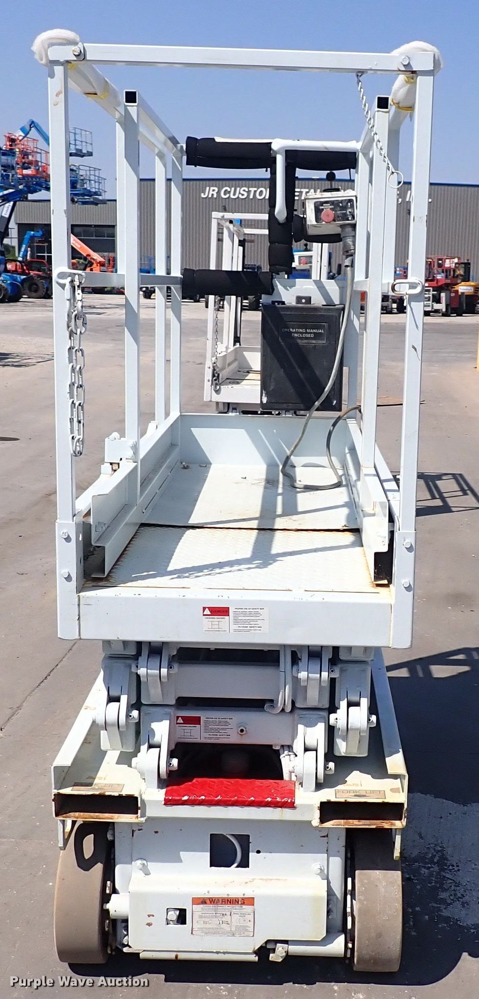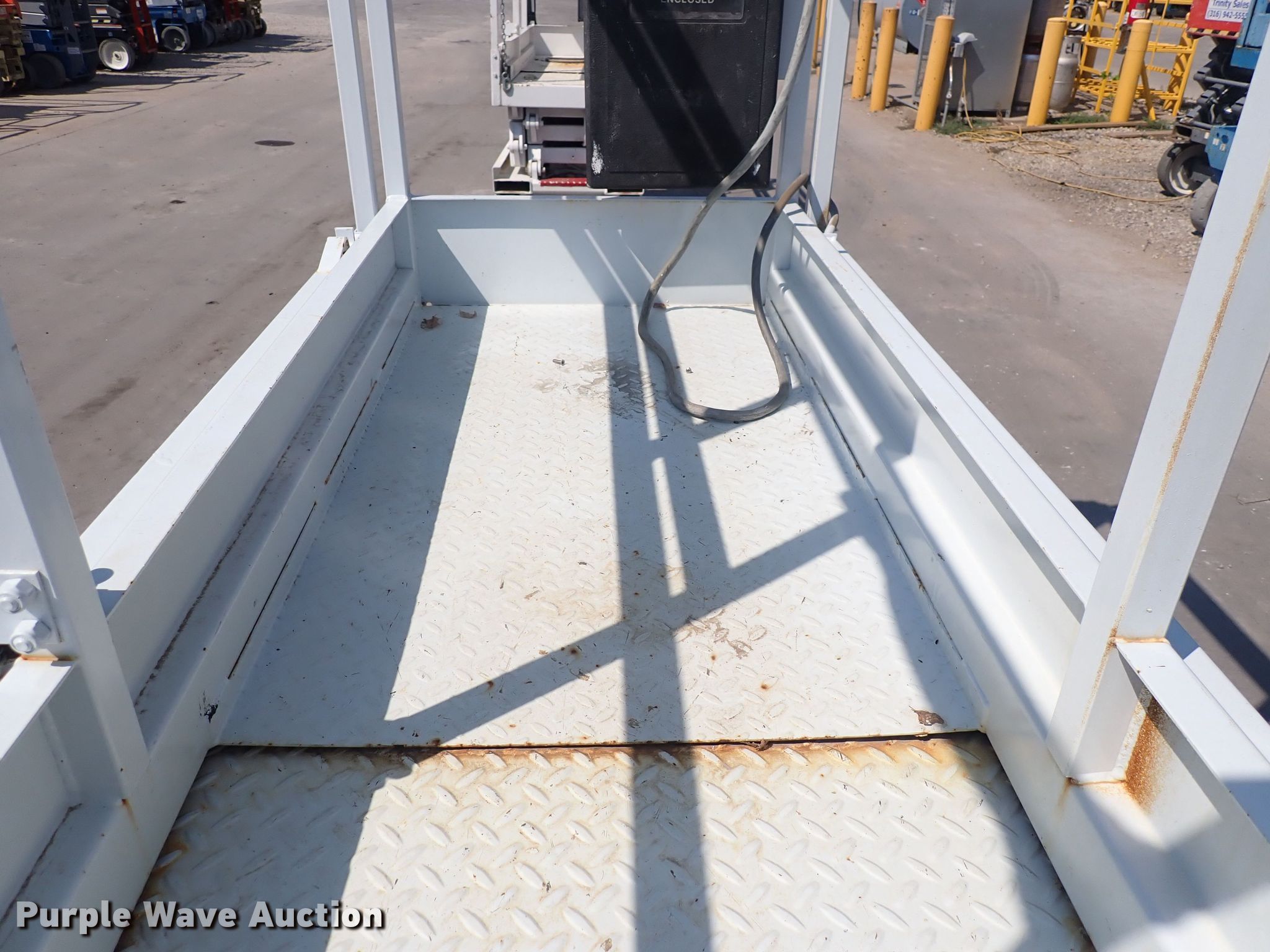 1995 Snorkel 8L-15 scissor lift. Serial: 9528961095. Electric Motor Volts: 24. Features Maximum lift capacity: 600 lbs, Maximum lift height: 15', Platform: 64" L x 28" W, Controls: Platform, Ground, Platform extensions: Manual. Tires Tire size: 2.00-8, Solid. Trinity Sales. 2225 S. West Street. Wichita, KS 67213