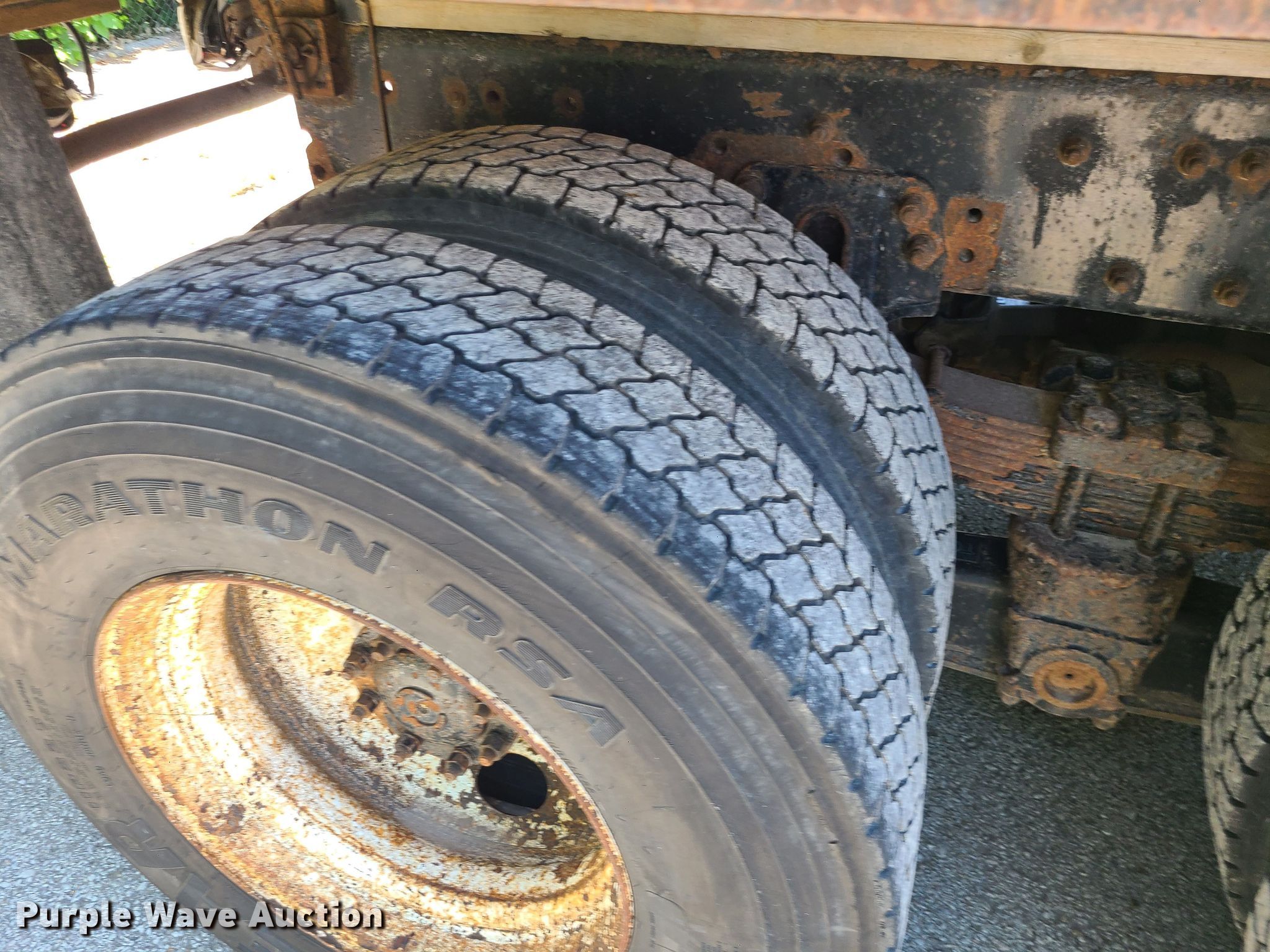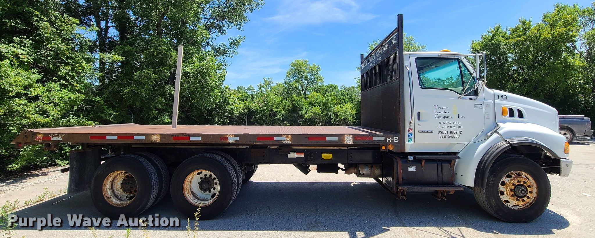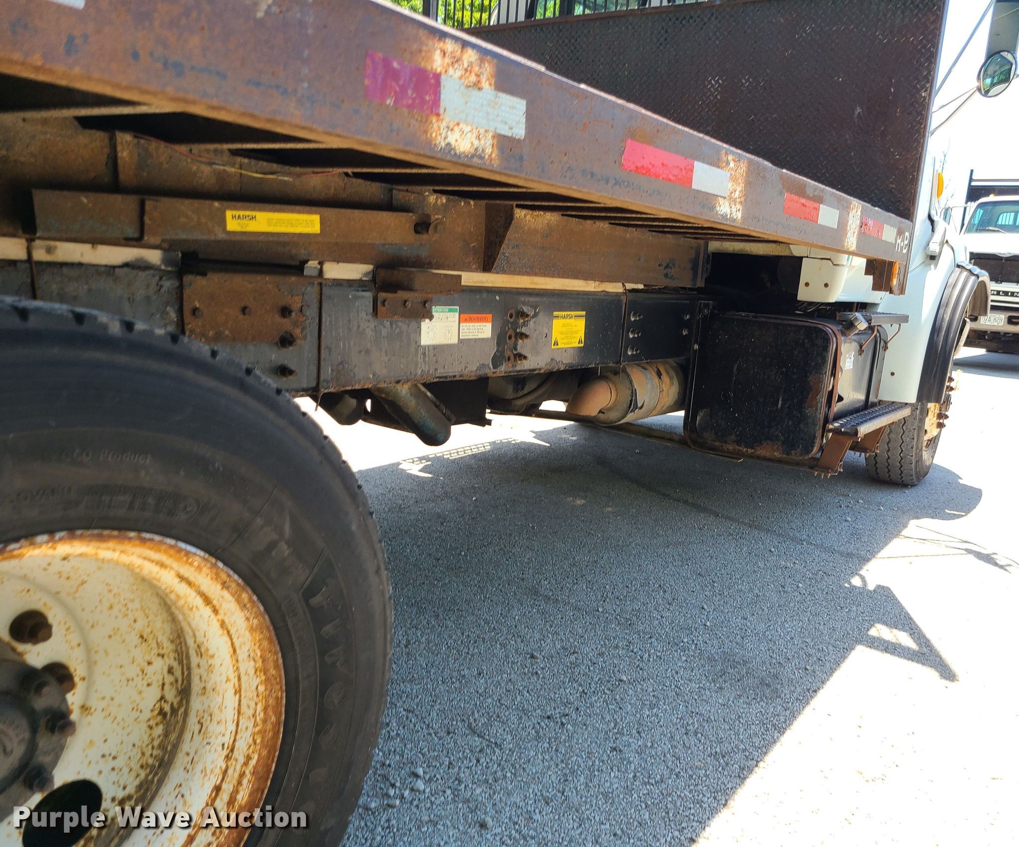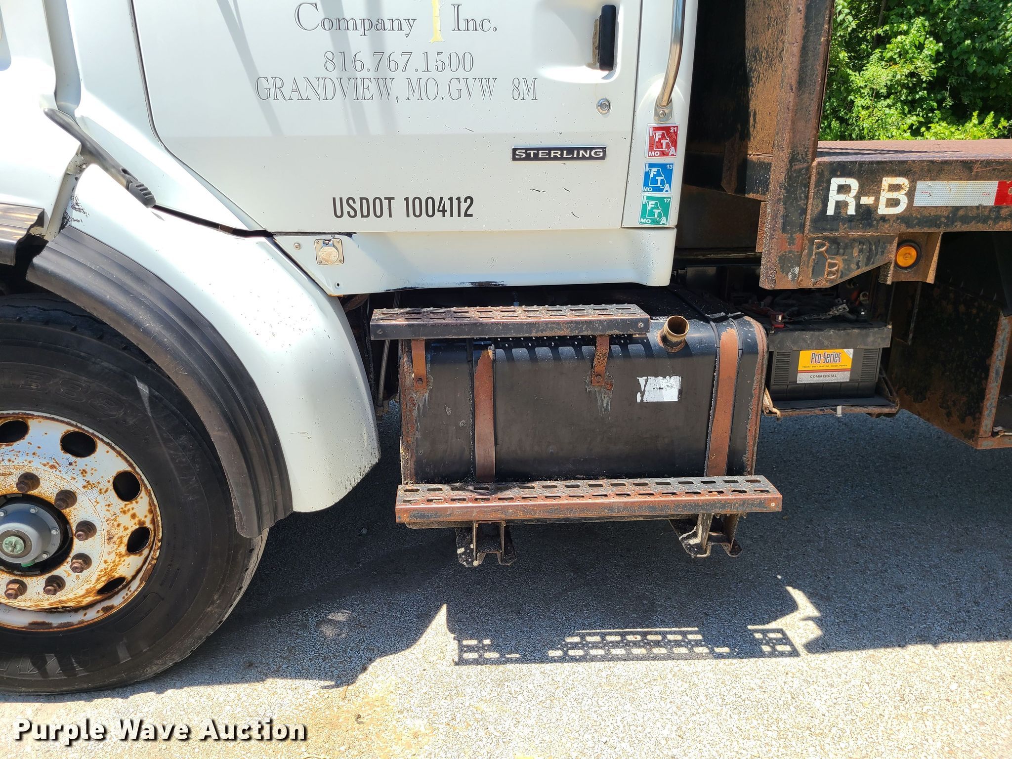 2004 Sterling L-Line dump flatbed truck. Miles: 292,516 on odometer, VIN: 2FZHAWAK74AM99752. Engine Caterpillar 3126, Displacement: 7.2L, Cylinders: 6, Fuel type: Diesel. Transmission Manual. Chassis Axles: Tandem, Suspension: Spring over walking beam, Brakes: Air, PTO. Interior AC, Heat. Features Dump flatbed 20' L x 96" W, Ram: Double, Rolling tailboard. Tires Front: 315/80R22.5, Rear: 11R22.5. Notes Non-operational AC. Missouri title. Teague Lumber Co. 300 Duck Rd. Grandview, MO 64030