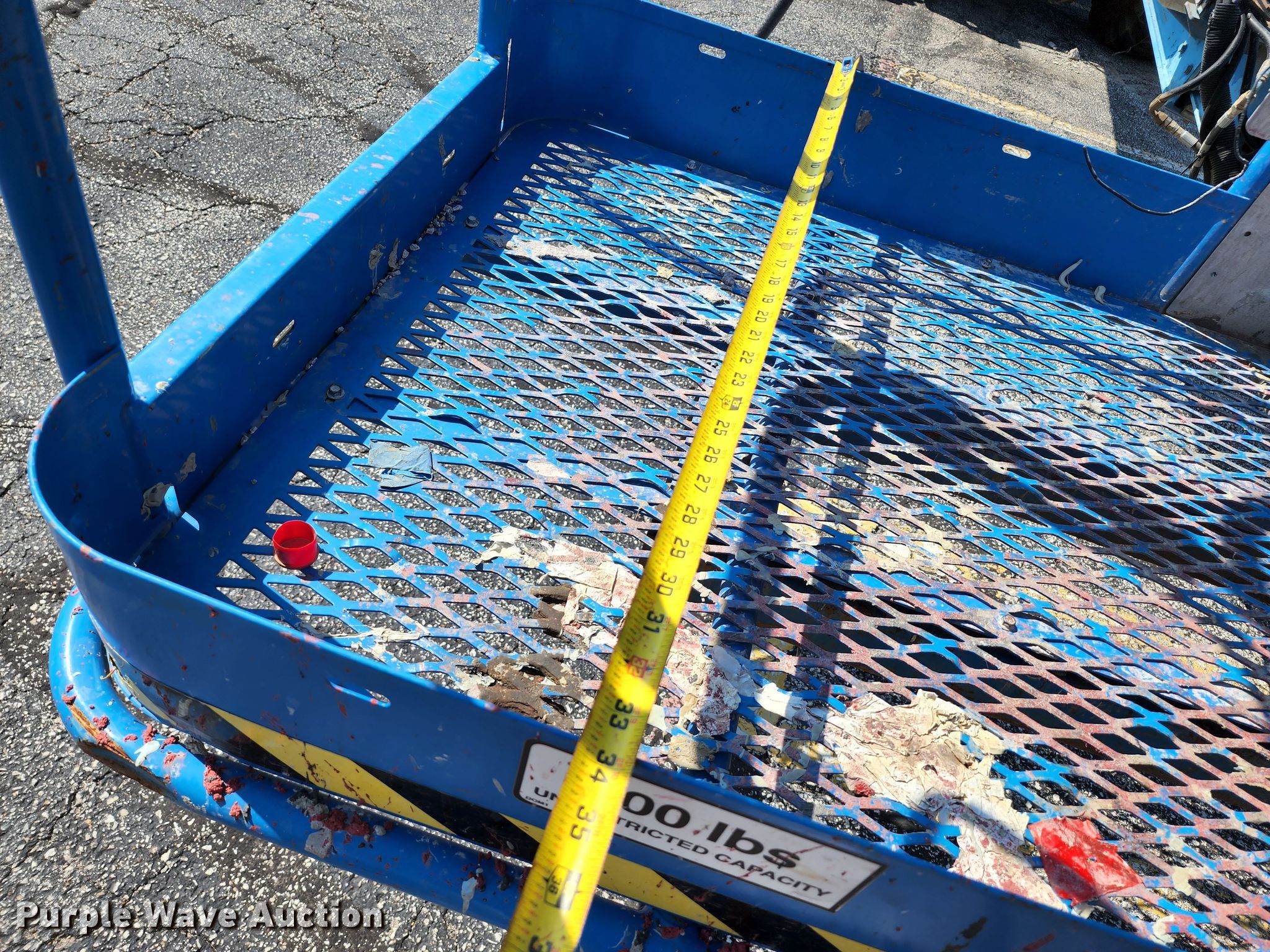 1998 Genie S-60 boom lift. Hours: 6,560 on meter, Serial: 3200. Engine Cylinders: 4, Fuel type: Gas. Chassis Four wheel drive. Features Articulating boom, Maximum lift capacity: 750 lbs, Maximum lift height: 60", Platform: 96" L x 34" W, Controls: Platform, Ground, Platform rotation: Hydraulic. Tires Tire size: 15-19.5. View repairs. GKW Restoration Group. 5400 Northeast Chouteau Trafficway. North Kansas City, MO 64116