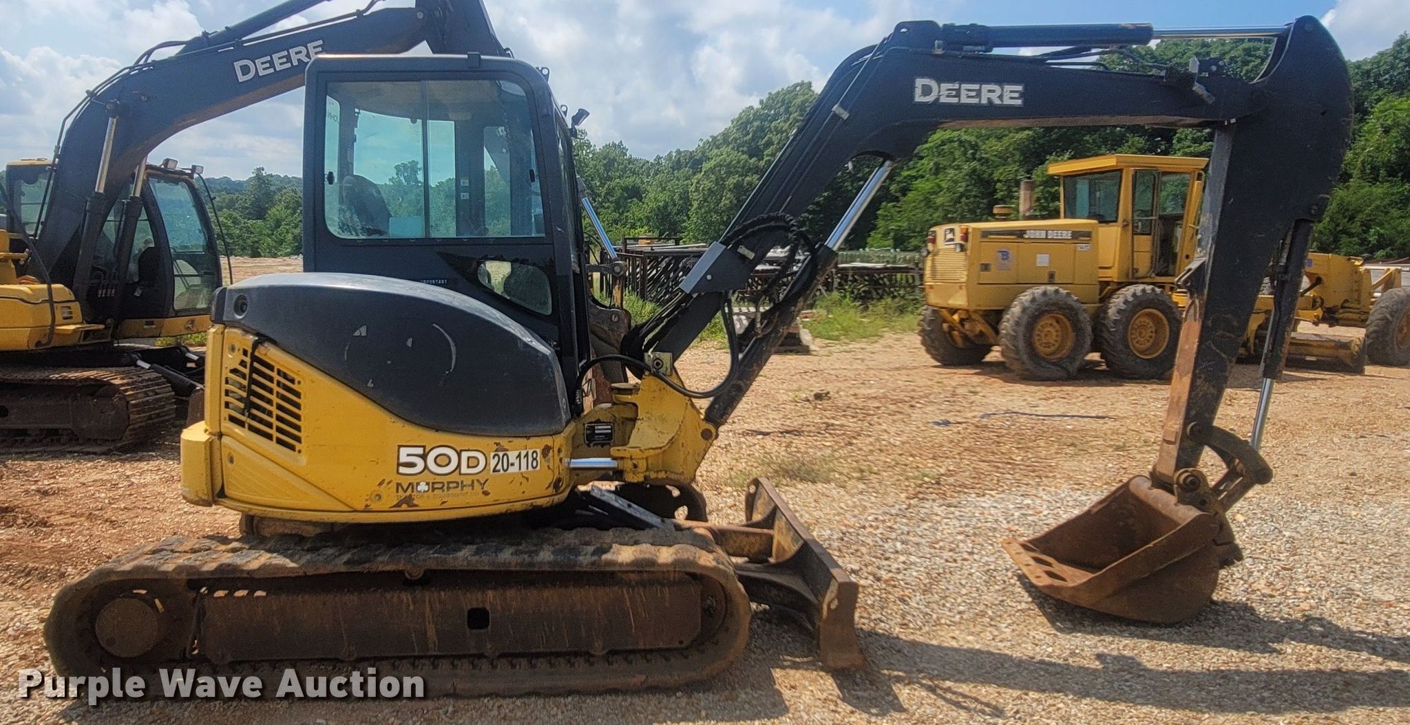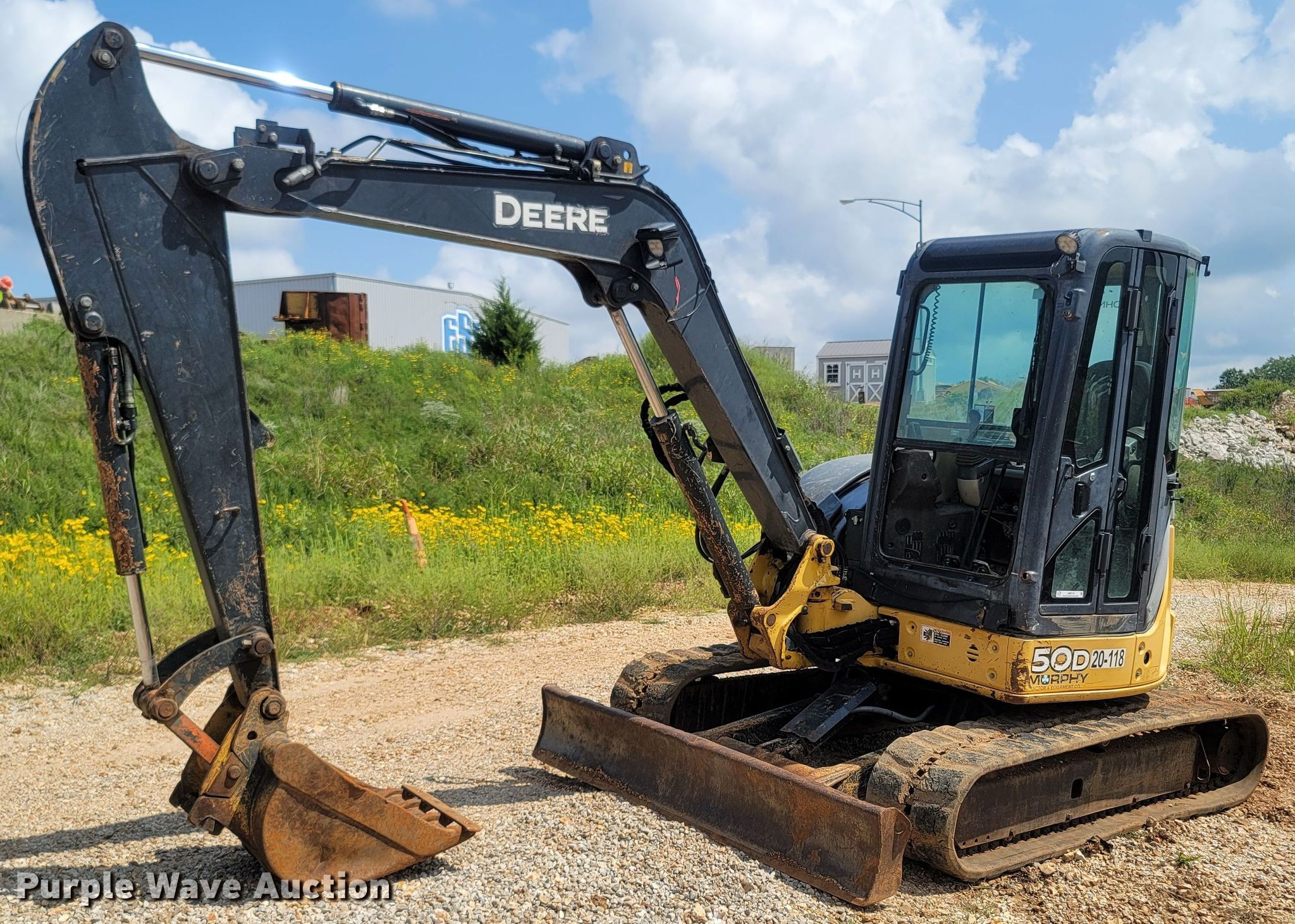Purple Wave is selling a used Mini Excavator in Missouri. This item is a 2012 John Deere 50D mini excavator with the following: Hours: 9,023 on meter, Serial: 1FF050DXCCG277311, Unit #: 20-118