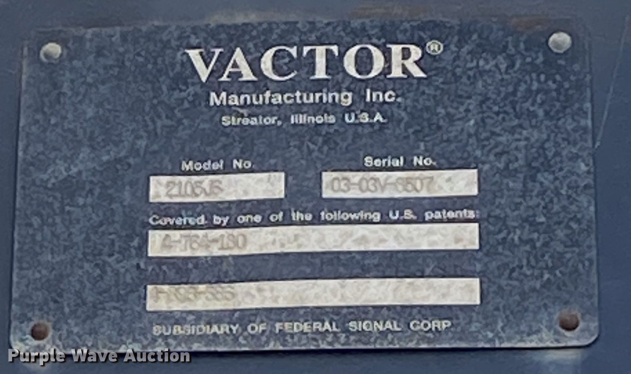2003 International 7400 sewer jetter truck. Miles: 77,481 on odometer, Hours: 9,188 on meter, VIN: 1HTWGADT33J072540, Unit #: 200. Engine International 530, Displacement: 8.7L, Cylinders: 6, Fuel type: Gas. Transmission Automatic. Chassis Axles: Tandem, Suspension: Walking beam, Brakes: Air, PTO. Interior AC, Heat, Cruise control. Features Tank bed Vactor Mfg. Inc. 2105-J6, Serial: 03-03V-6507, Capacity: 2,000 gallons, Rear manway, Rear outlet: 3", Engine John Deere, Cylinders: 6, Fuel type: Diesel, Vacuum pump Vactor, Hose reel Front, Hydraulic, Diameter: 1", Telescopic boom Diameter: 6", Length: 20'.. Tires Front: 425/65R22.5, Rear: 11R22.5. Notes Intermittent check engine light, Unknown operating condition. Oklahoma title. Seller is a government entity who will be assigning and distributing the title. Please contact the seller for distribution questions.. Title distribution may be delayed up to 30 days from verification of funds. City of Tulsa, OK. 4502 South Galveston Avenue. Tulsa, OK 74107