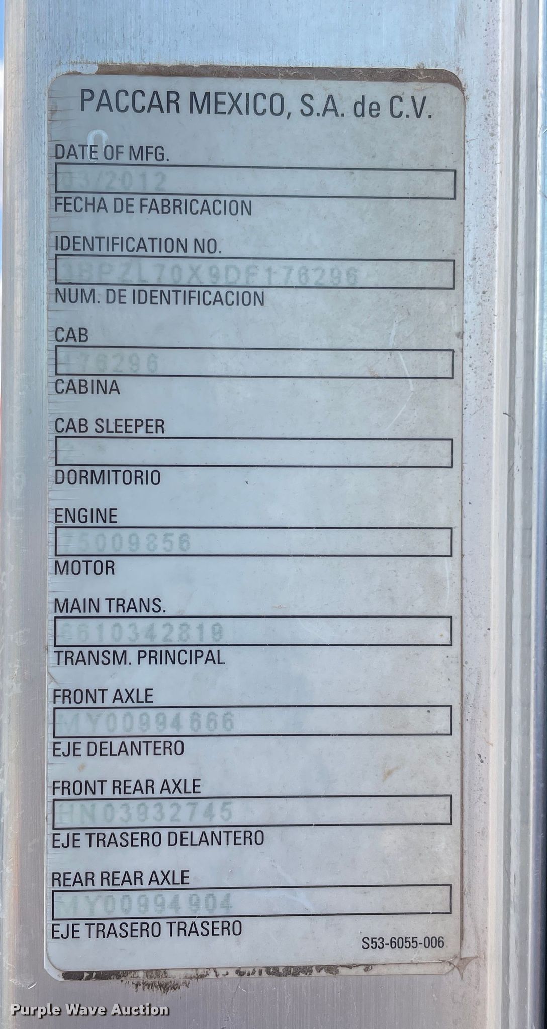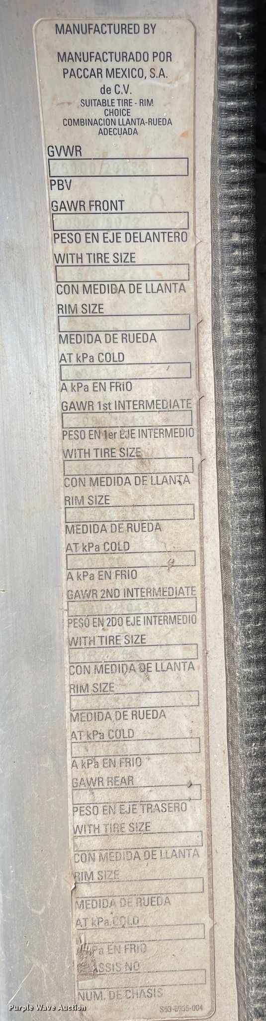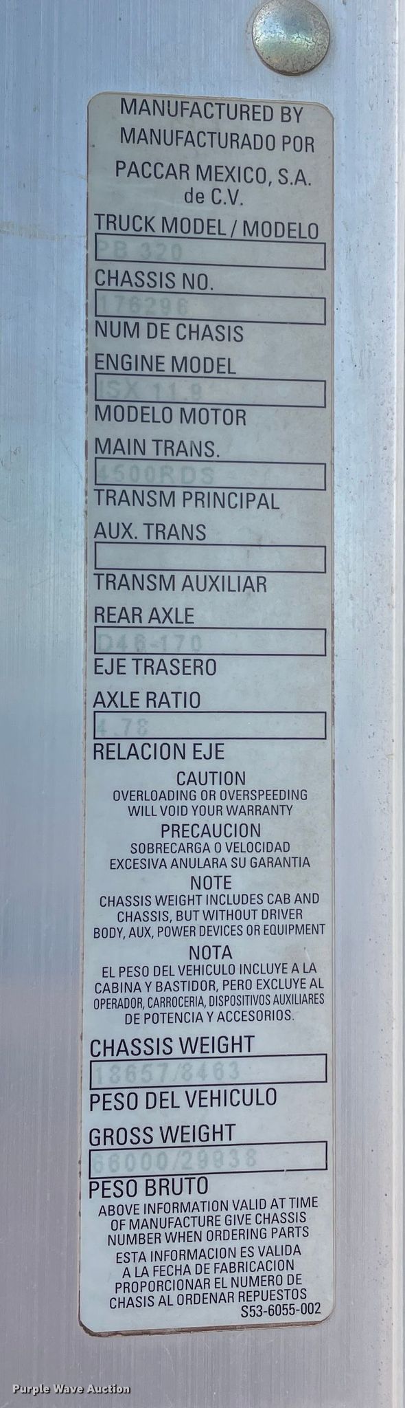 2013 Peterbilt 320 refuse truck. Miles: Unknown, VIN: 3BPZL70X9DF176296, Unit #: 8233. Engine Displacement: 11.9L, Cylinders: 6, Fuel type: Diesel. Transmission Automatic. Chassis Axles: Tandem, Suspension: Walking beam, Brakes: Air, PTO, GVWR: 66,000 lbs. Features Refuse bed Bridgeport 32 Ranger ASL, Serial: 12-1564-05, Load: Side, Cart tipper. Tires Front: 315/80R22.5, Rear: 11R22.5. Notes Engine disassembled, Interior disassembled, Parts missing, Non-operational unit. Oklahoma title. Mileage has not been verified. Odometer discrepancy will be marked on the title. Seller is a government entity who will be assigning and distributing the title. Please contact the seller for distribution questions. City of Lawton, OK. 2215 SW 3rd St. Lawton, OK 73501