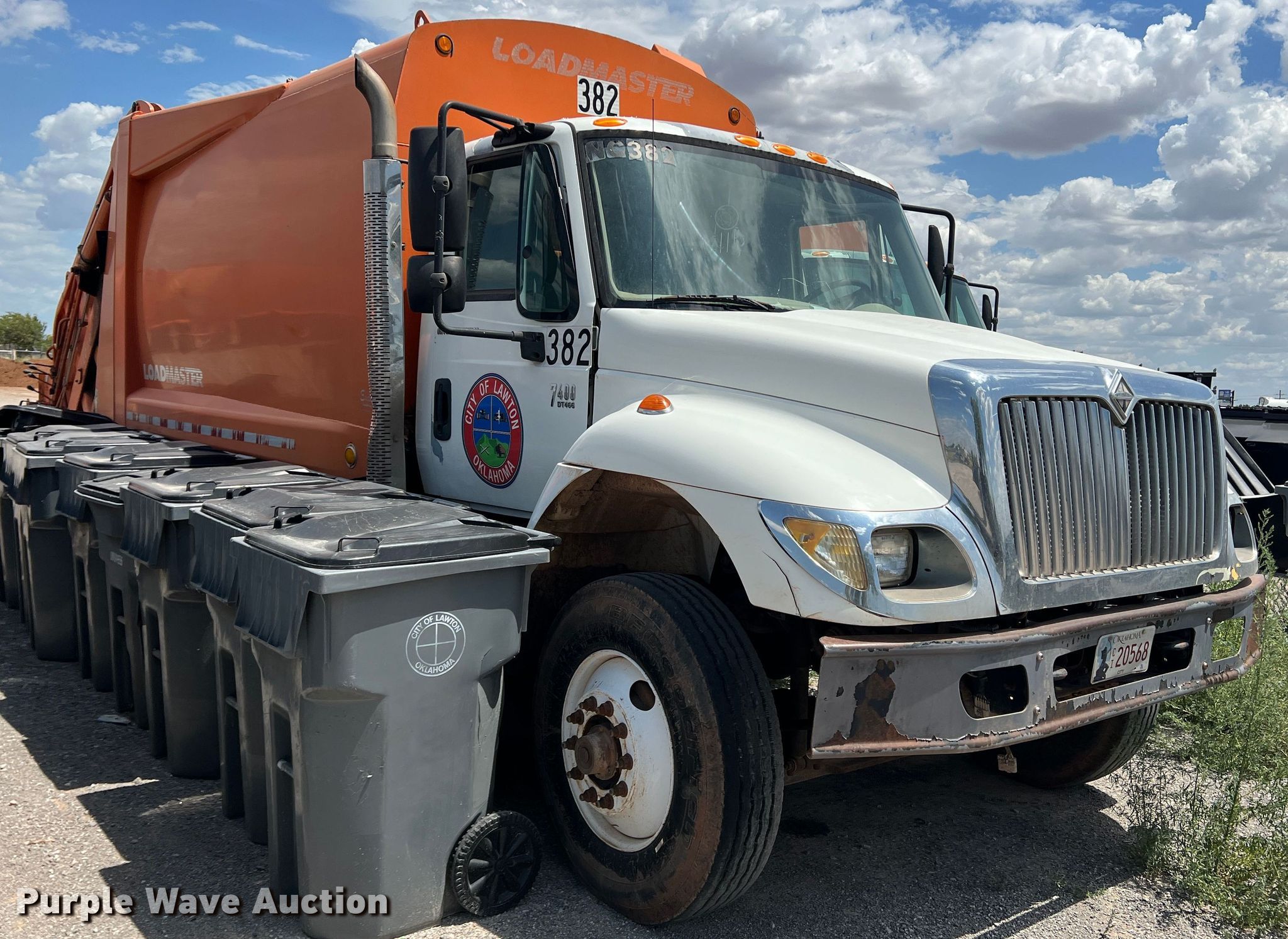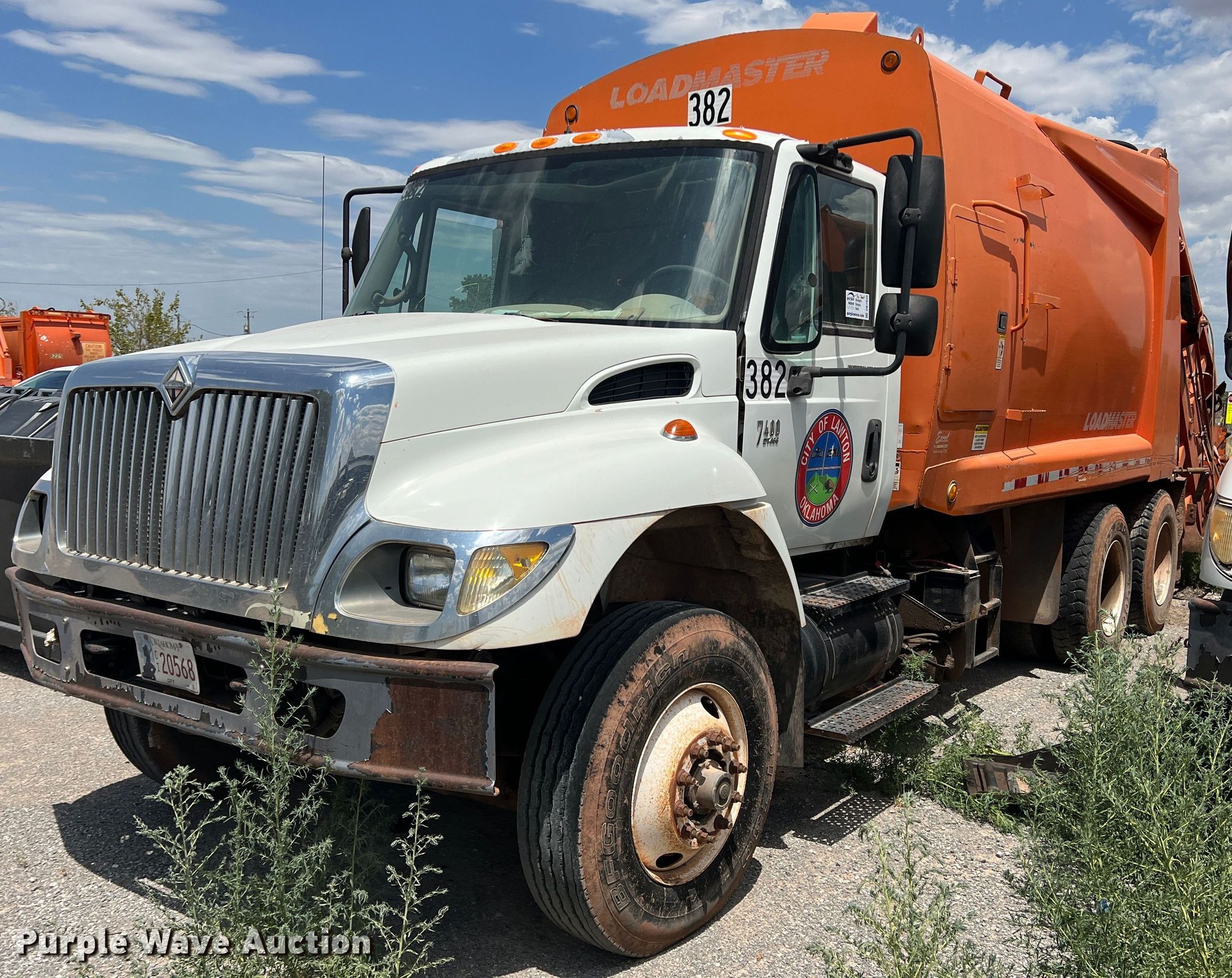 2006 International 7400 refuse truck. Miles: 120,564 on odometer, VIN: 1HTWGAAR26J305434, Unit #: 382. Engine International DT466, Displacement: 7.6L, Cylinders: 6, Fuel type: Diesel. Transmission Automatic. Chassis Axles: Tandem, Suspension: Walking beam, Brakes: Air, Wheelbase: 209". Interior Heat. Features Refuse bed Loadmaster XL 20, Serial: LM051006, Capacity: 20 cu.yd., Load: Rear. Tires Size: 11R22.5. Notes Non-operational unit. Oklahoma title. Seller is a government entity who will be assigning and distributing the title. Please contact the seller for distribution questions. City of Lawton, OK. 2215 SW 3rd St. Lawton, OK 73501