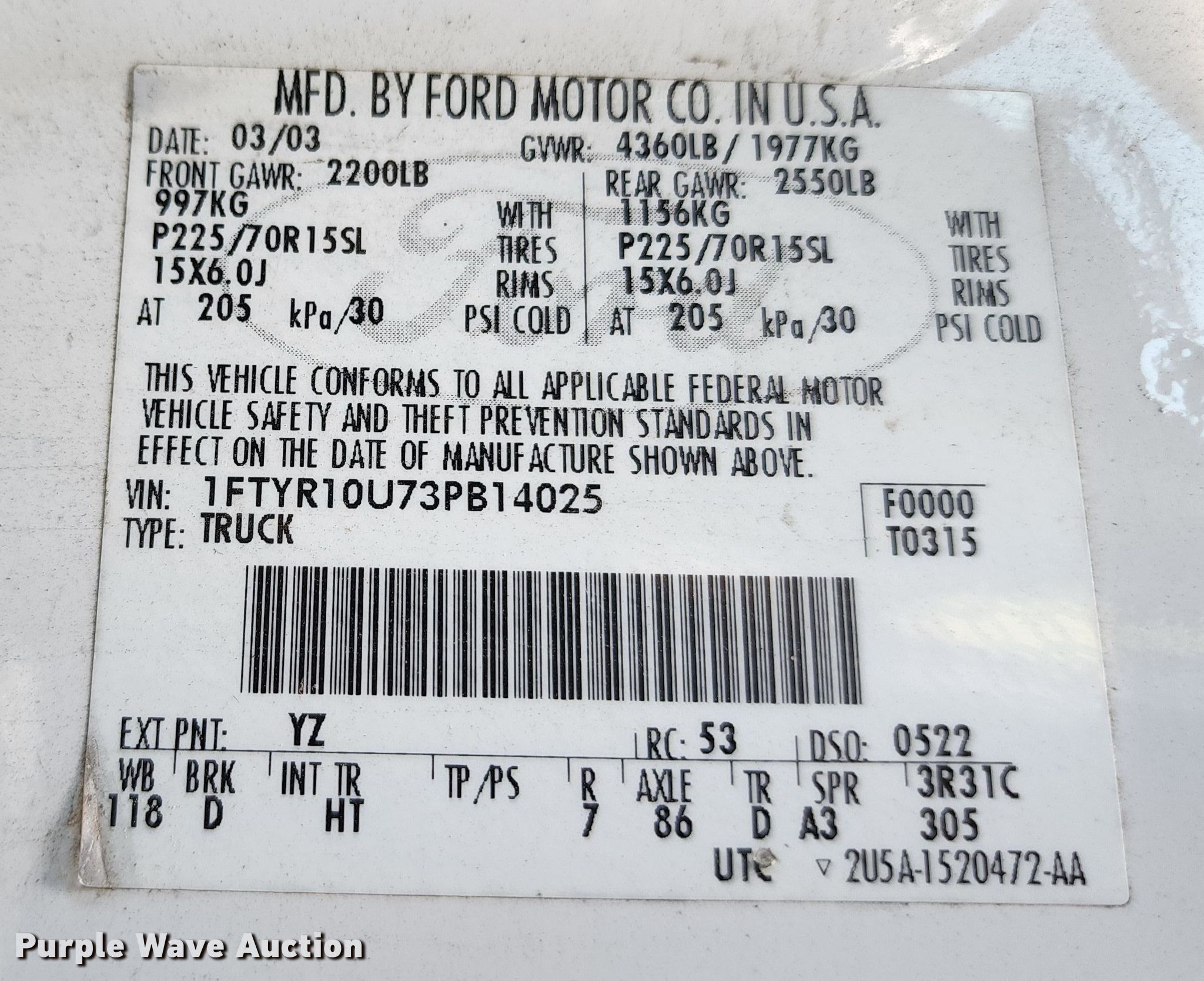 - VIN: 1FTYR10U73PB14025