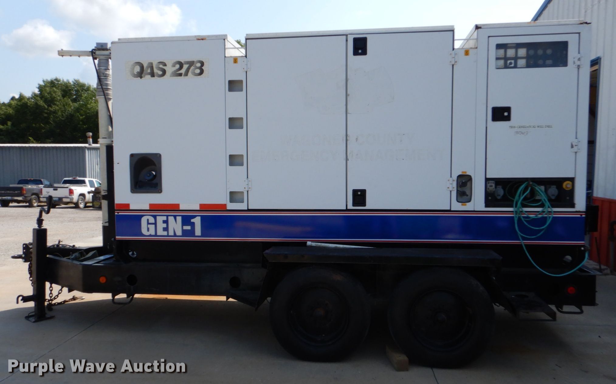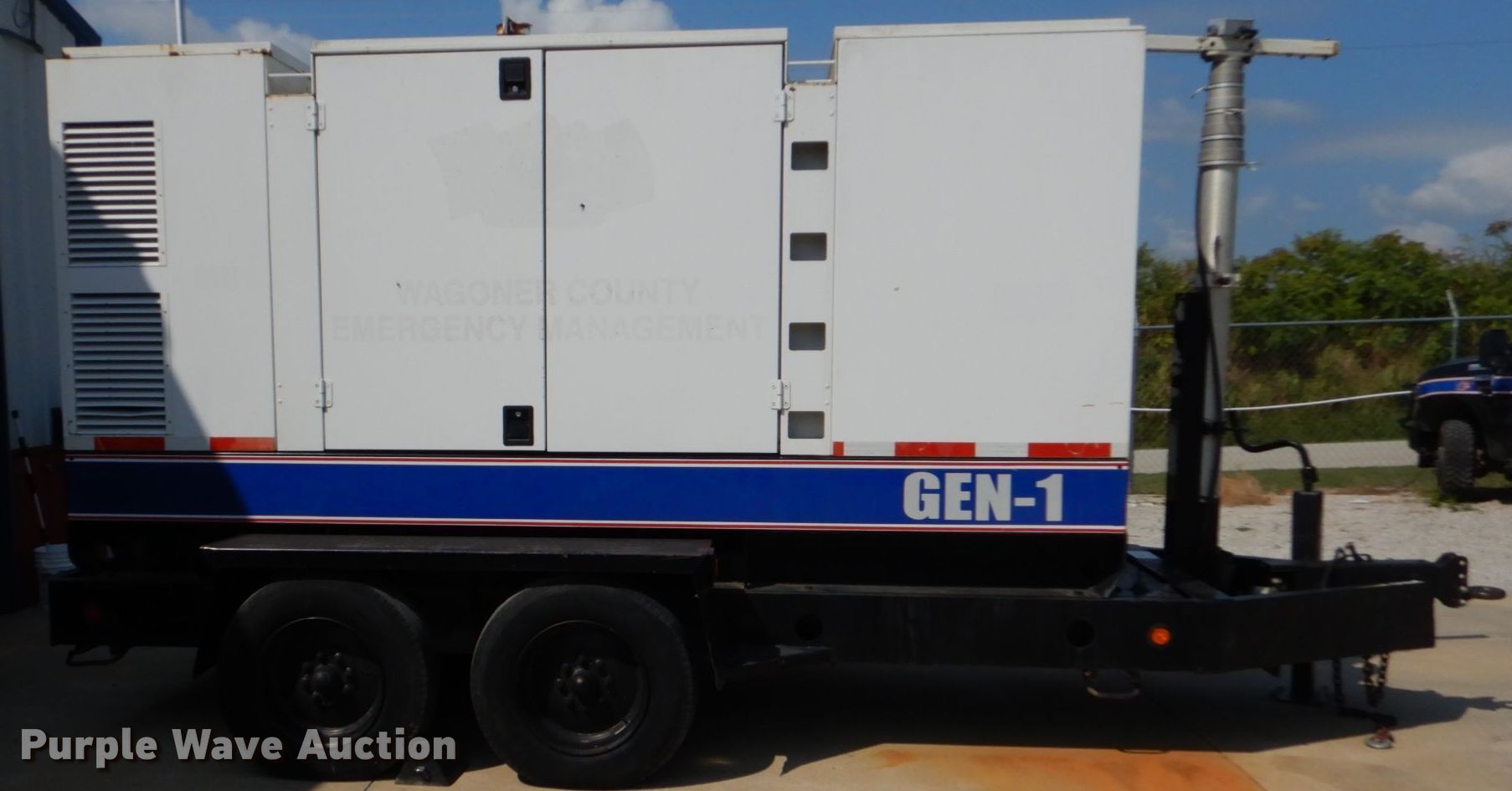 1999 MGS GEN-1 generator. Hours: 7,408 on meter, VIN: 16MPF1223XD025732. Engine Detroit Diesel 6063TK35, Cylinders: 4, Fuel type: Diesel. Features Generator Mecc Alte Spa ECO272L/4, kVA: 300, Phase: Three, Electric start. Trailer 18' 6" L x 89" W, Suspension: Spring, Brakes: Electric, Axles: Tandem, Tire size: 215/75R17.5. Oklahoma title. Wagoner County Emergency Management. 16555 S 305th E Ave. Coweta, OK 74429