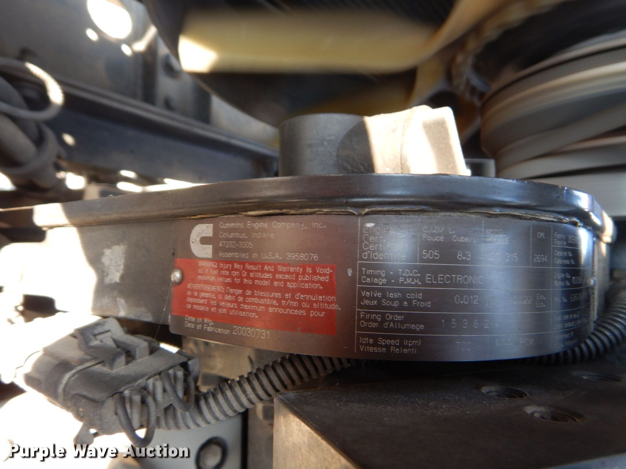 2004 Peterbilt 330 satelite broadcasting truck. Miles: 117,332 on odometer, Hours: 2,992 on meter, VIN: 2NPNHZ7XX4M824062. Engine Cummins ISC, Displacement: 8.3L, Cylinders: 6, Fuel type: Diesel. Transmission Eaton Fuller, Automated Manual. Chassis Axles: Single, Suspension: Air, Brakes: Air, GVWR: 33,000 lbs. Interior AC, Heat, Power windows, Power locks, Brake controller. Features Satelite broadcasting bed Frontline, 22' L x 99" W x 153" H, Hydraulic leveling system, (4) fuel tanks, Kohler generator Hours: 9,553 on meter, Four cylinder diesel engine, 20 kw, Charles 60 amp battery charger, Extension antenna, Garmin GPS, Lowrance GPS. Tires Front: 275/80R22.5, Rear: 295/75R22.5, Brand: Goodyear. Oklahoma title. Wagoner County Emergency Management. 16555 S 305th E Ave. Coweta, OK 74429