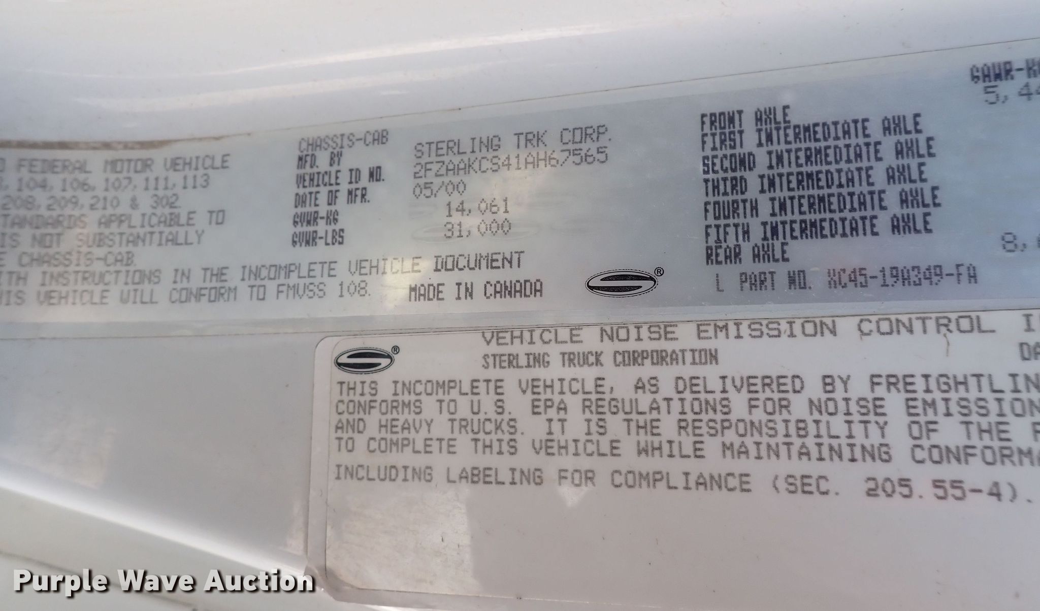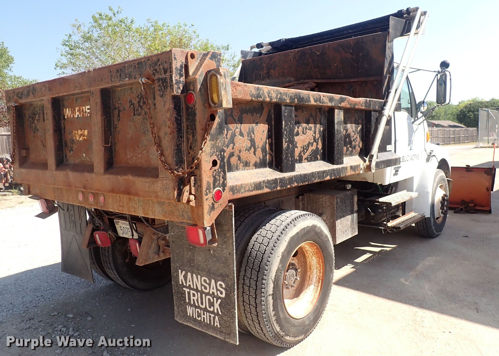 2001 Sterling Acterra dump truck. Miles: 56,810 on odometer, VIN: 2FZAAKCS41AH67565. Engine Mercedes Benz, Displacement: 6.4L, Cylinders: 6, Fuel type: Diesel. Transmission Automatic. Chassis Axles: Single, Suspension: Spring, Brakes: Air, PTO, GVWR: 31,000 lbs. Interior AC, Heat, Cruise control. Features Dump bed Warren F451-10, 10' L x 94" W, Side height: 25", Bed type: Steel, Roll tarp, Ram: Single , End gate: Manual, Plow Western, Width: 120". Tires Size: 11R22.5. Notes Dash warning indicator: Check engine, Windshield chipped or cracked. Kansas title. Mileage has not been verified. Exempt will be written in the odometer disclosure on the title. Bel Aire Public Works. 4103 N Woodlawn Blvd. Bel Aire, KS 67220