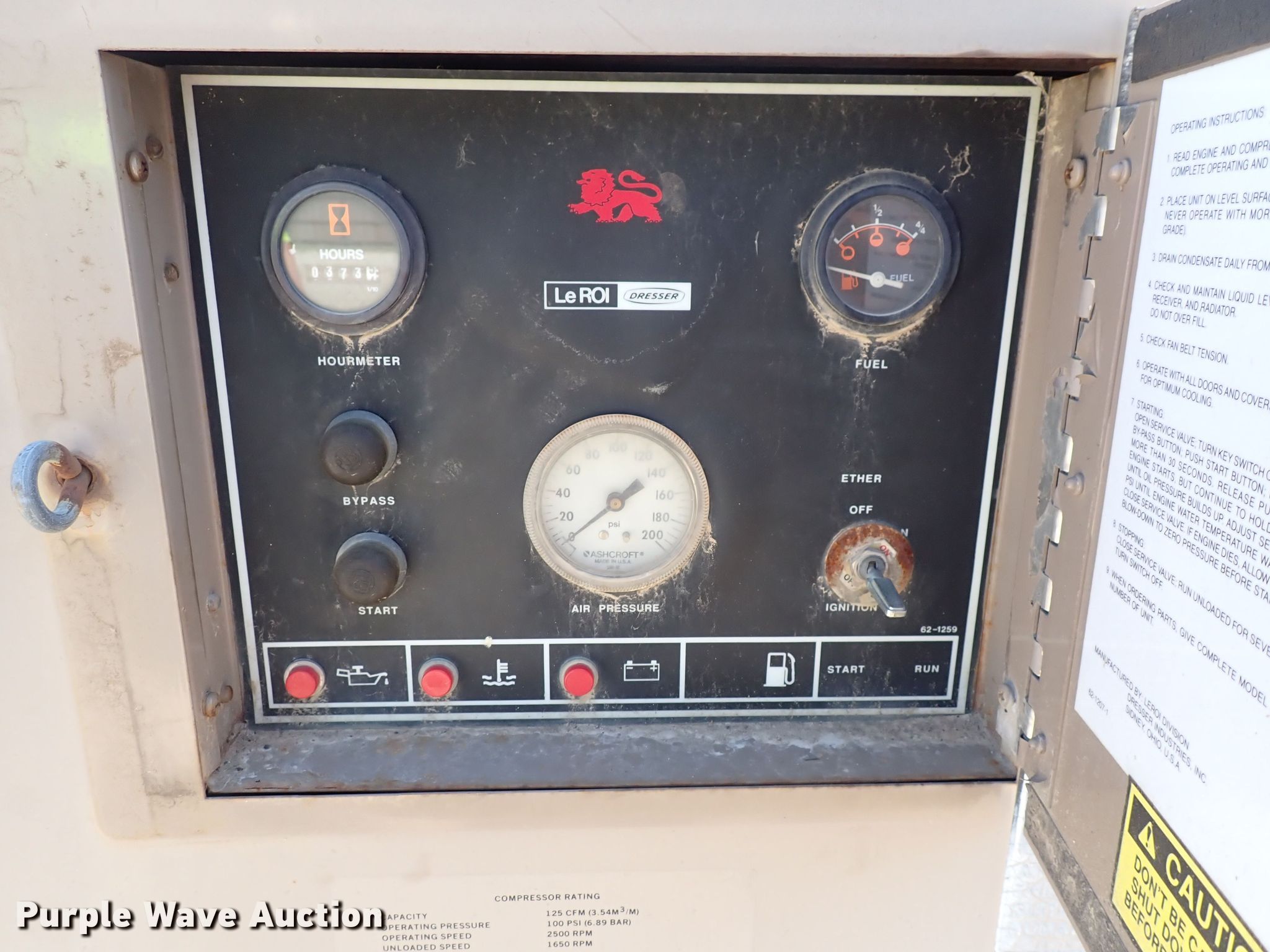 Purple Wave is selling a used Air Compressor in Kansas. This item is a 1991 Leroi 125 air compressor with the following: Hours: 374 on meter