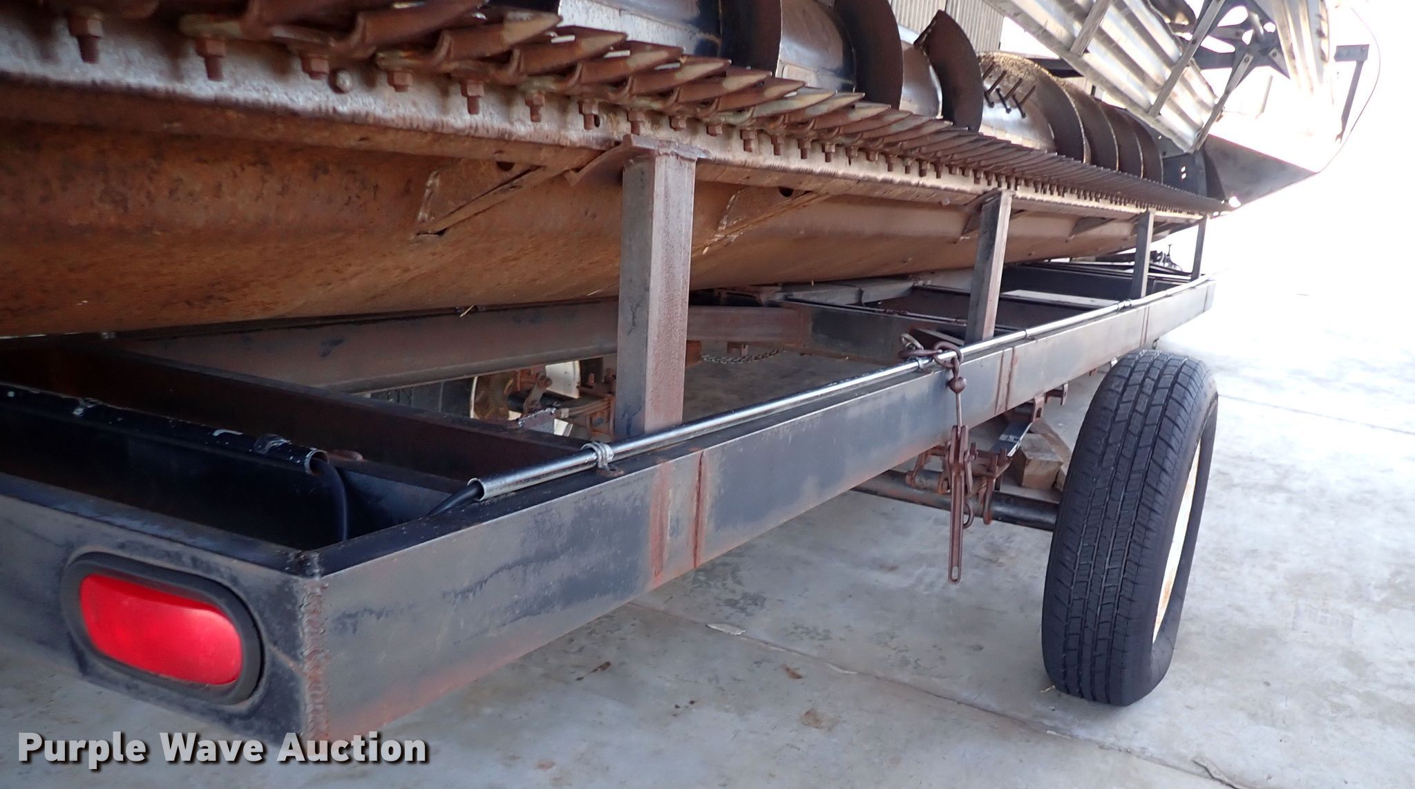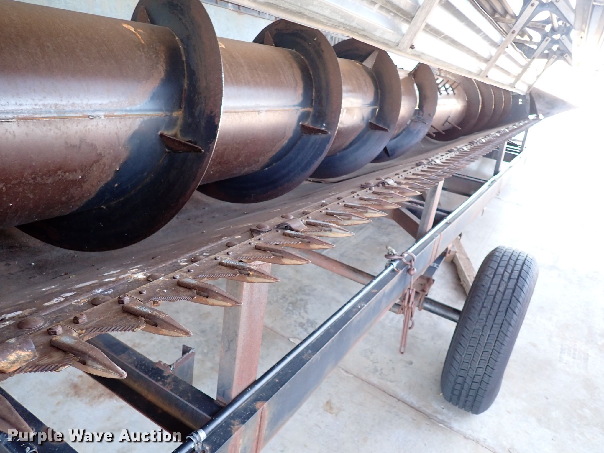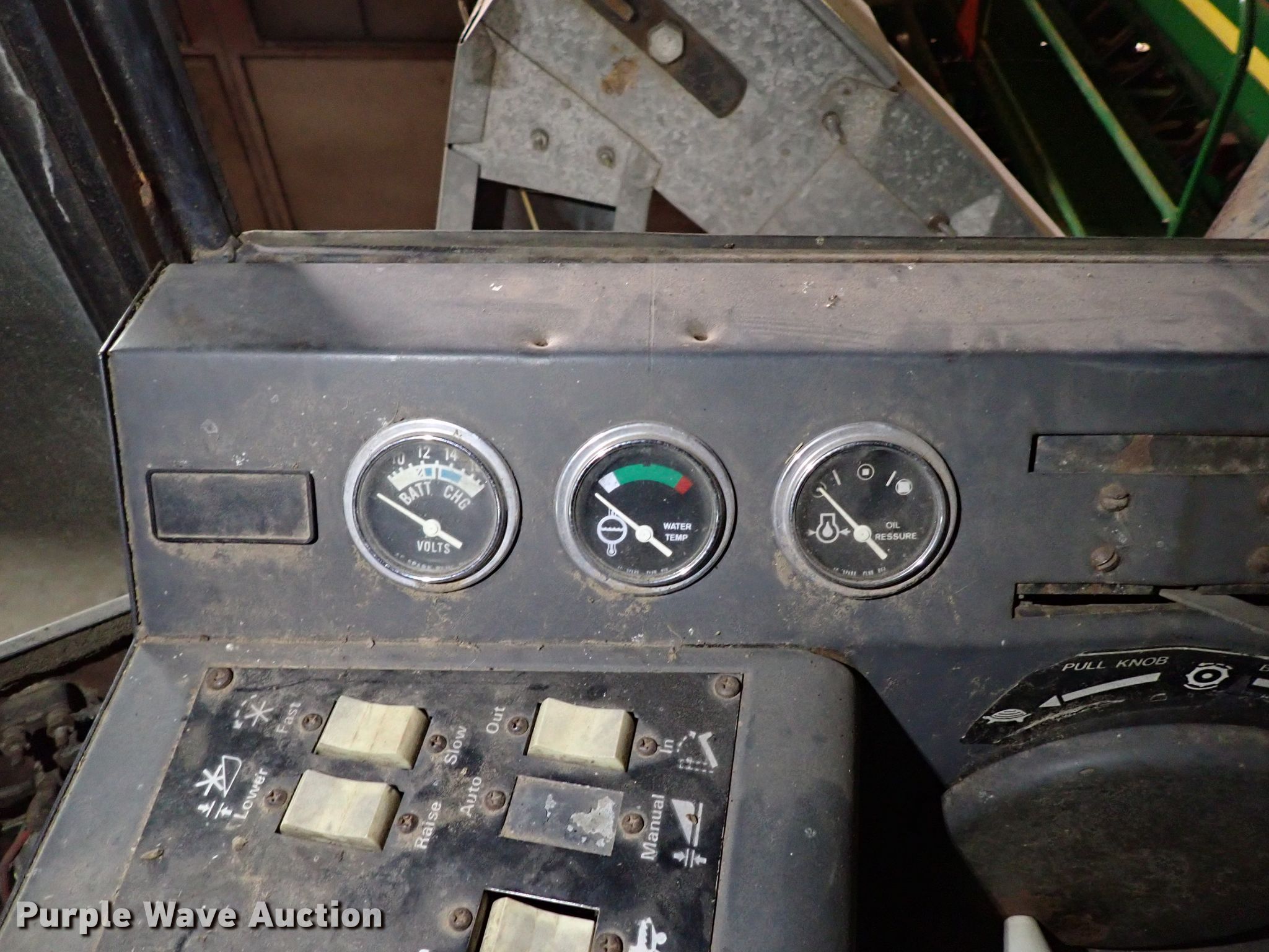 1977 Gleaner M2 combine. Engine hours: 2,440 on meter, Separator hours: 1,594 on meter, Serial: M16146HY, Sale #: 2314-KP. Engine Cylinders: 6, Fuel type: Diesel. Transmission Hydrostatic, 4F - 4R. Operational Operator manual, Unloading auger length: 13', Rigid head Width: 20', Reel: Bat, Drivelines: Dual. Tires Front: 23.1-30, Rear: 11.00-16. Header trailer Overall: 25'L. All aspects of disassembly, load-out, and removal are the sole responsibility of the purchaser. Purchaser must provide proof of a one million dollar liability insurance policy prior to removal. Oklahoma State University. 28054 County Street 2540. Chickasha, OK 73018