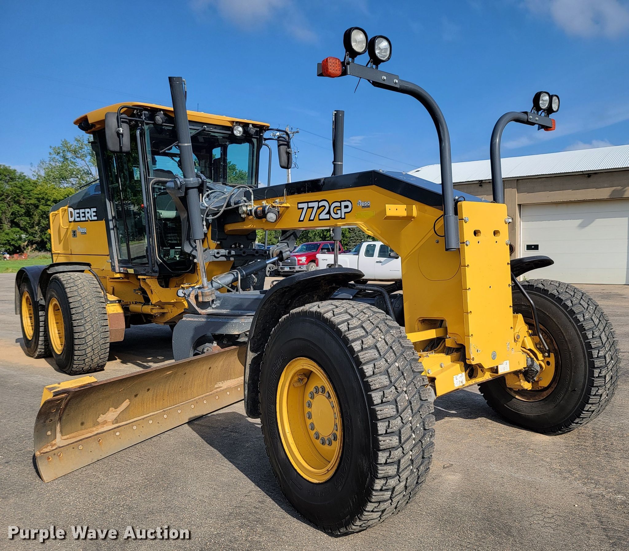 Purple Wave is selling a used Motor Grader in South Dakota. This item is a 2015 John Deere 772GP motor grader with the following: Hours: 9,634 on meter, Serial: 1DW772GPCFF667661