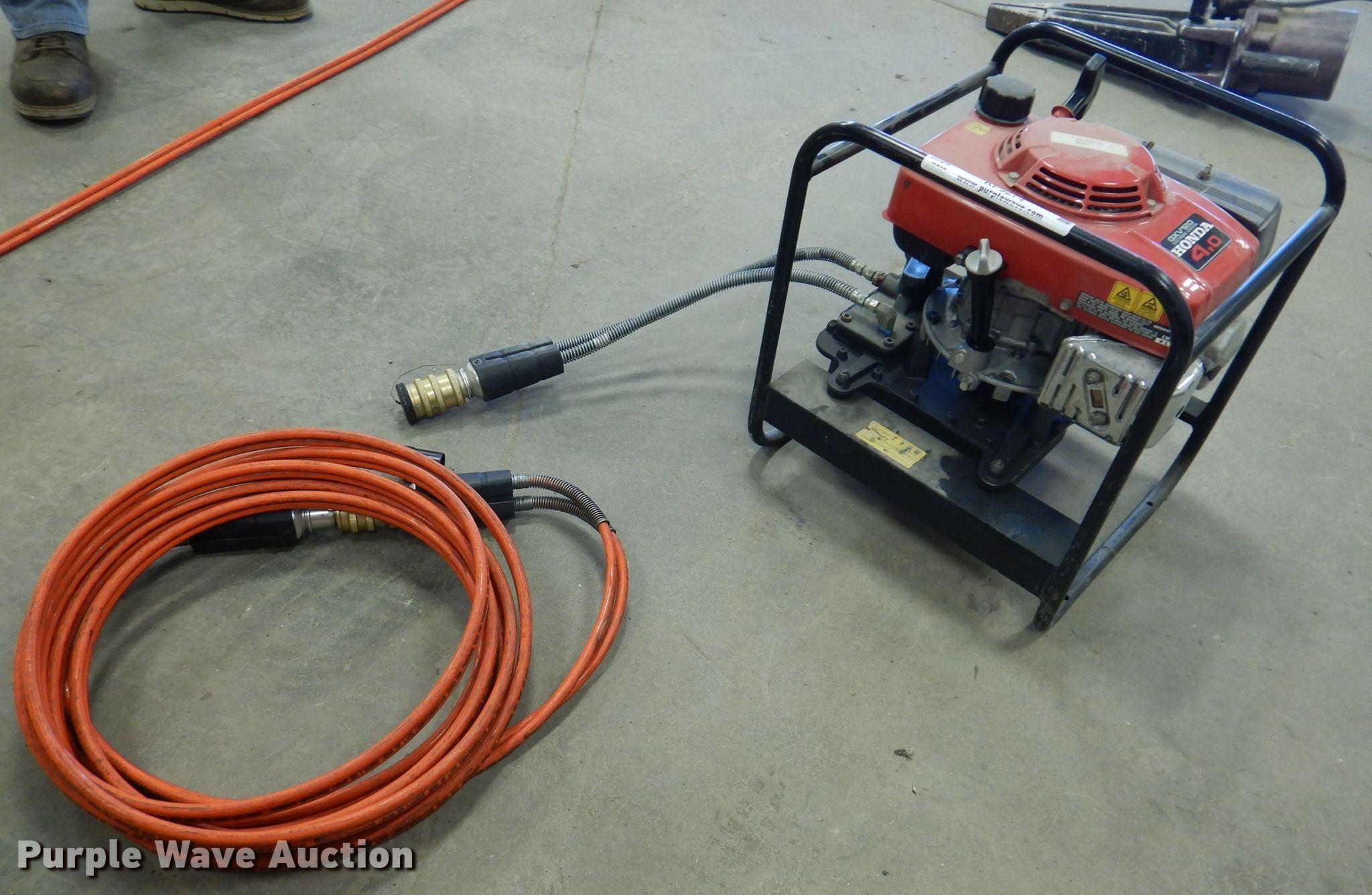 Purple Wave is selling a used Pump in Iowa. This item is a Hurst hydraulic pump with the following: Honda GXV120 118 cc single cylinder gas engine, 4 HP, Approx. 60'L hose