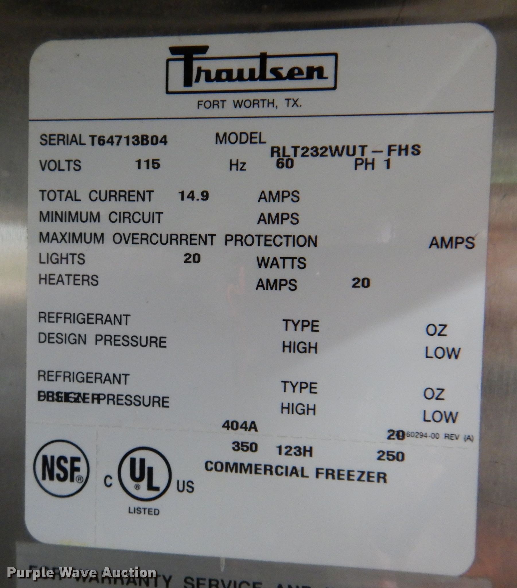 Traulsen RLT232WUT-FHS freezer has sold in Pleasant Hill, Iowa for $522.50. Item KW9526 sold on October 11th, 2022.