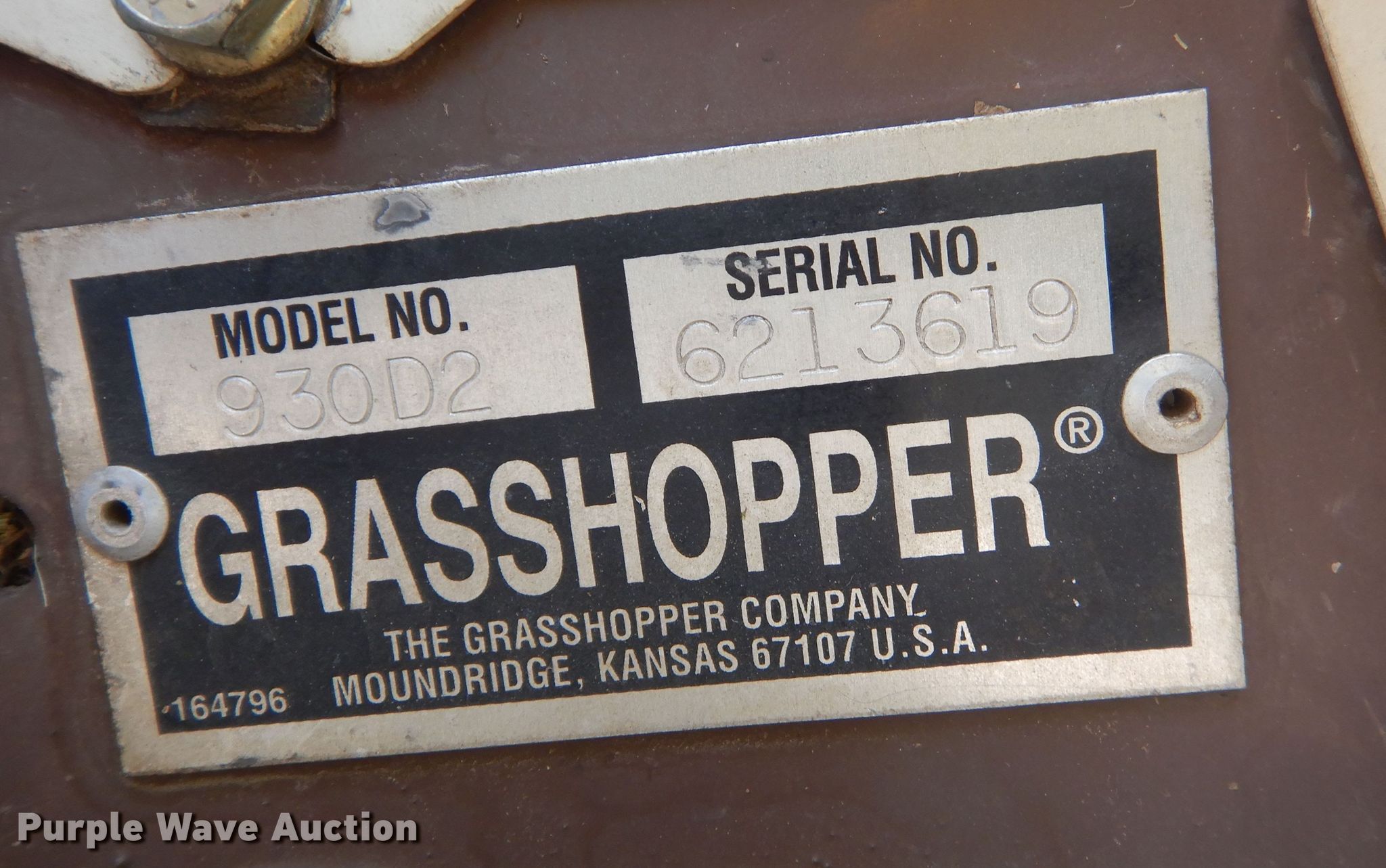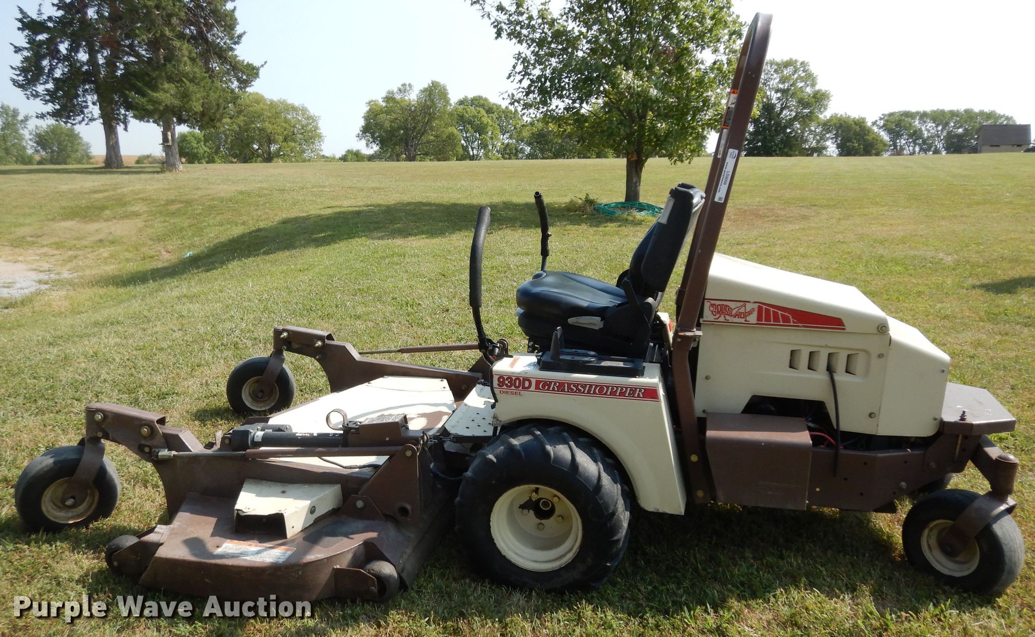 Purple Wave is selling a used Commercial Turf Mower in Kansas. This item is a Grasshopper 930D ZTR lawn mower with the following: Hours: 2,853 on meter, Cutting width: 72", Serial: 6213619