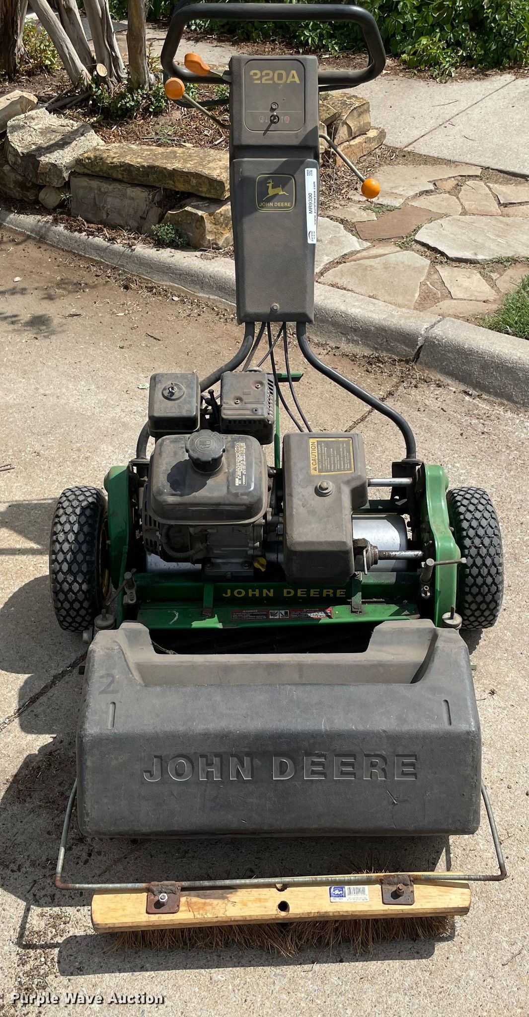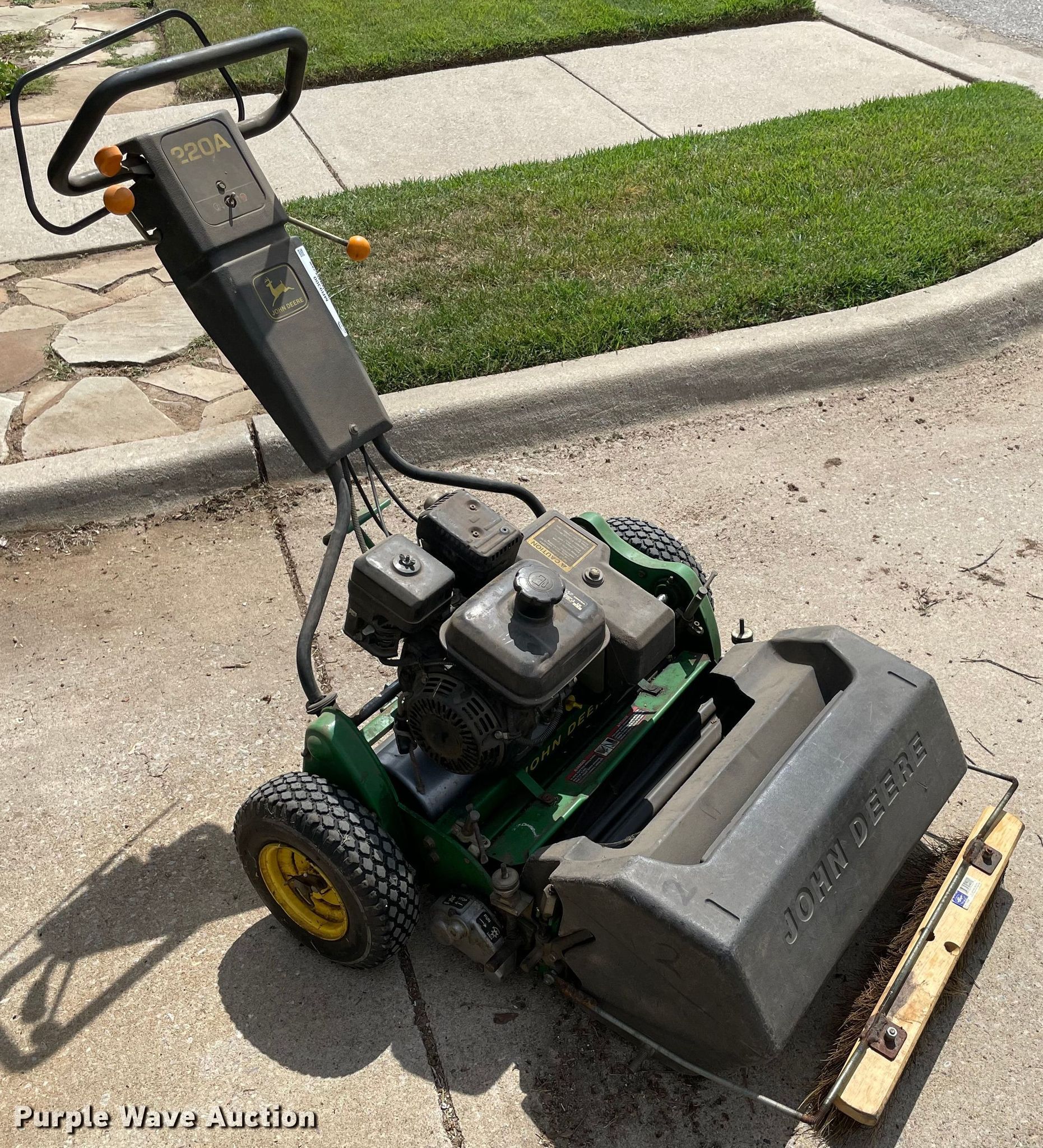 Purple Wave is selling a used Lawn Mower in Oklahoma. This item is a John Deere 220A greens mower with the following: Cutting width: 24", Serial: M00220A060289, Sale #: 2315-KP