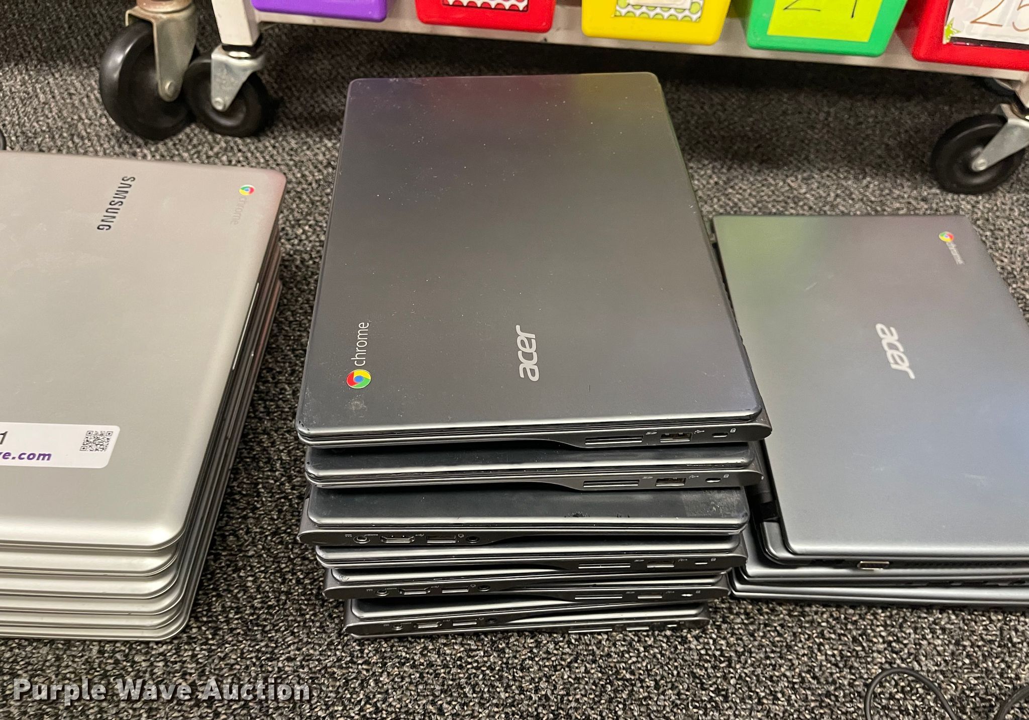 Purple Wave is selling a used Computers in Kansas. This item is a (27) Chromebook laptops with the following: (16) Samsung XE303C12, (8) Acer ZHN, (3) Acer Q1V2C