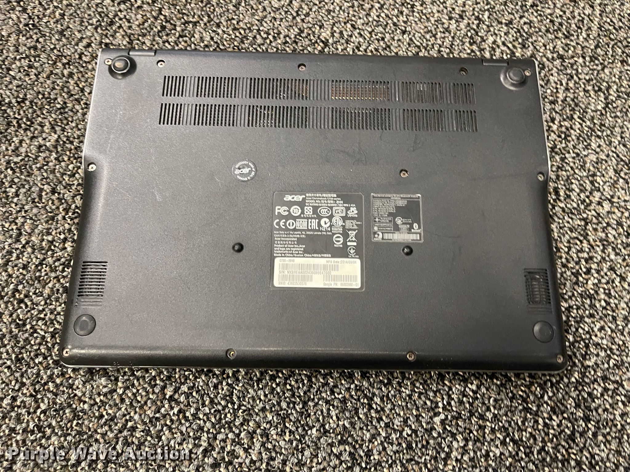 (27) Chromebook laptops. (16) Samsung XE303C12, (8) Acer ZHN, (3) Acer Q1V2C. Purple Wave reserves the right to obtain additional buyer information prior to item removal. Holy Family Elementary. 1800 Milner Street. Hays, KS 67601