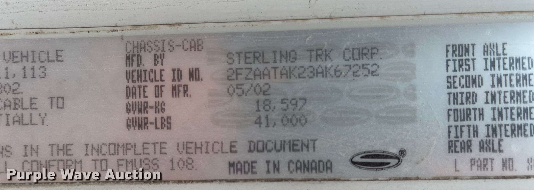 Purple Wave is selling a used Vacuum Truck in Kansas. This item is a 2003 Sterling L7500 sewer jetter truck with the following: Miles: 101,061 on odometer, Hours: 5,028 on meter, VIN: 2FZAATAK23AK67252