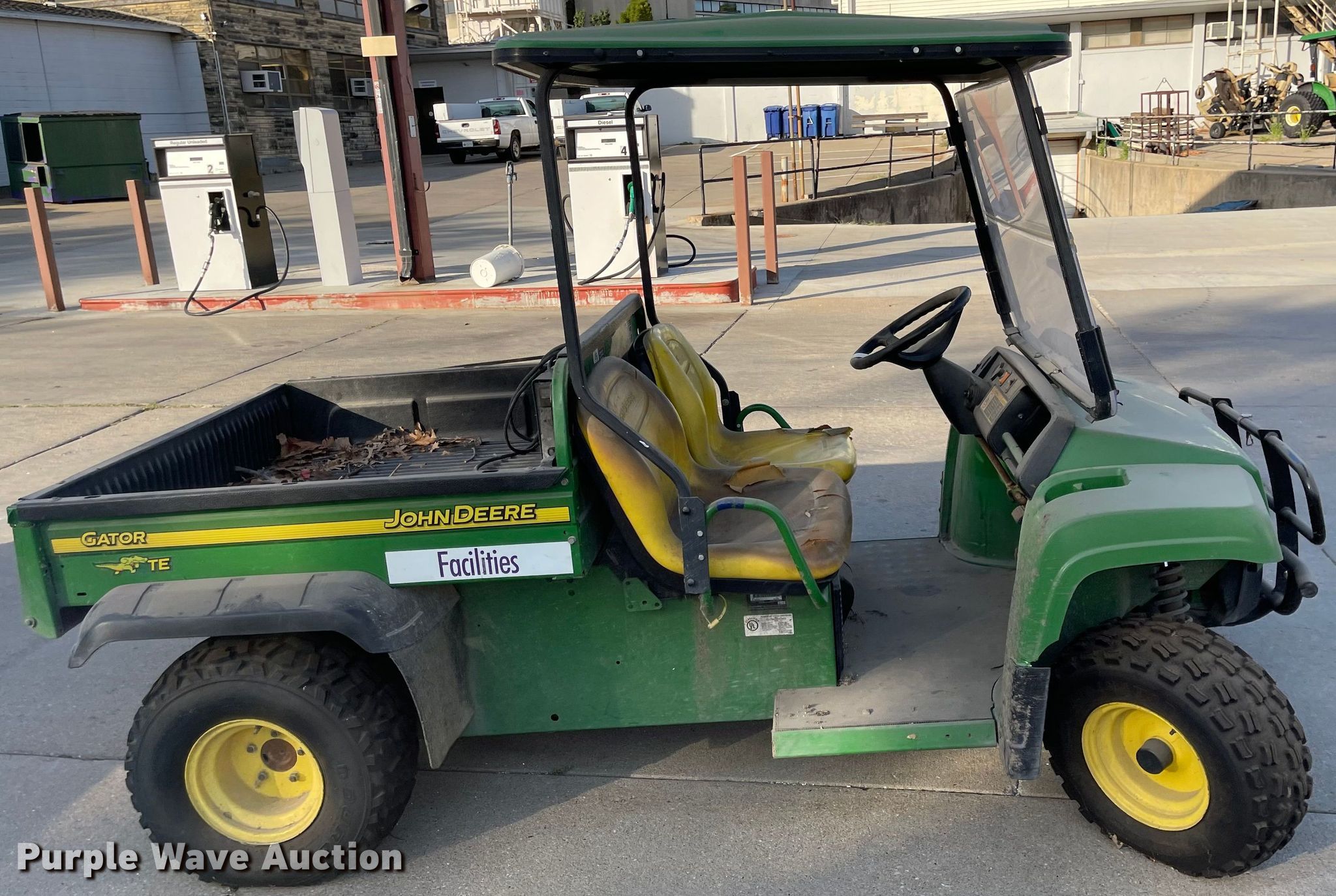 2009 John Deere TE Gator utility vehicle. Hours: Unknown, Serial: M0T145E040030. Electric Motor Volts: 48, Charger: Single phase. Features 42" L x 48" W, Dump bed type: Electric/ Hydraulic. Tires Front: 22x8.00-10, Rear: 24x11.00-10. Notes Canopy will be removed prior to auction, Non-operational unit. Transfer of ownership documentation will be a bill of sale. KSU Division of Facilities. 226 Dykstra Hall. Manhattan, KS 66506