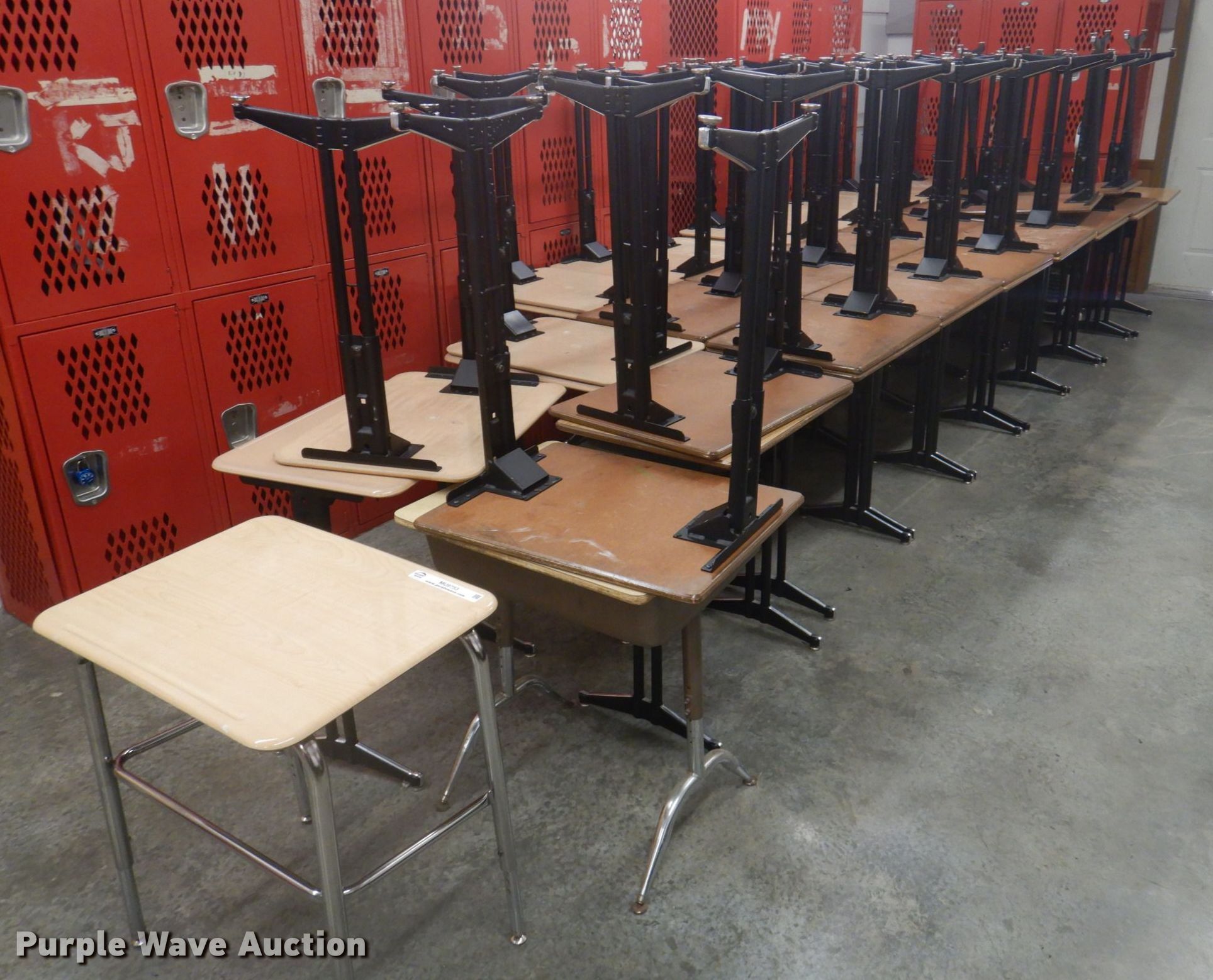Purple Wave is selling a used Furniture in Missouri. This item is a Furniture with the following: Approx. 52 desks, Approx. 24" x 18" top, Approx. 32 chairs