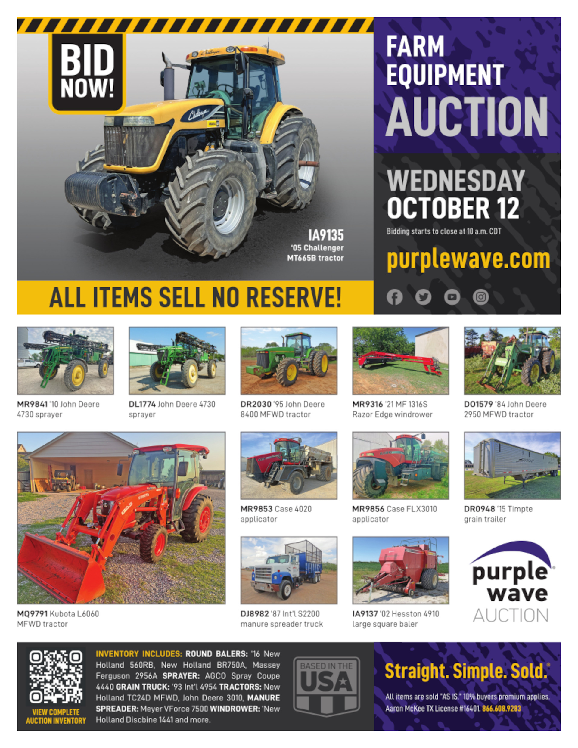 This auction is conducted by Purple Wave, Inc., whose home office is 825 Levee Drive, Manhattan, Kansas. Aaron McKee, Texas auctioneer license # 16401, operates Purple Wave, Inc. Complaints against us may be directed to the Texas Department of Licensing and Regulation, P.O. Box 12157, Austin, Texas 78711, (512) 463-6599. For additional required information, see the attached document.