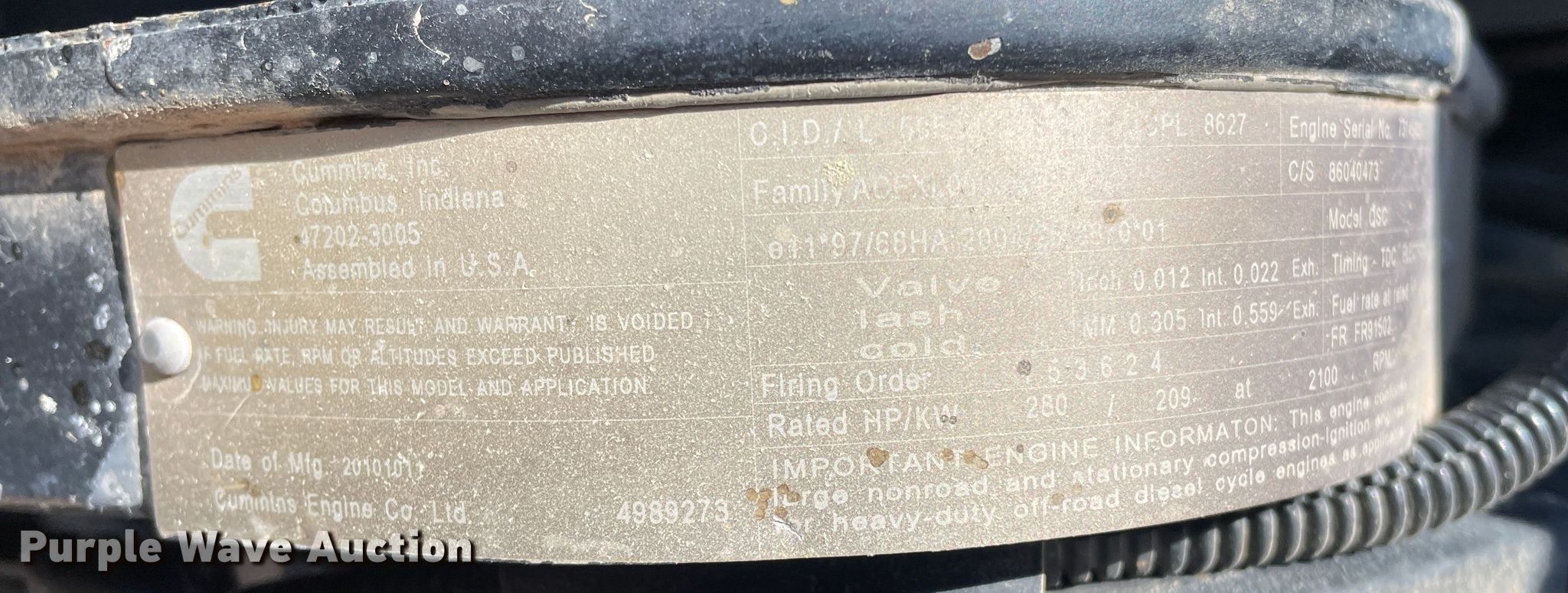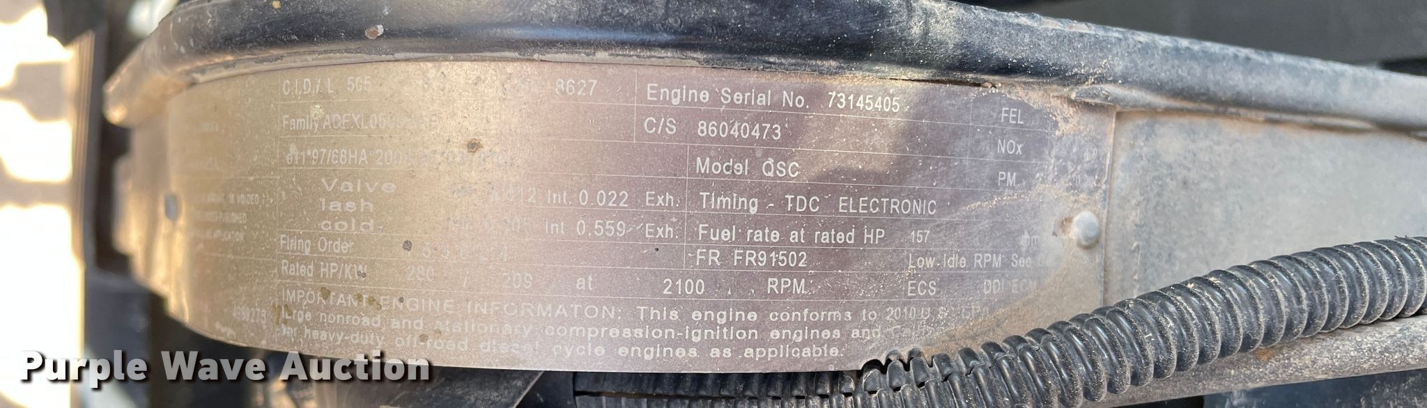 2011 Versatile 280 MFWD tractor. Hours: 7,184 on meter, Serial: 506222. Engine Cummins QSC, Serial: 73145405, Displacement: 8.3L, Cylinders: 6, Fuel type: Diesel. Transmission Powershift, 16F - 9R, Differential lock. Operators station AC, Heat. Features PTO: 1 3/4" 1000, Seven pin outlet, Hydraulic remote sets Rear: 4. Tires Front: 380/85R34, Rear: 480/80R46, Duals. United Ag, LLC. Plainview, TX 79072