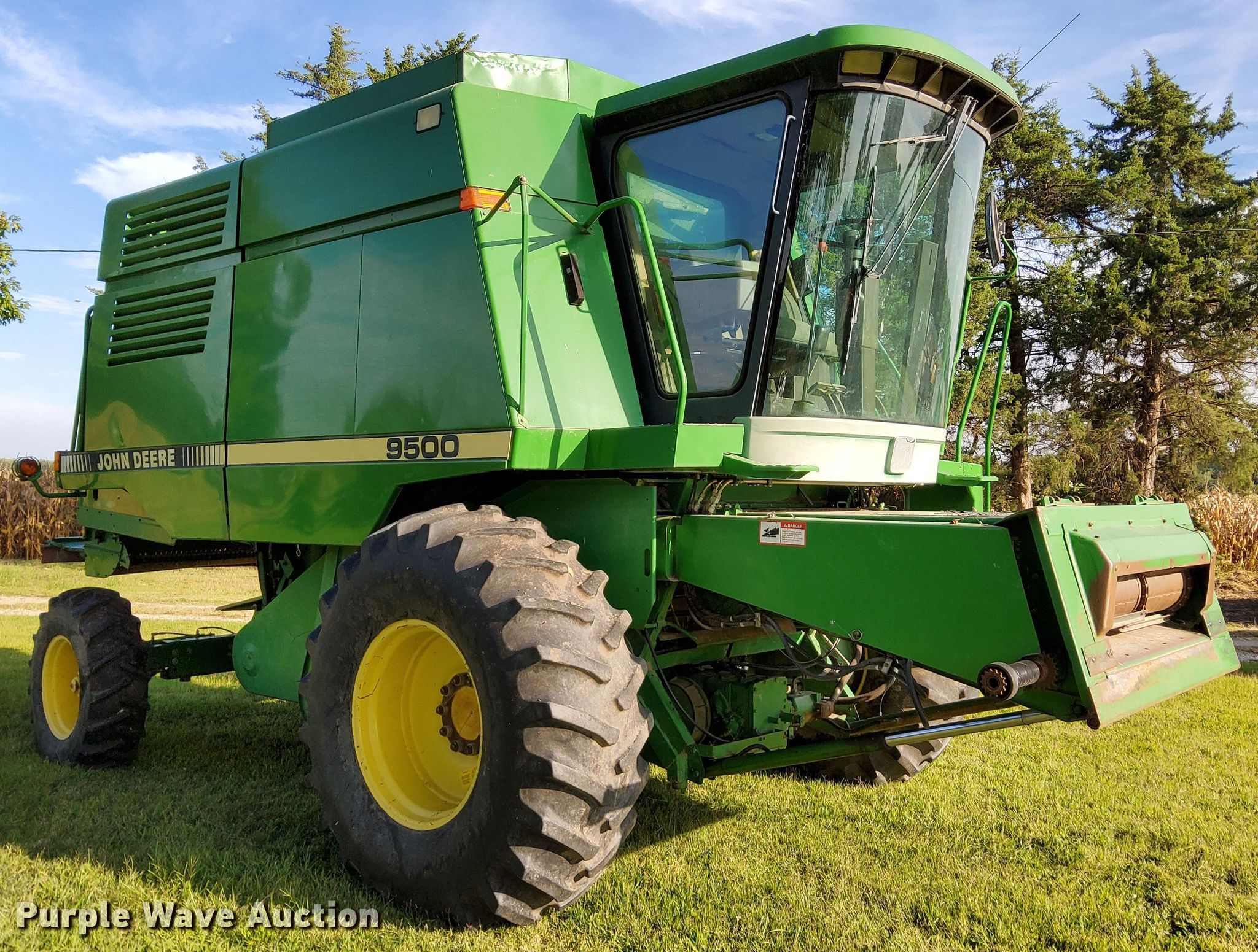 Purple Wave is selling a used Combine in Kansas. This item is a 1992 John Deere 9500 combine with the following: Engine hours: 4,151 on meter, Separator hours: 2,909 on meter, Serial: H09500X646655