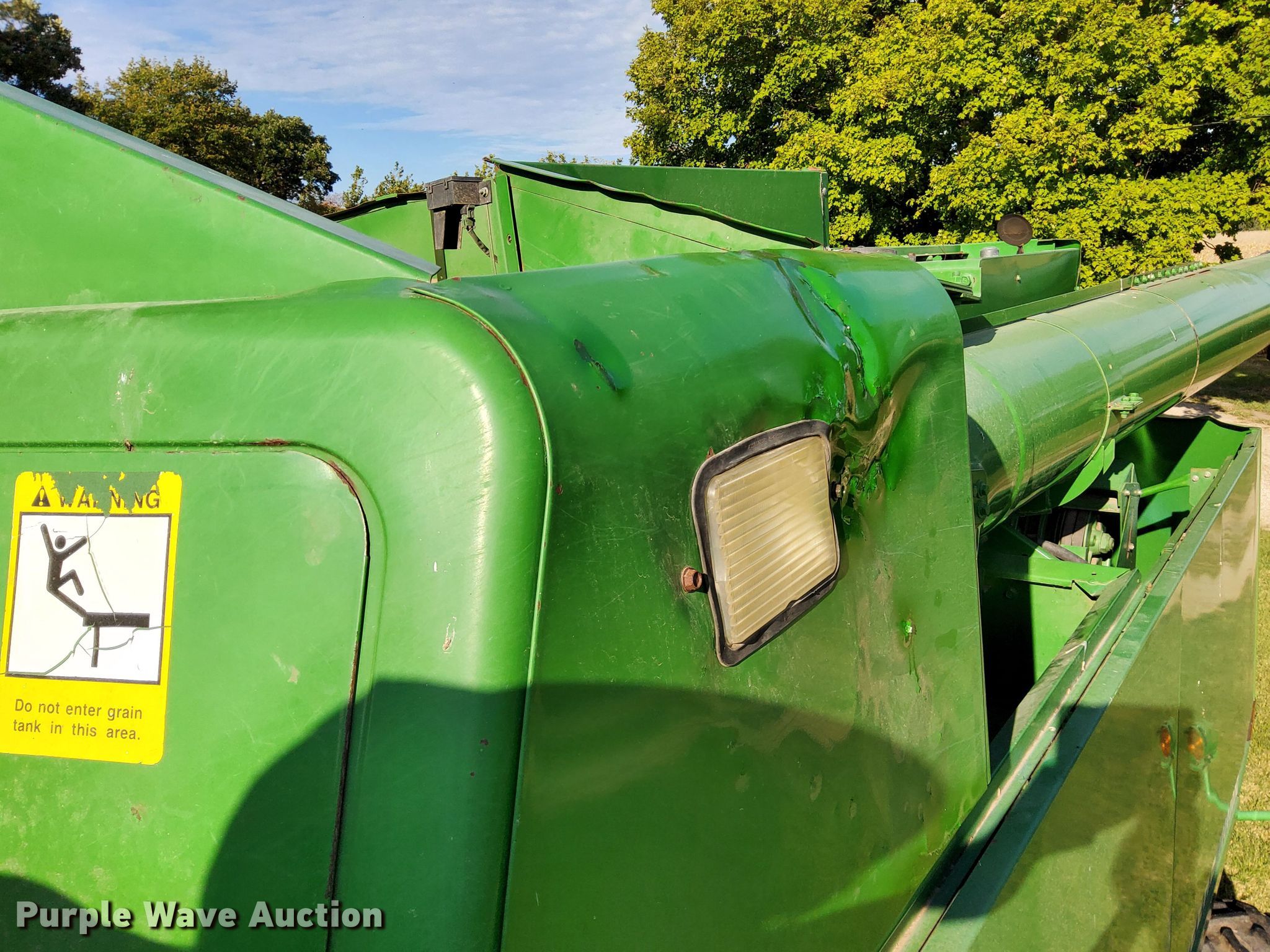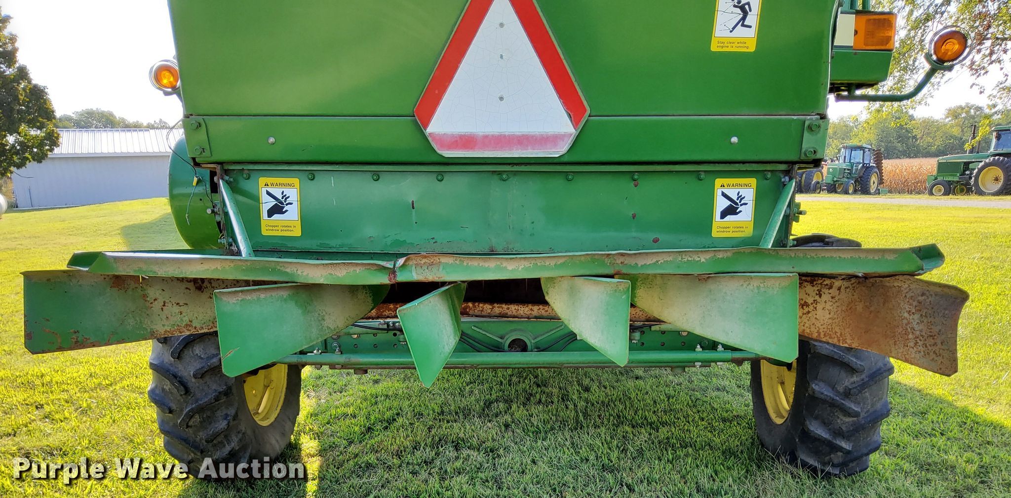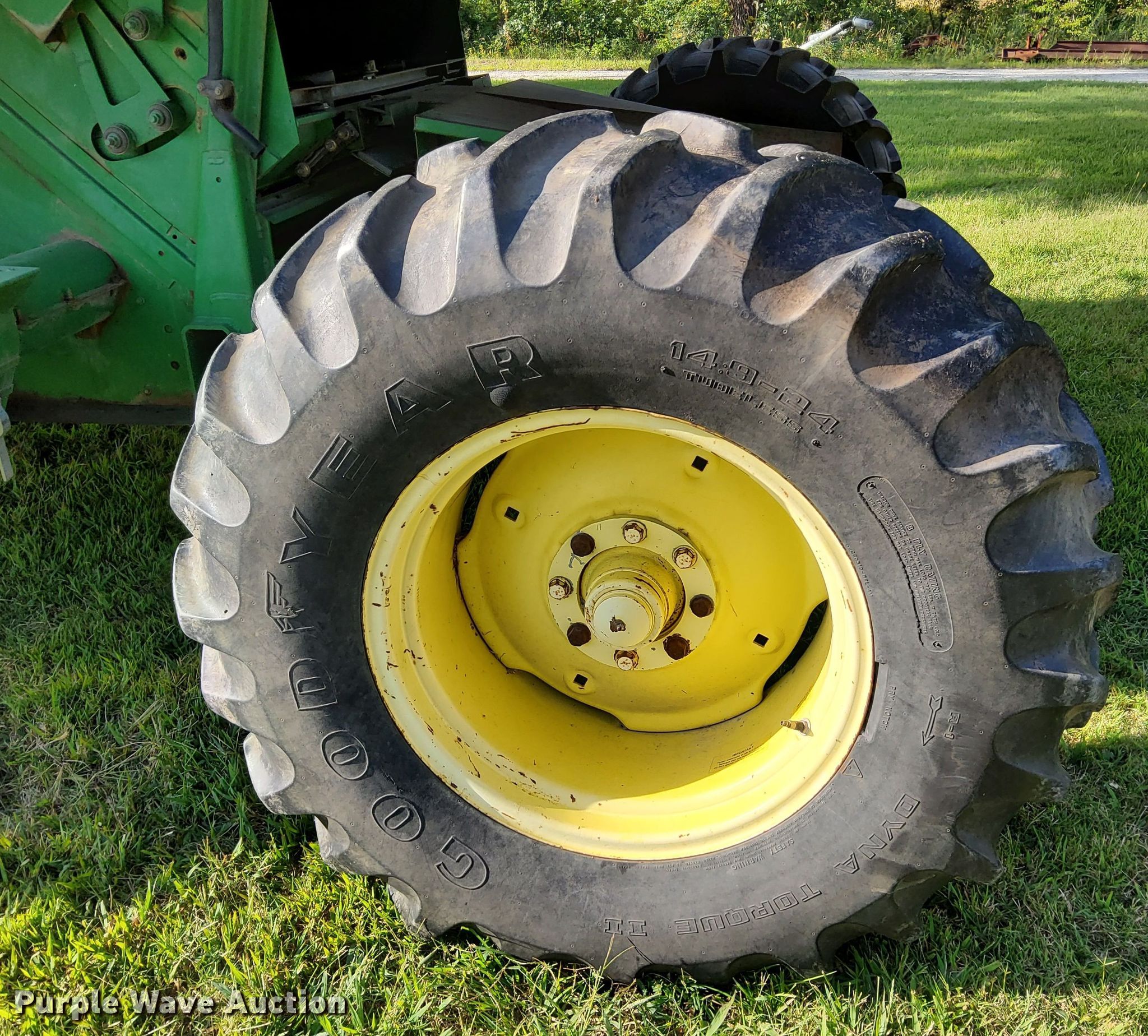 1992 John Deere 9500 combine. Engine hours: 4,151 on meter, Separator hours: 2,909 on meter, Serial: H09500X646655. Engine John Deere, Displacement: 7.6L, Cylinders: 6, Fuel type: Diesel. Transmission Hydrostatic, 3F - 3R. Interior AC, Heat. Features Feederhouse: Reverser , Variable speed, Straw chopper, Unloading auger length: 16'. Tires Front: 24.5-32, Rear: 14.9-24. Manhattan, KS 66502