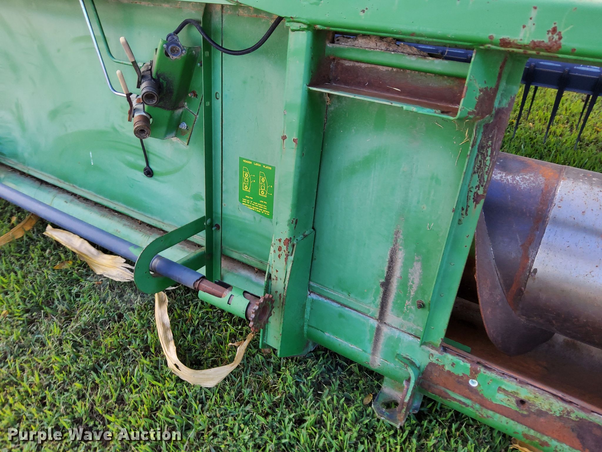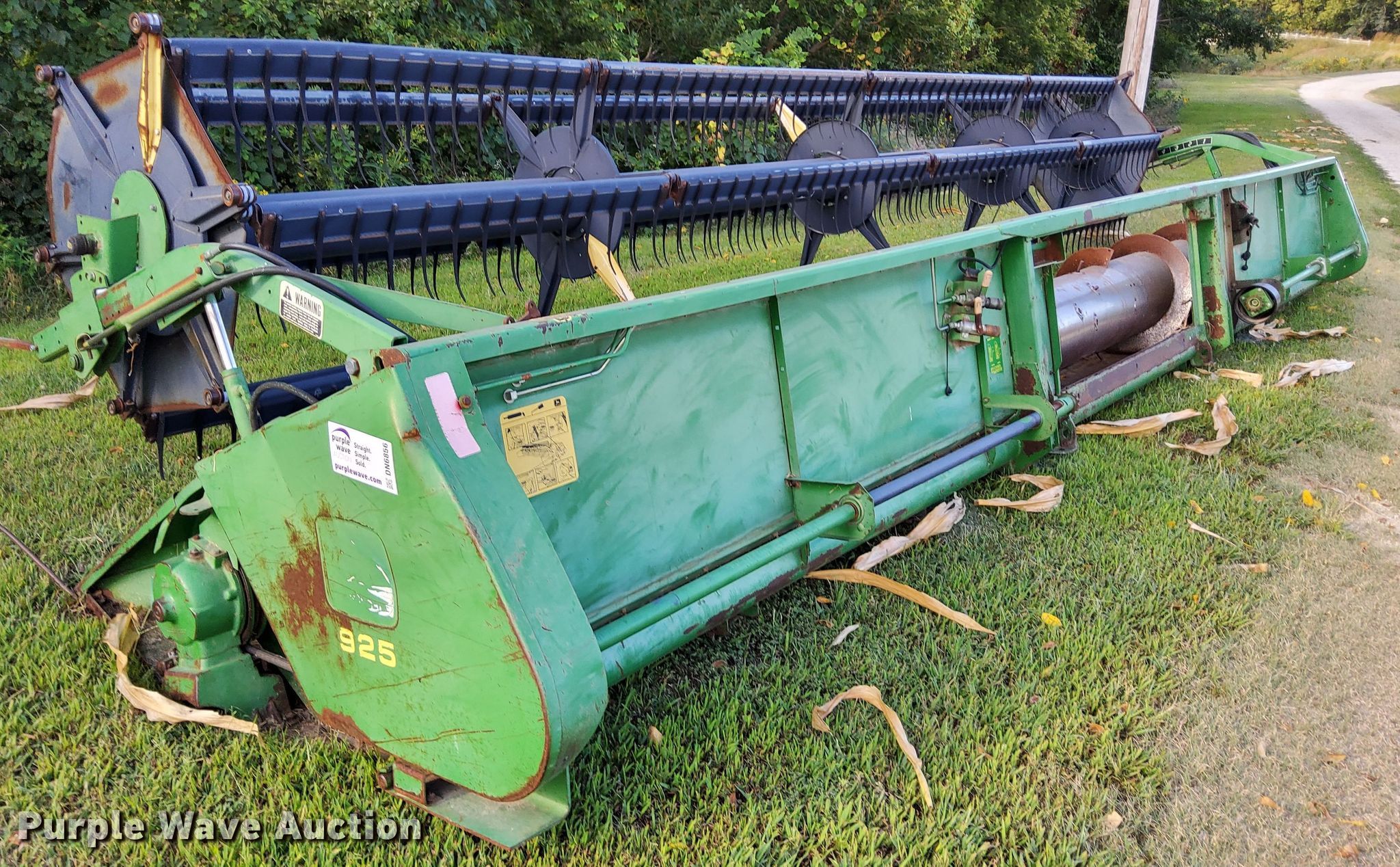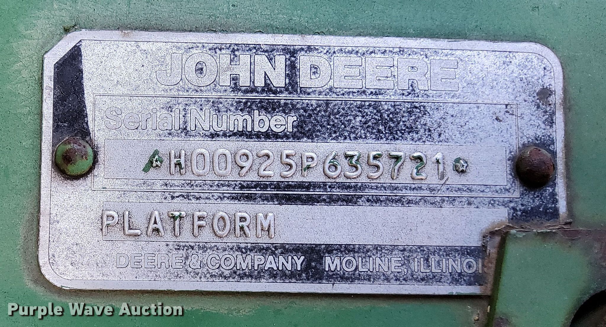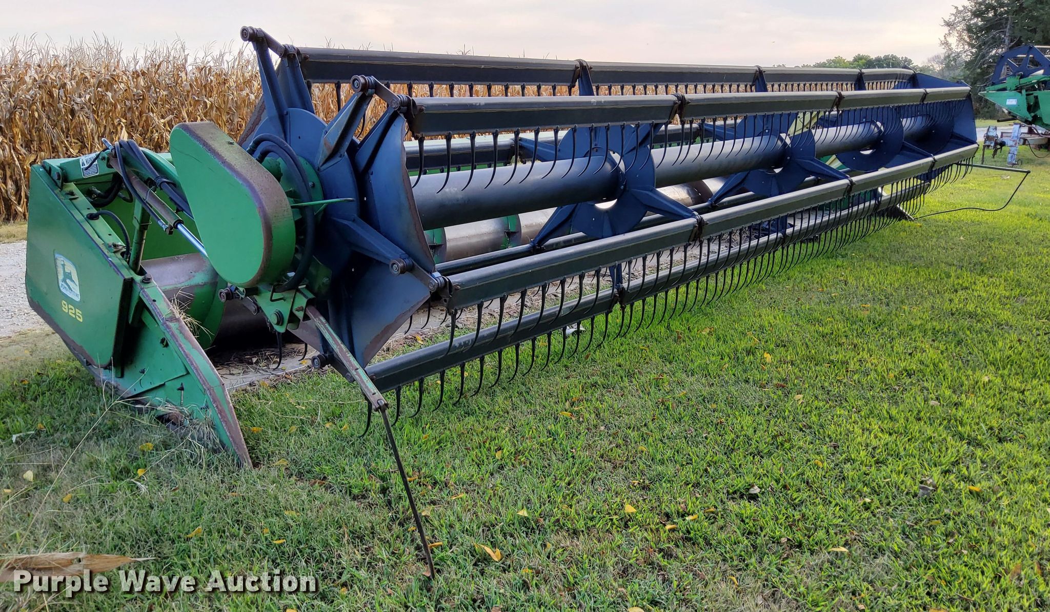 Purple Wave is selling a used Platform or Stripper Head in Kansas. This item is a John Deere 925 rigid head with the following: Serial: H00925P635721