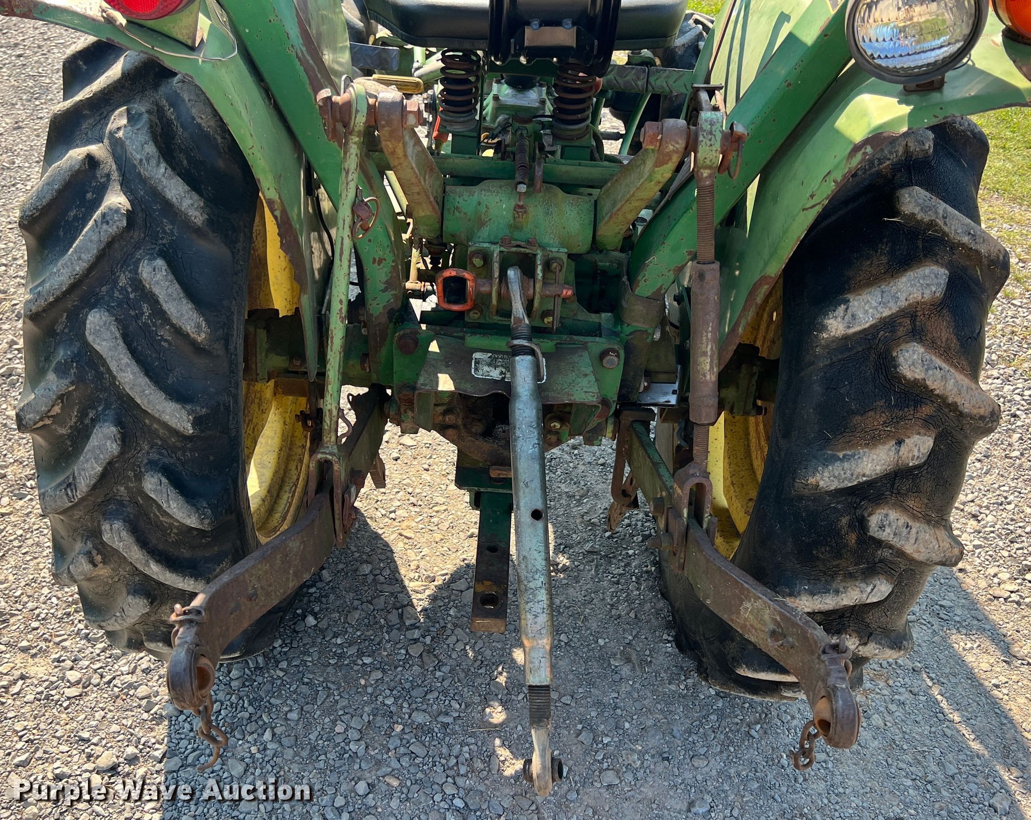 1985 John Deere 750 MFWD tractor. Hours: 2,574 on meter, Serial: CH0750S013998. Engine Cylinders: 3, Fuel type: Diesel. Transmission Manual, 8F - 2R. Features PTO: 540, Three point Top link, Suitcase weights: 5. Tires Front: 6-14, Rear: 9.5-24. Notes Possible fuel issues, will start with ether. Crisp Farms. Locust Grove, OK 74352