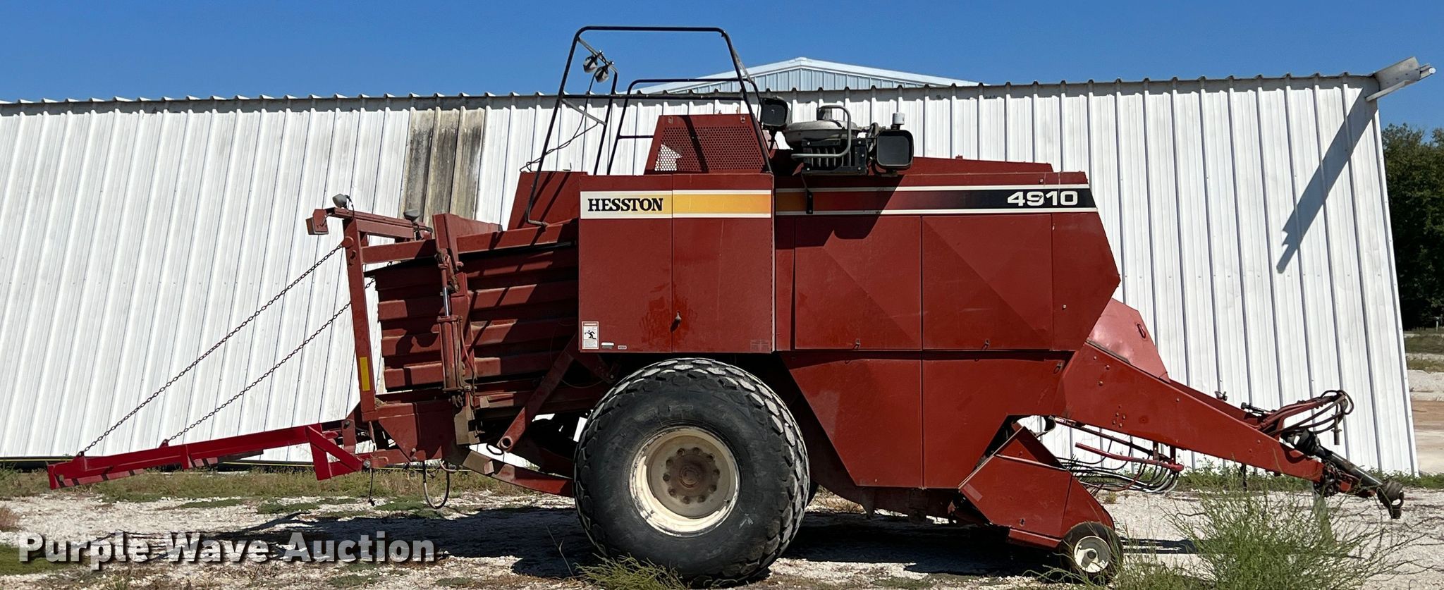Purple Wave is selling a used Square Baler in Kansas. This item is a 2002 Hesston 4910 large square baler with the following: Serial: HL91450
