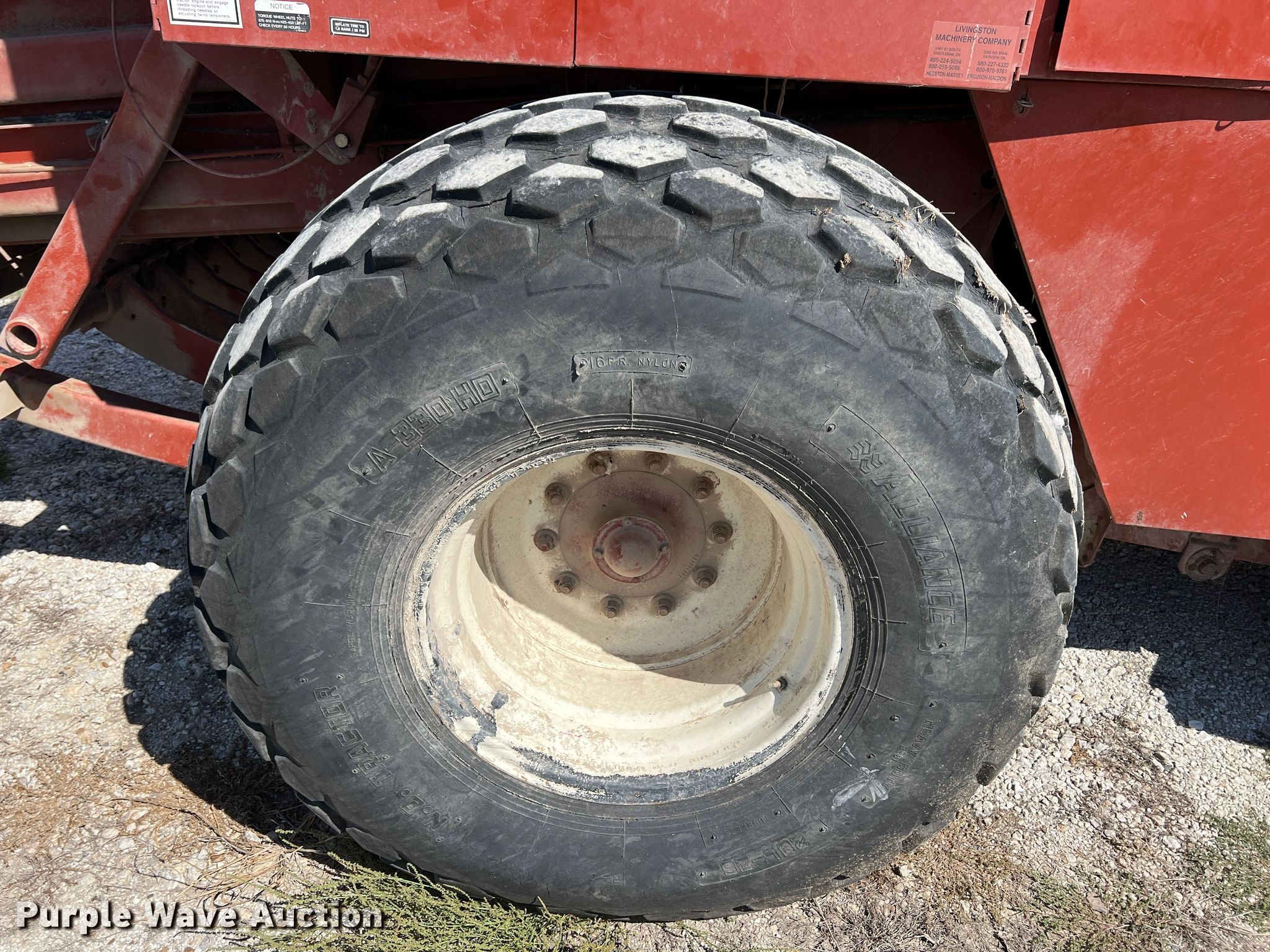 2002 Hesston 4910 large square baler. Serial: HL91450. Features PTO: 1000, Monitor Baler Control, Transport lights, Gauge wheels Size: 4.80/4.00-8, Pickup width: 7', Hydraulic pickup lift, Large square bale size: 4'x4', Knotters, Twine tie, Bale chute. Tires Size: 28L-26. K-W Oil Well Service. 19450 Ford Rd. Chanute, KS 66720